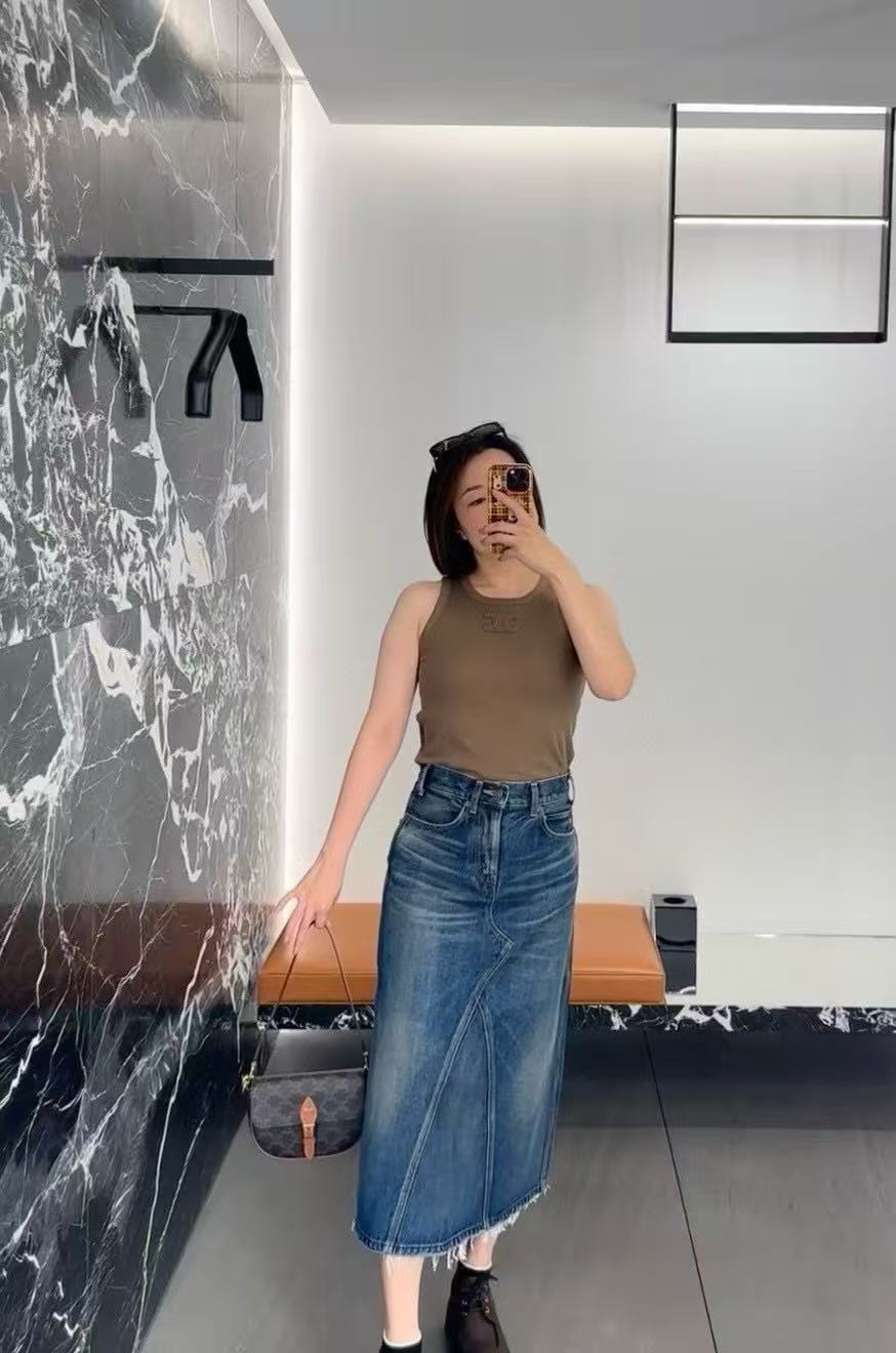 秋冬層次感:搭配厚針織毛衣或西裝外套,再加短靴,溫暖又有型,輕鬆打造時髦層次感。這款復刻的假開衩牛仔裙,設計靈感來自於奢侈品品牌的經典範本,讓你在日常穿搭中也能感受到時尚的精工質感。