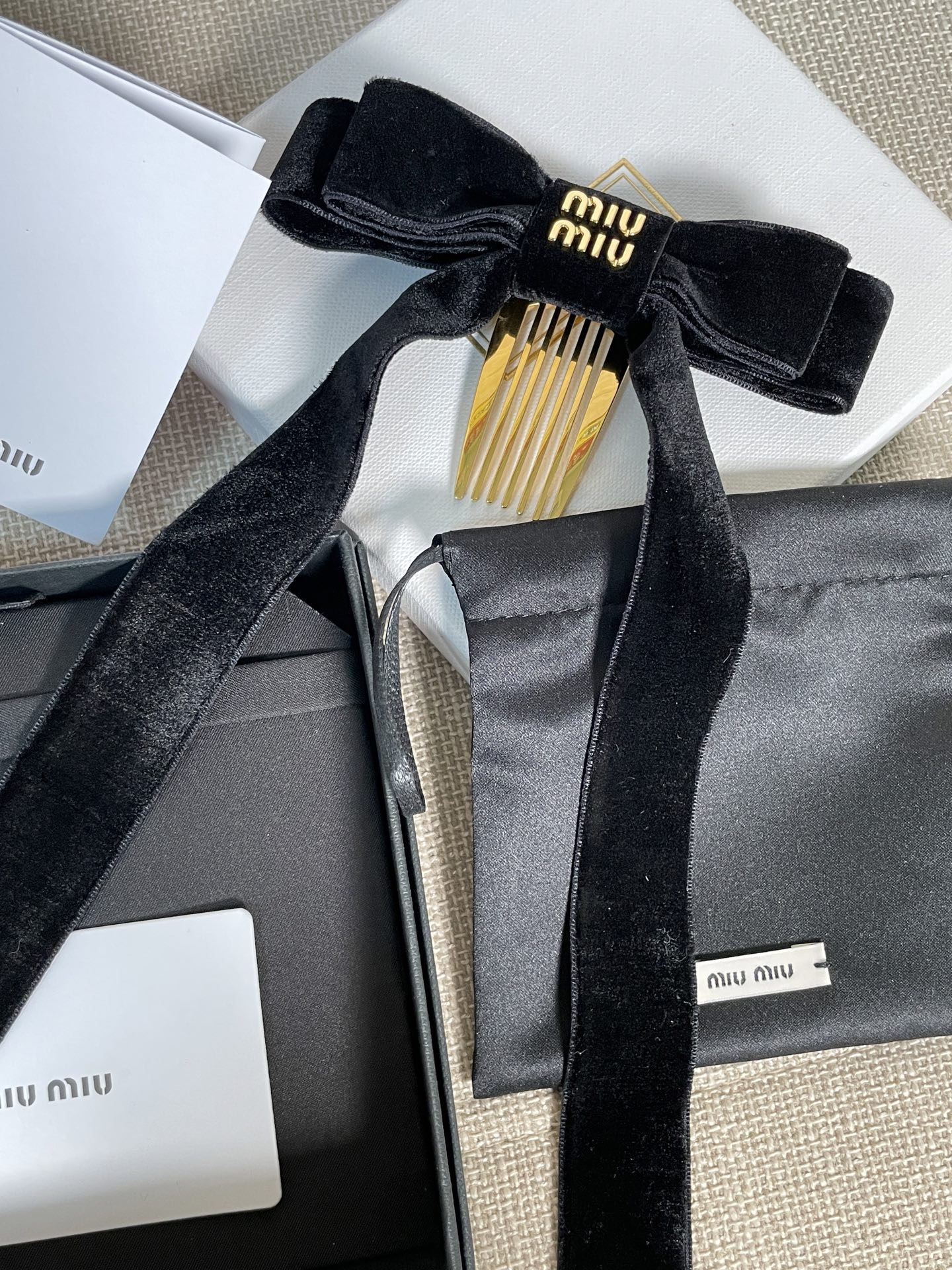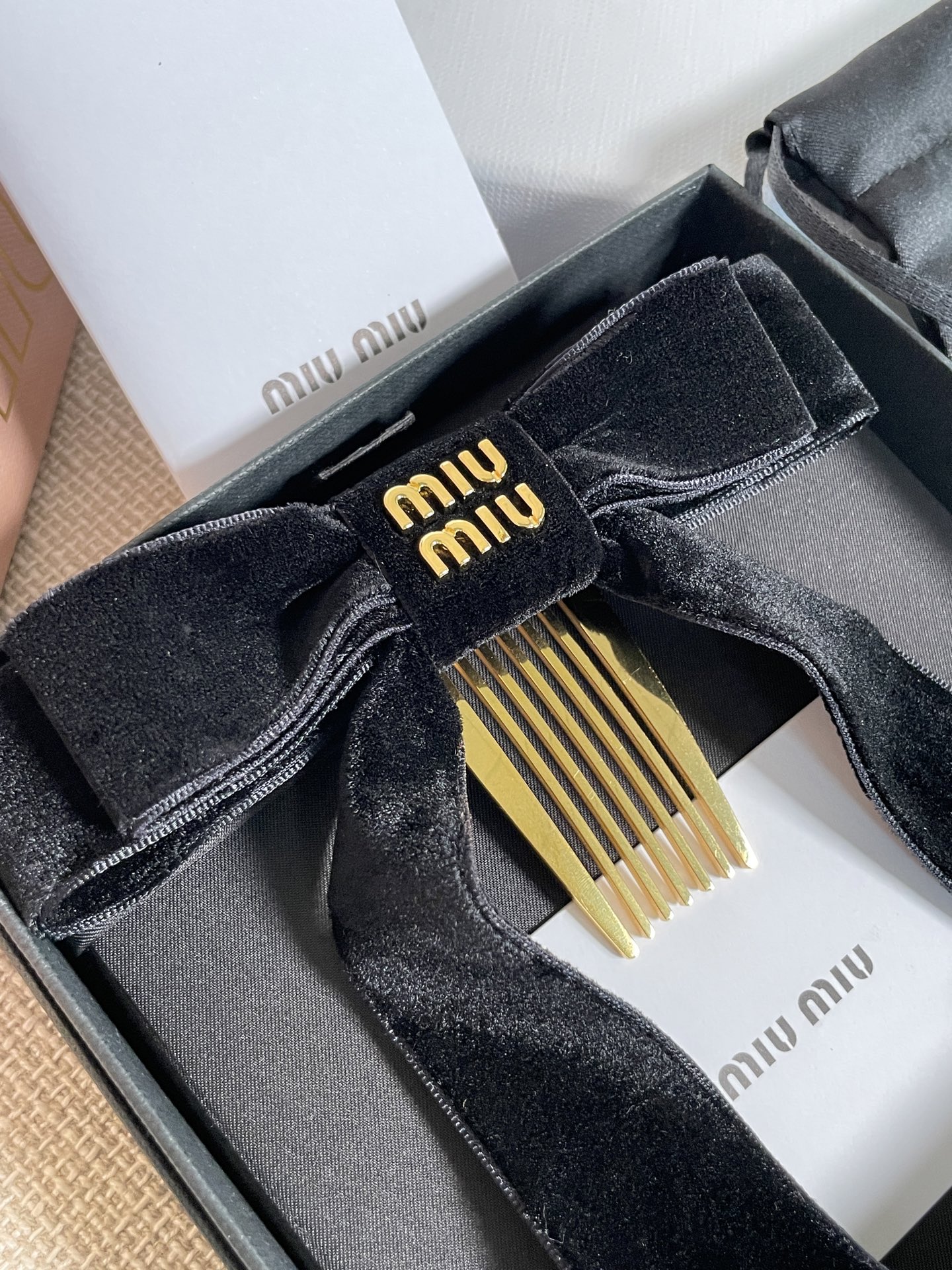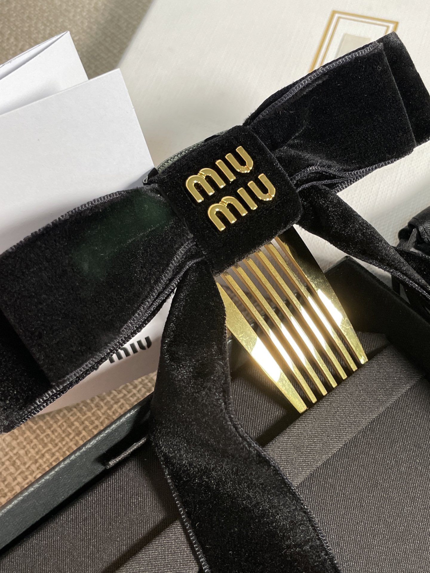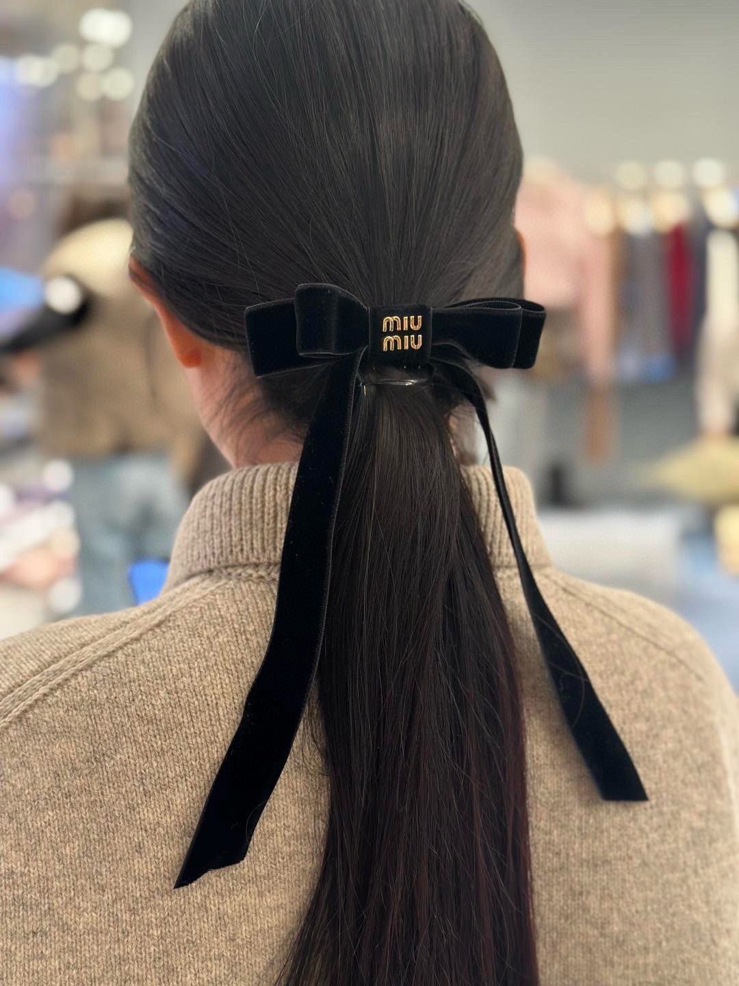 2025秋冬新品 MIU MIU 絲絨蝴蝶結髮叉 精品 高仿