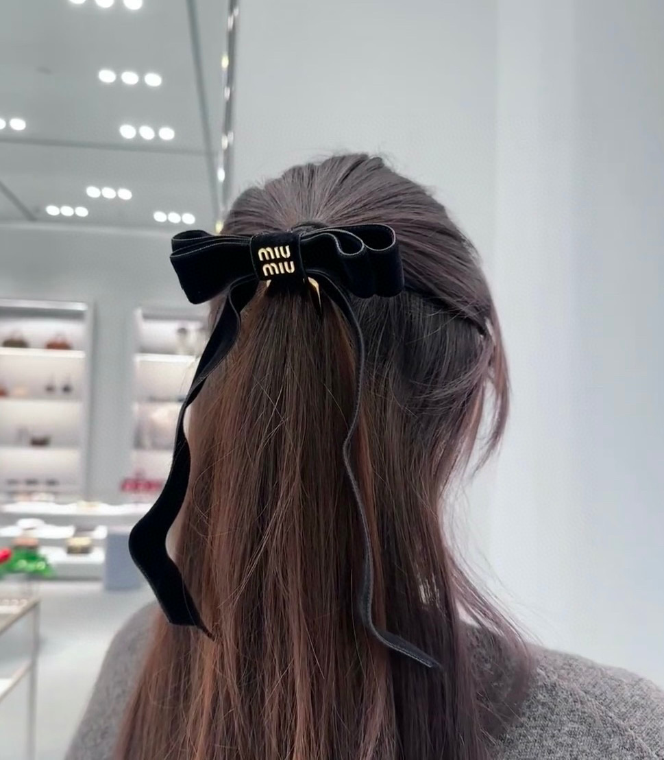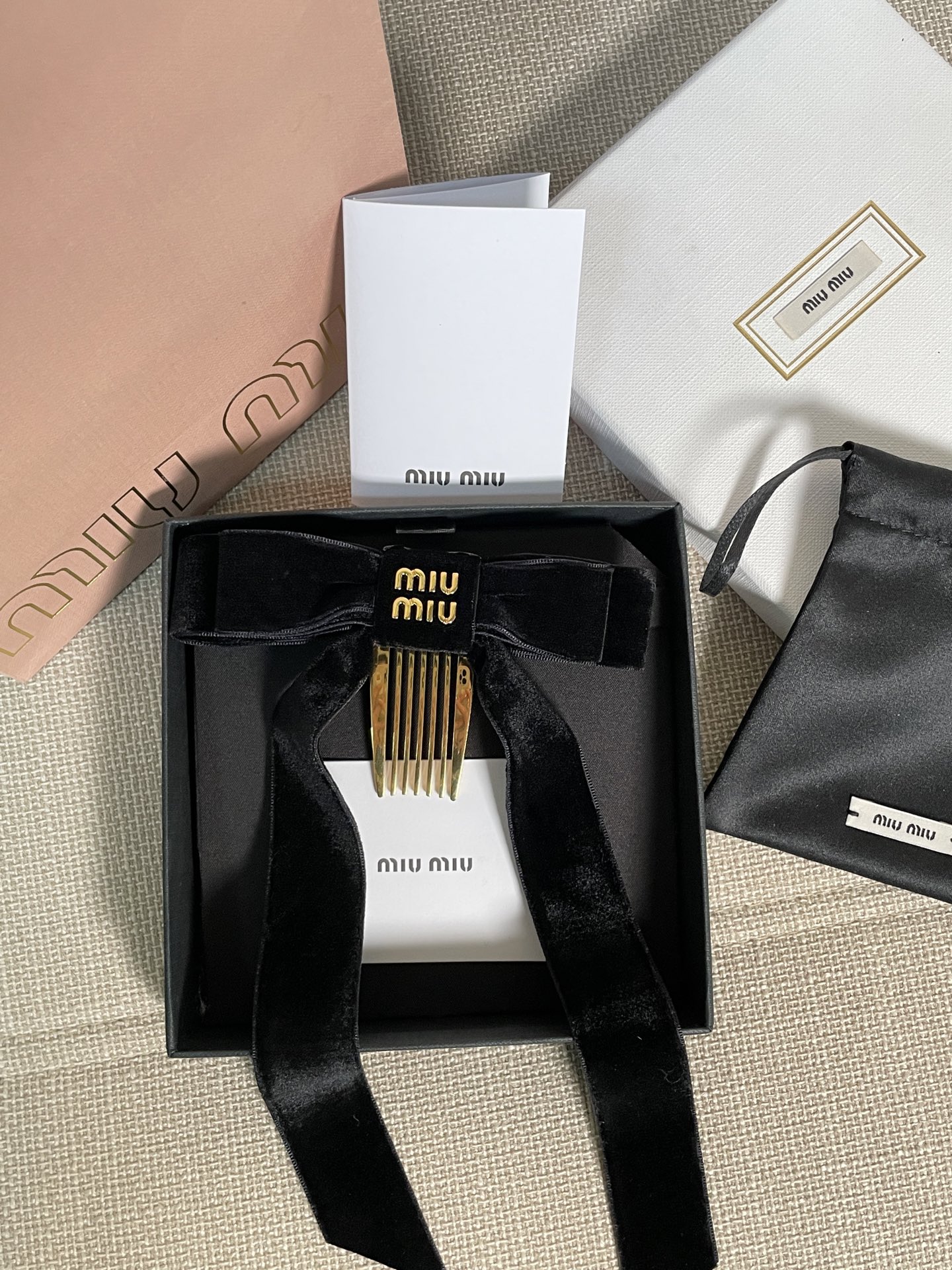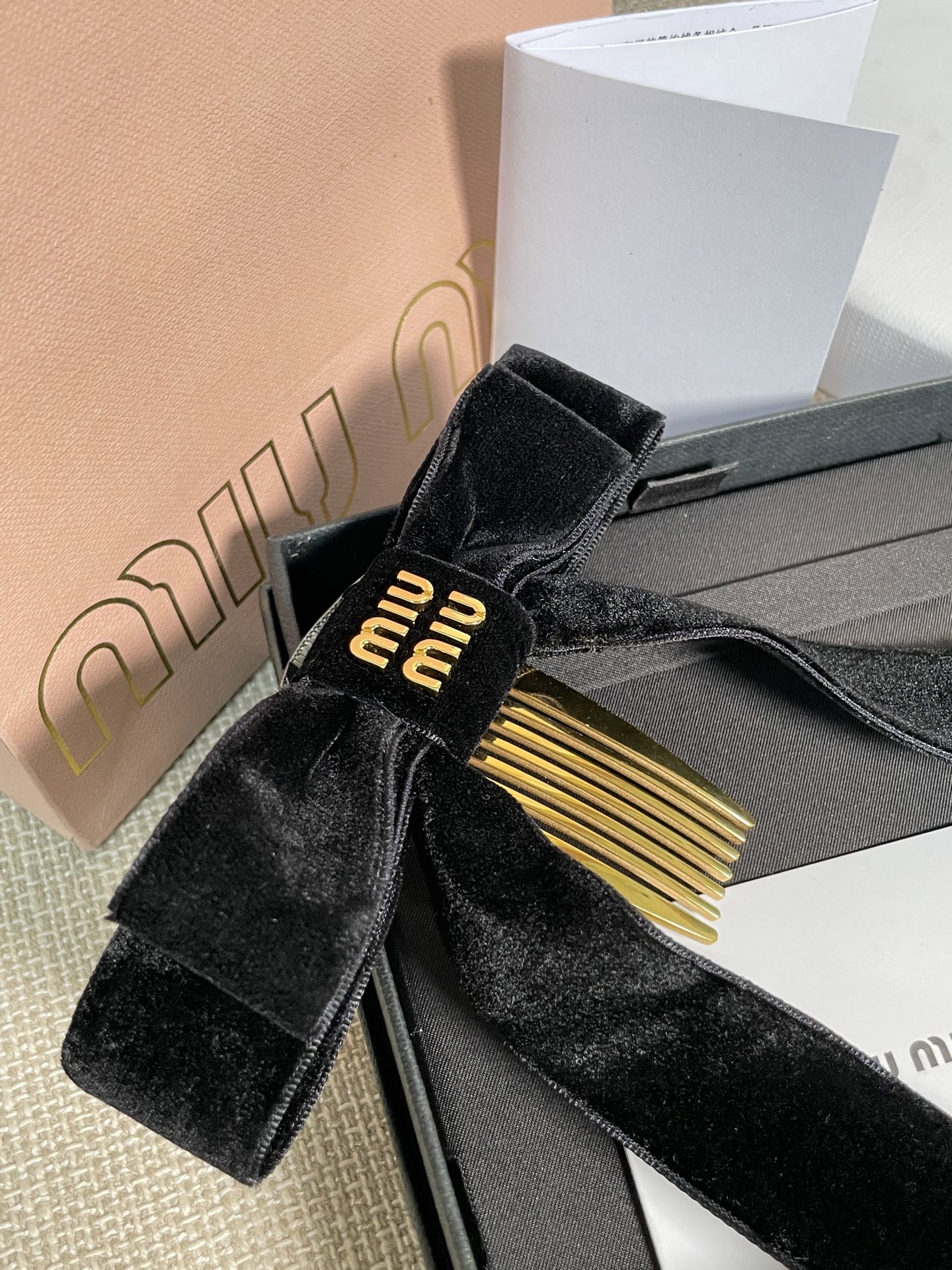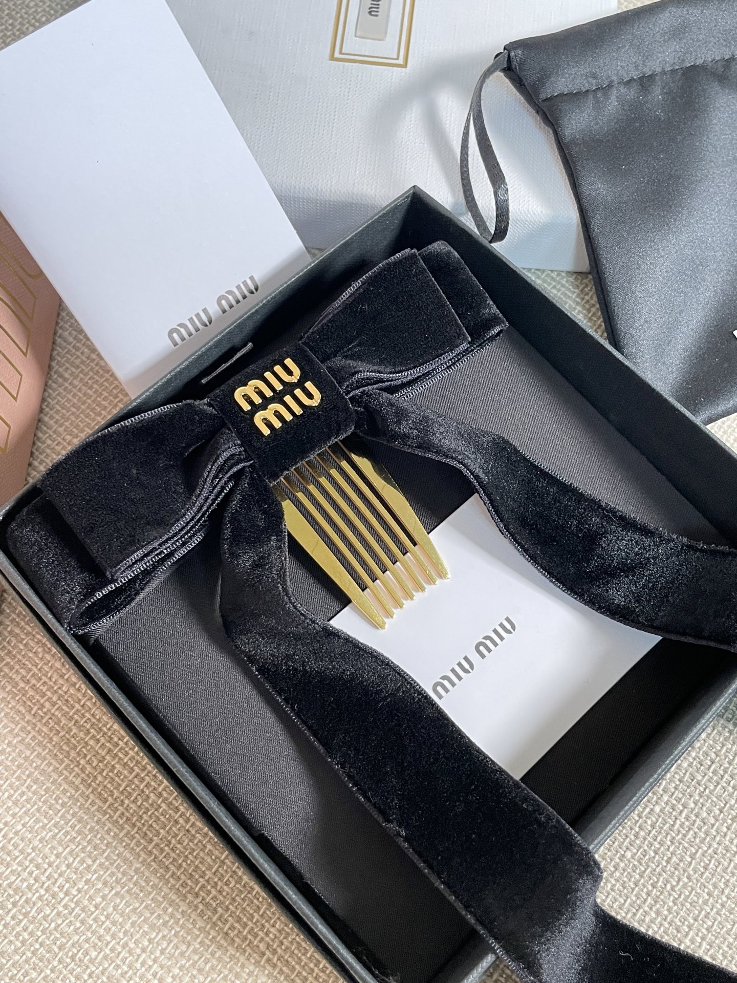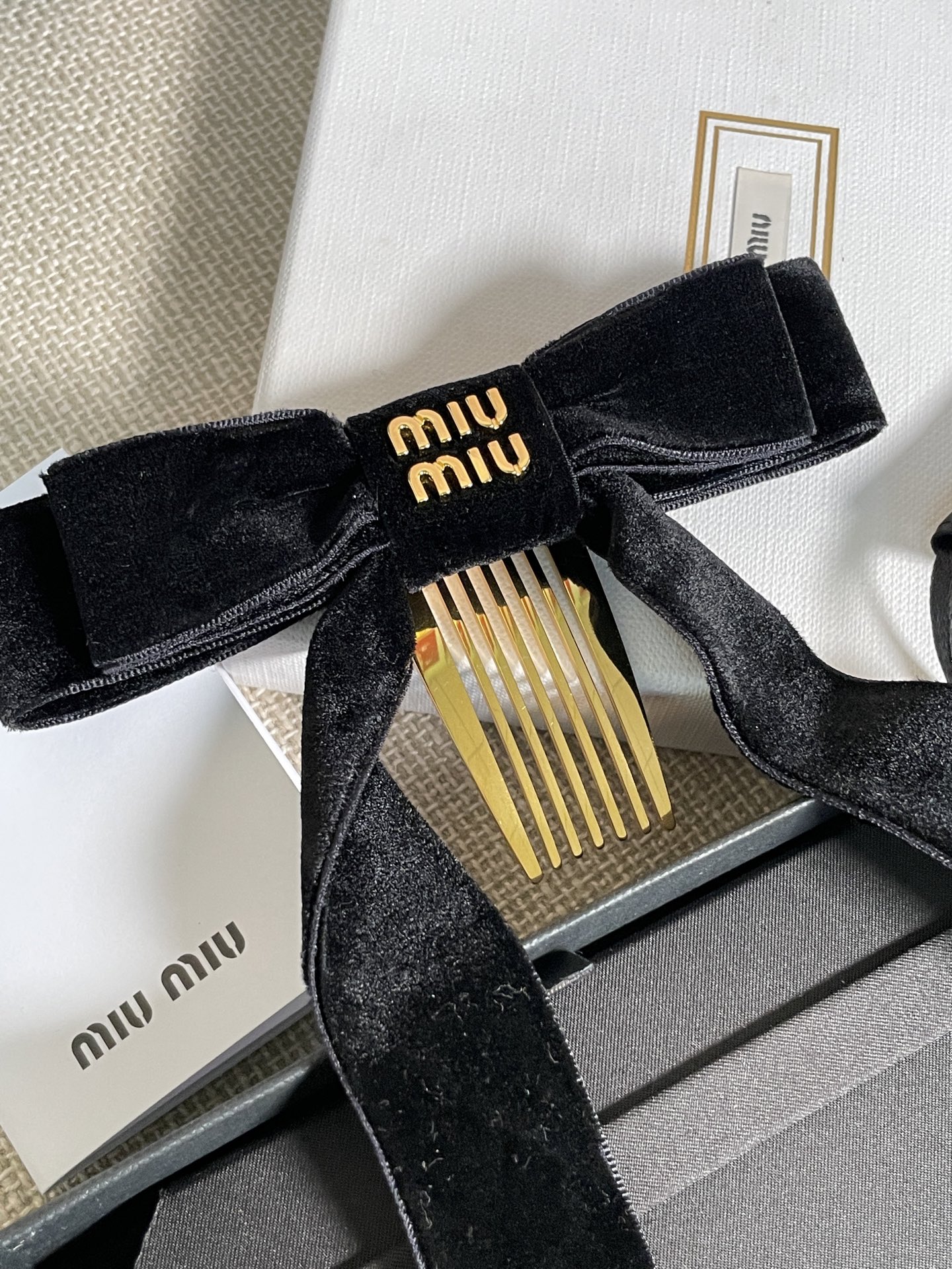 2025秋冬新品 MIU MIU 絲絨蝴蝶結髮叉 精品 高仿