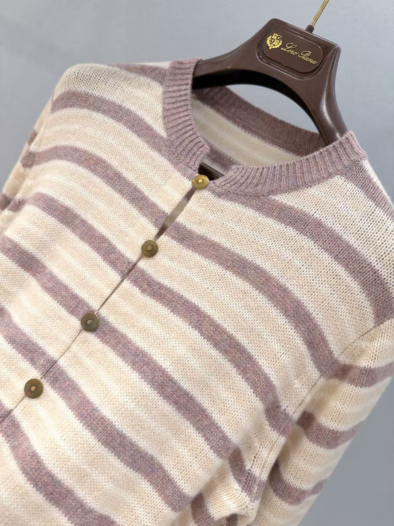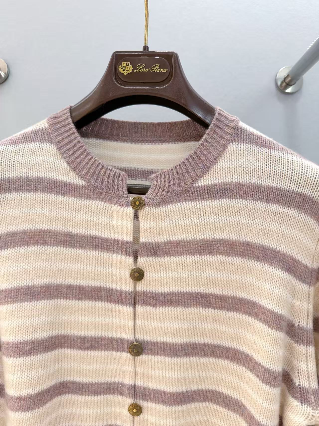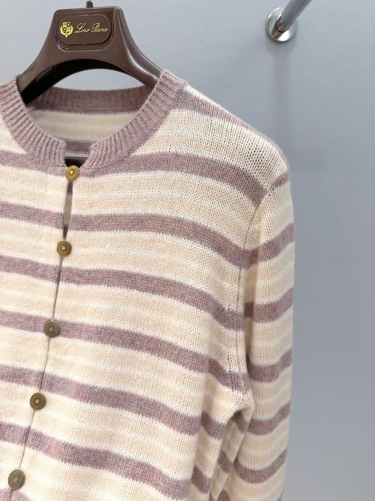 2025早秋 Loro piana 老錢風羊絨條紋開衫 精品 高仿