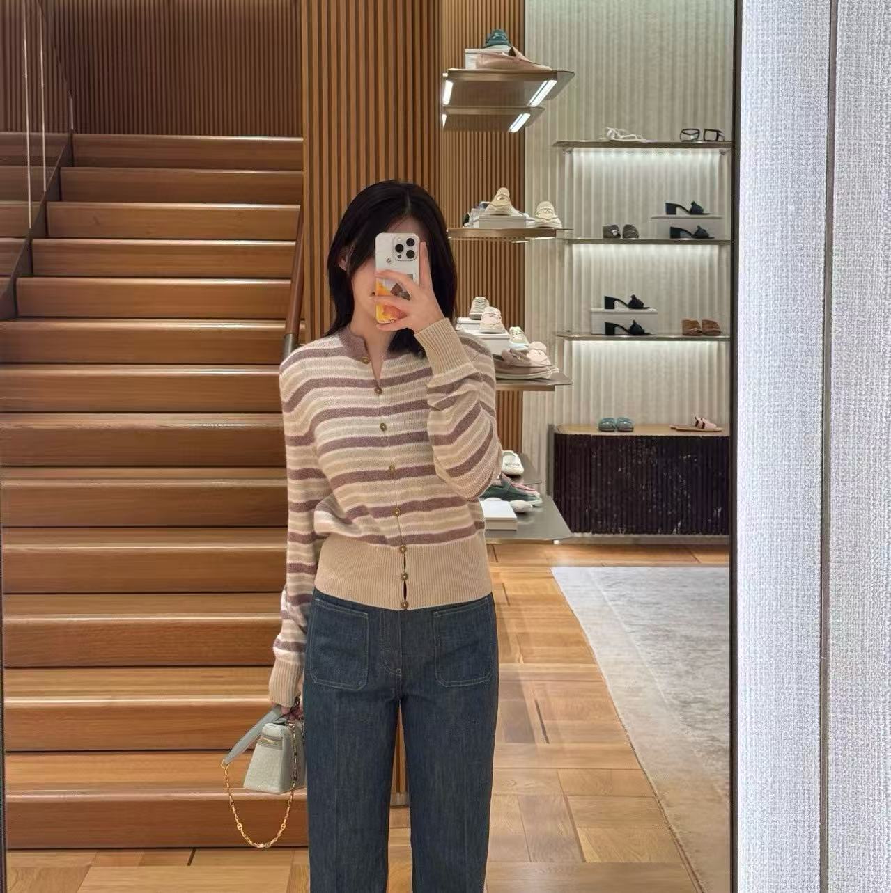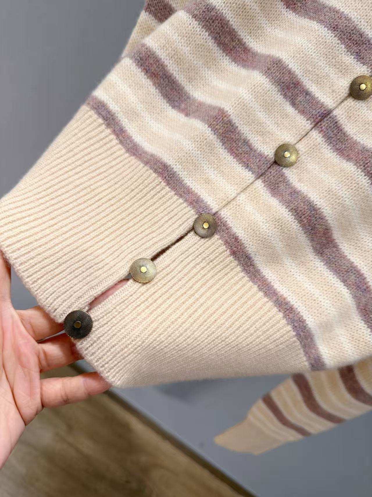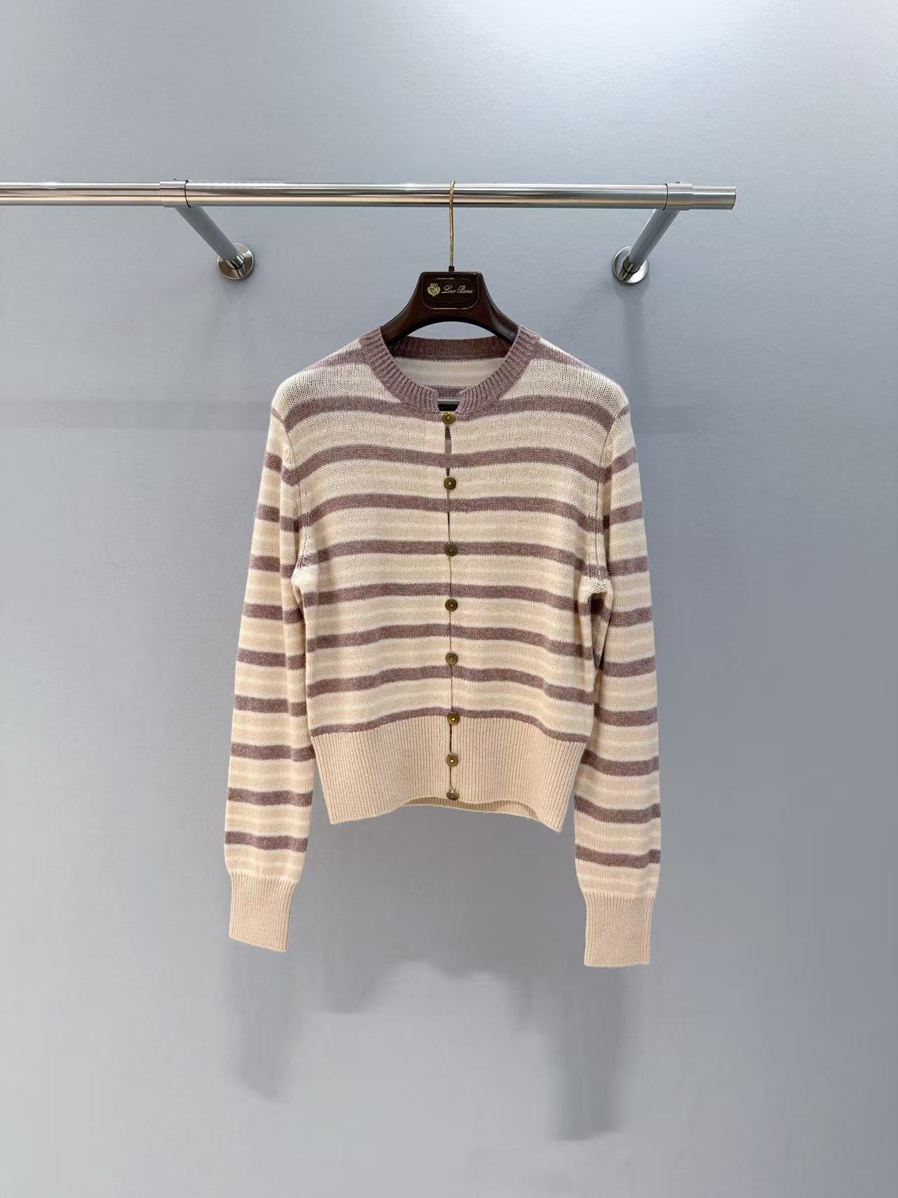 2025早秋 Loro piana 老錢風羊絨條紋開衫 精品 高仿
