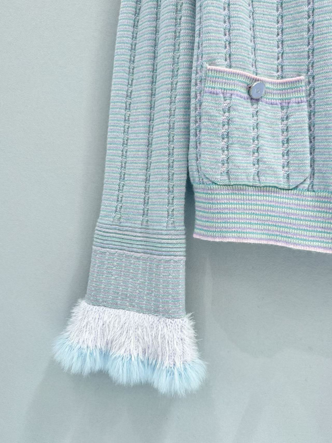 2025早秋 Chanel 喇叭荷葉袖拼毛開衫 复刻 精品