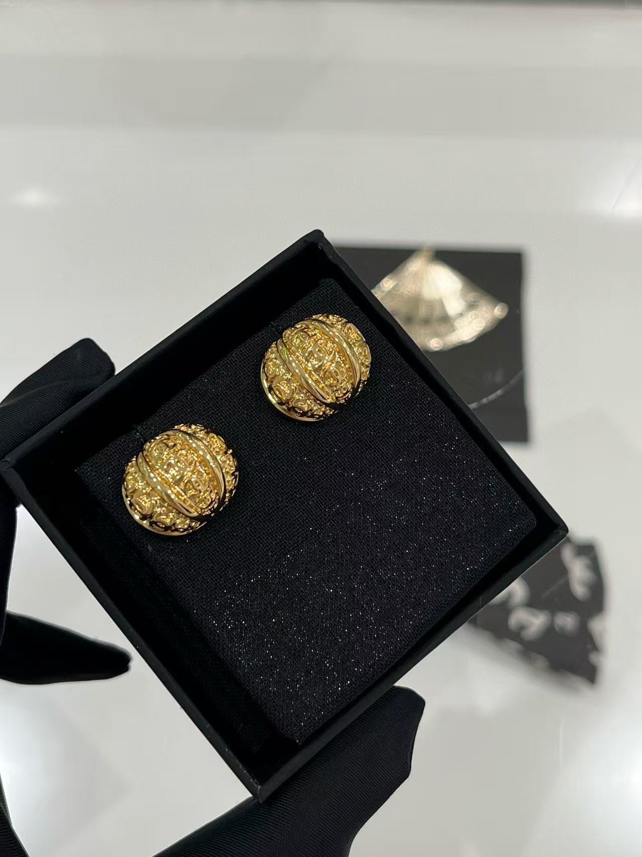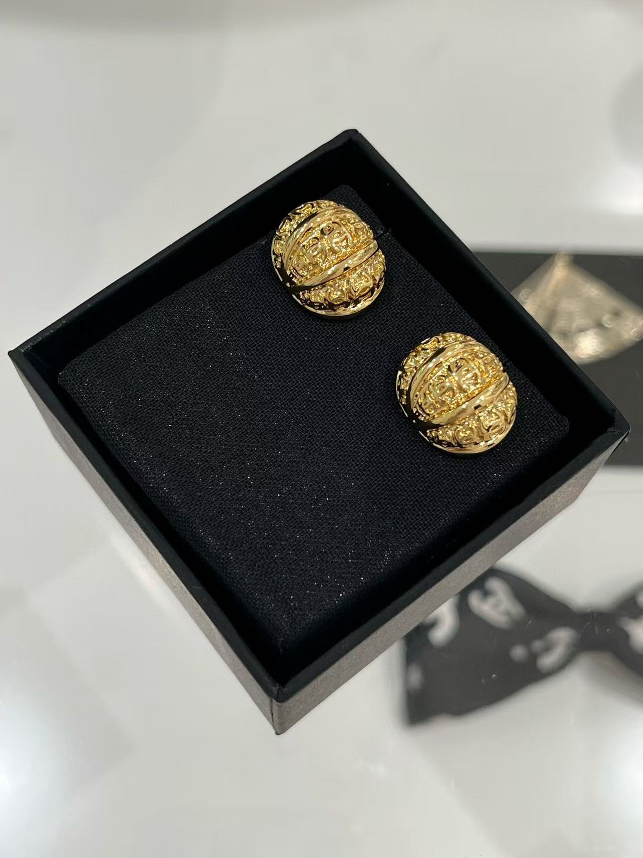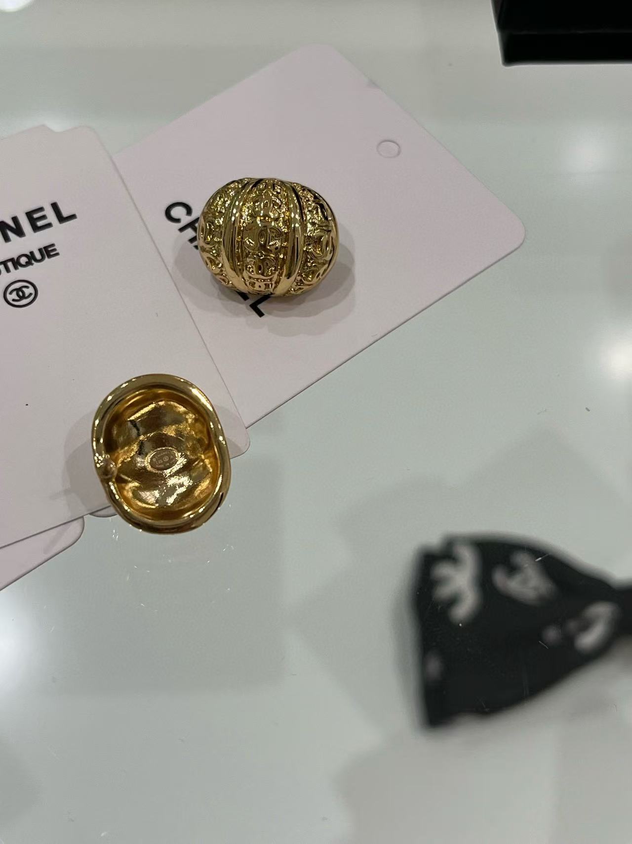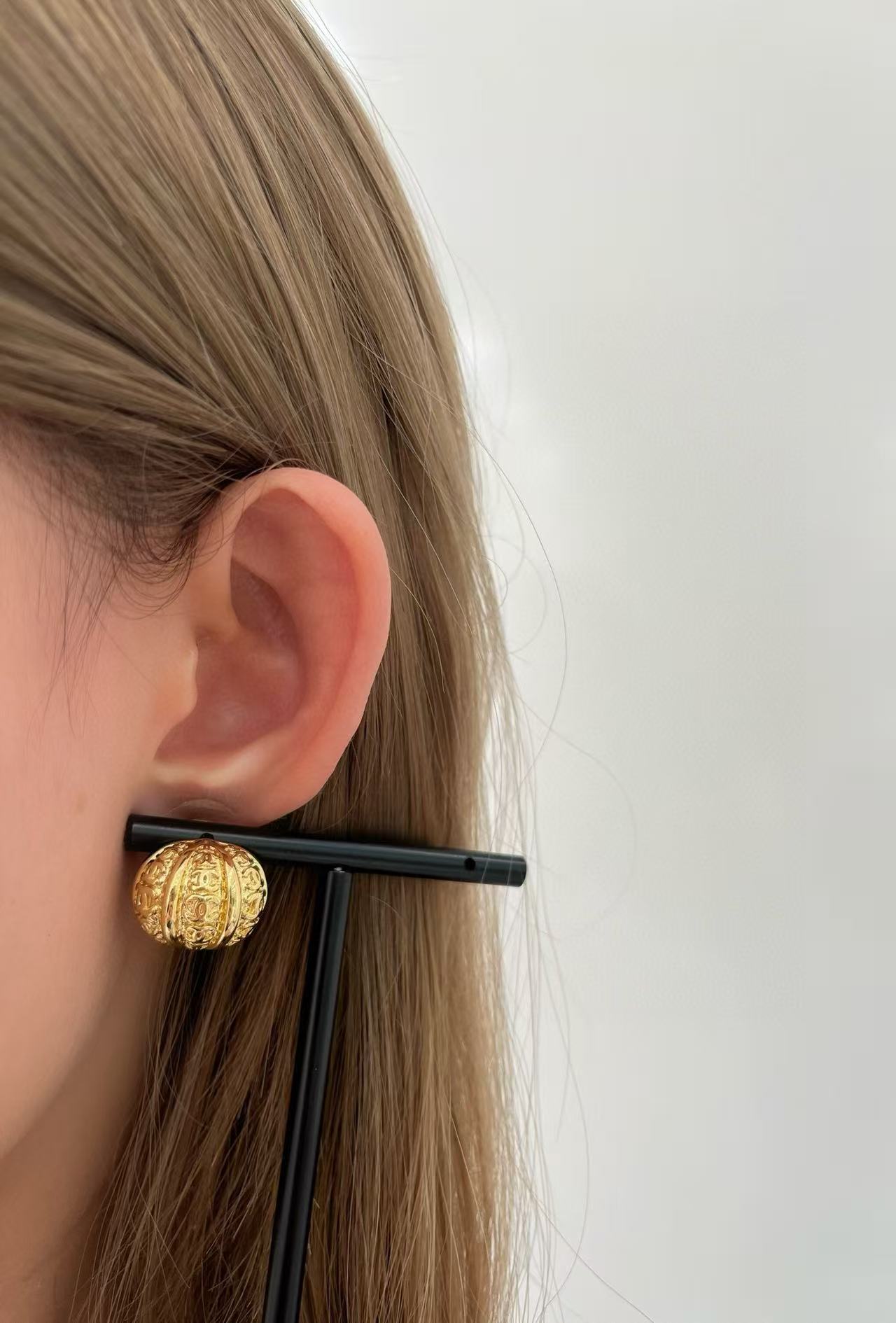 2025早秋 Chanel 金色浮雕南瓜半圓耳環 精品 高仿