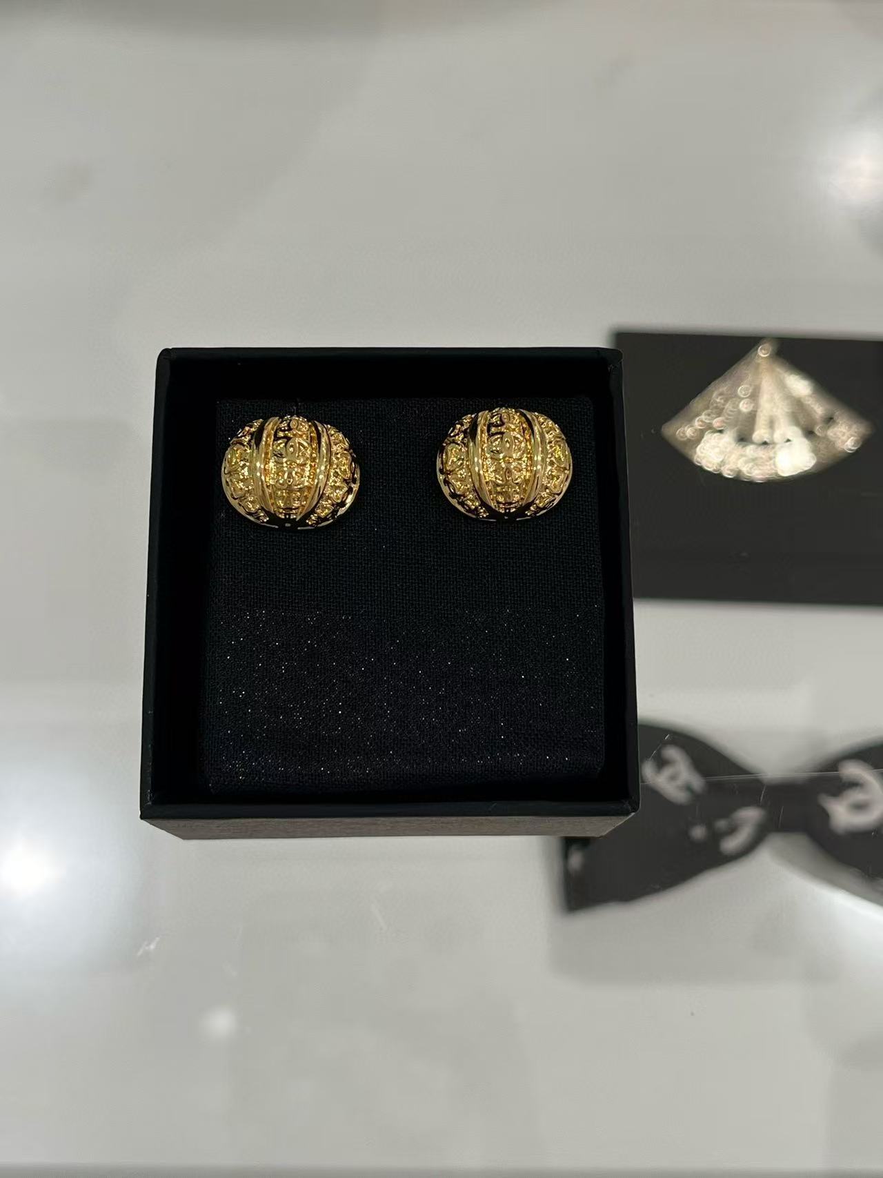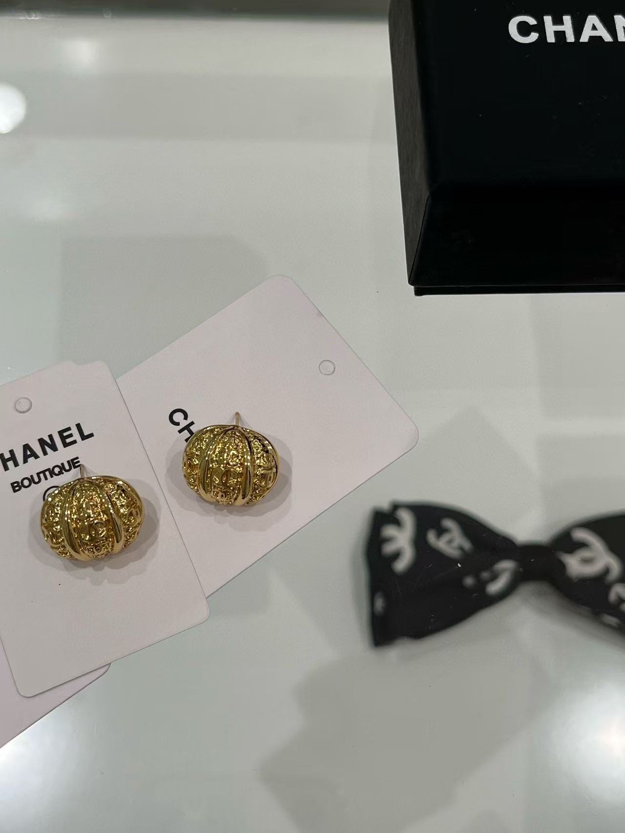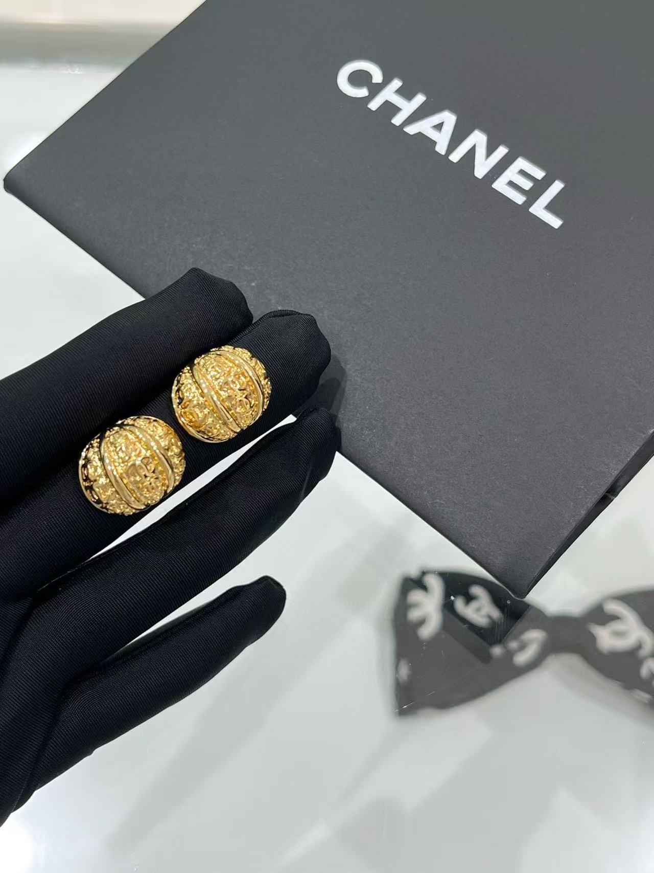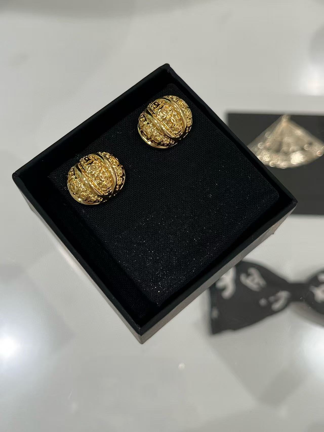 2025早秋 Chanel 金色浮雕南瓜半圓耳環 精品 高仿