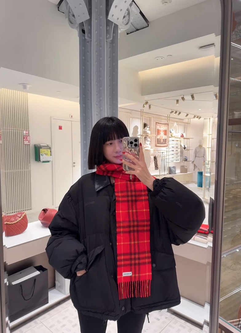 紅色圍巾其實一直是年底節日穿搭的必備單品,但 B 家的紅格紋就是有一種與眾不同的氛圍感。