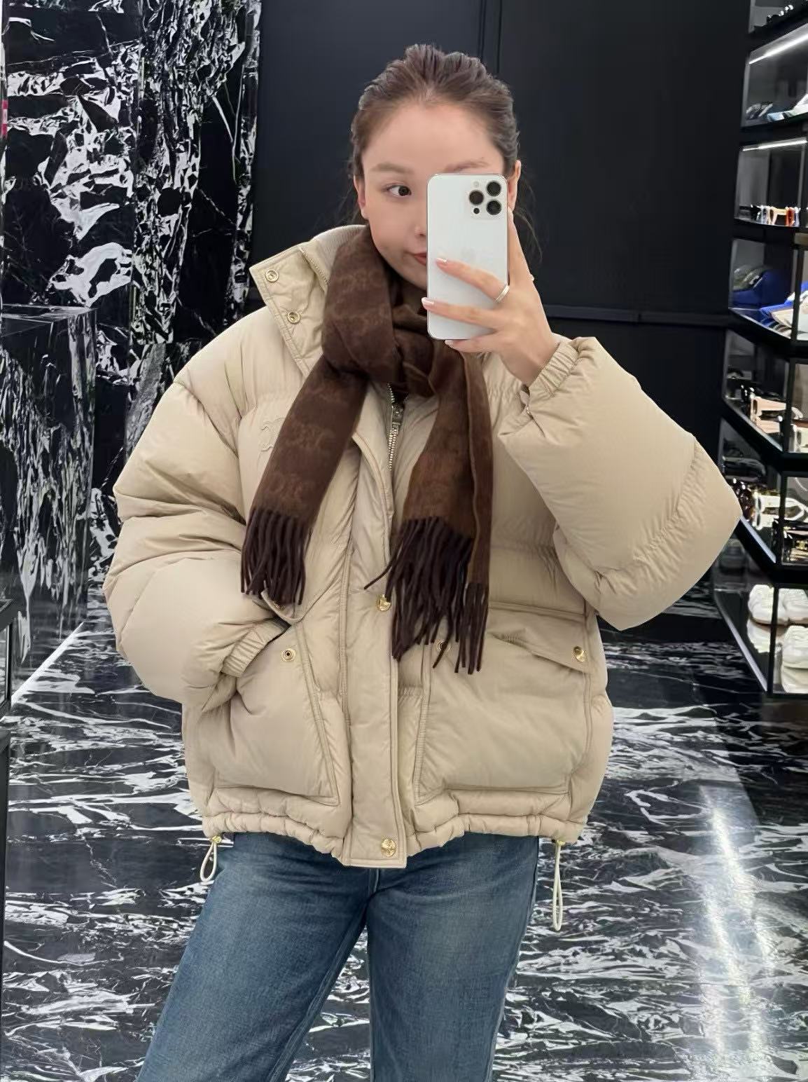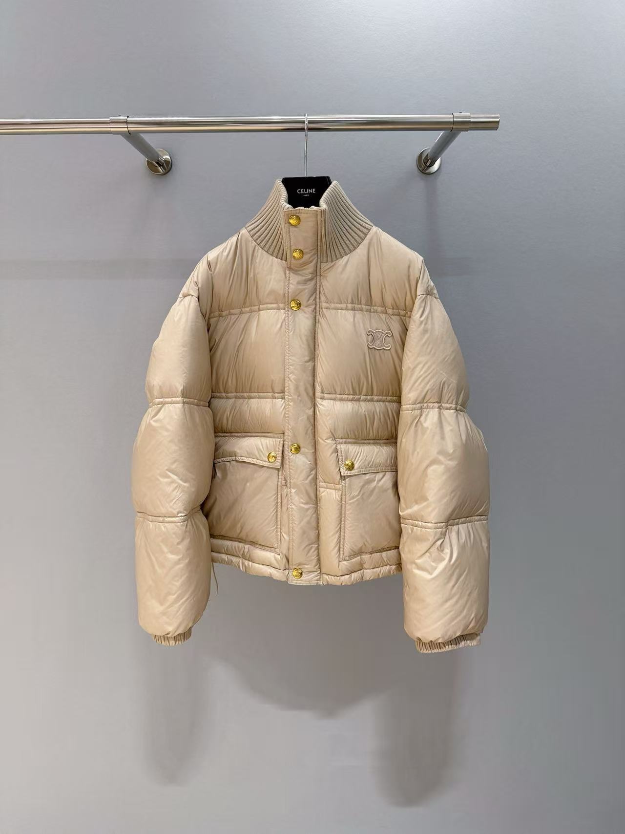2025早秋  Celine  撞色針織領奢侈品羽绒外套