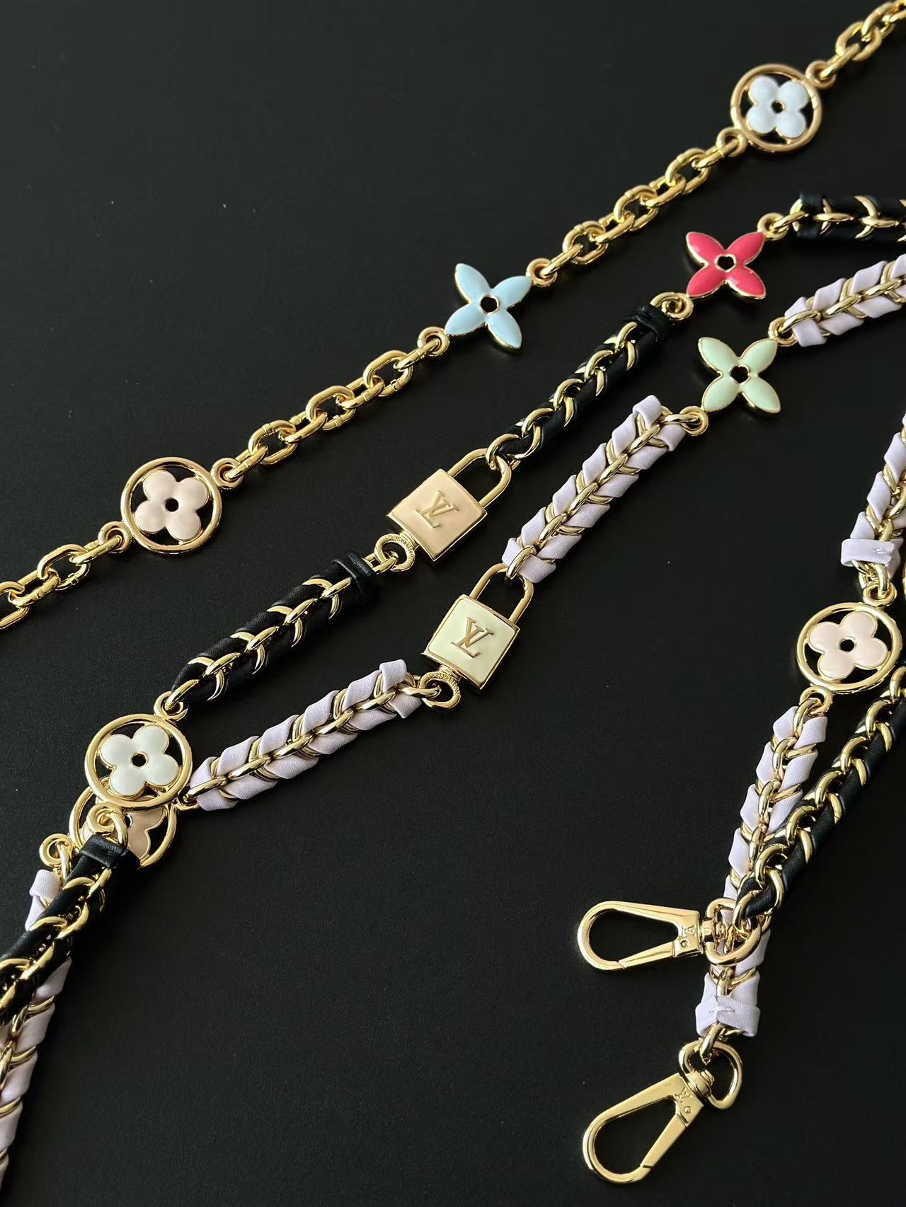 精緻細節:精緻的鏈條串起了金屬 Monogram 花卉,每一朵花都經過鑄模、琺瑯注塑和手工拋光,閃爍著絢麗的光彩,為包包增添了一份奢華感。