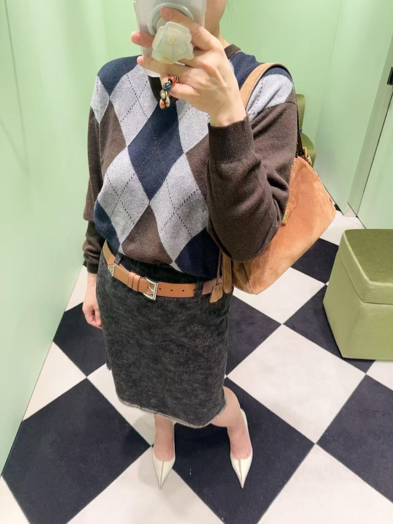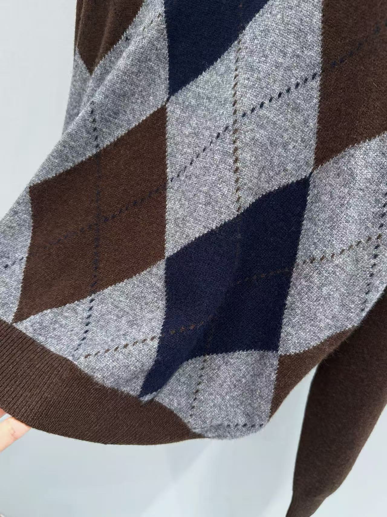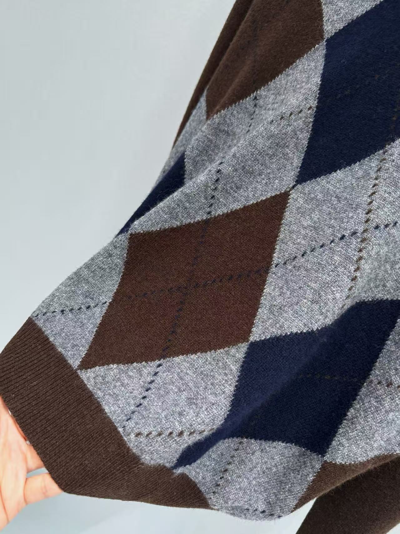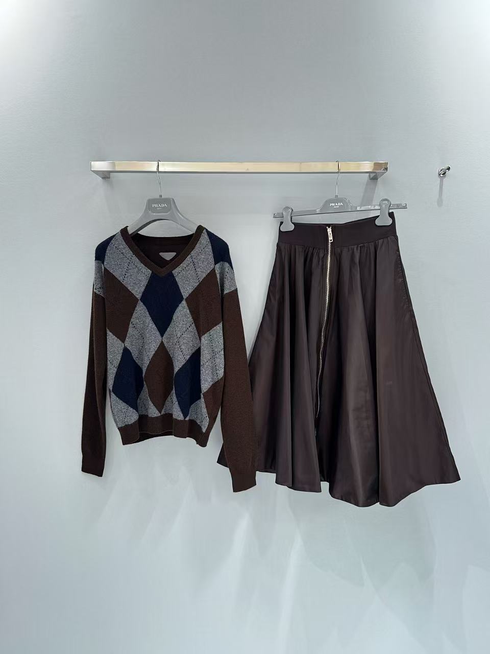 2025早秋 Prada 撞色菱格羊絨針織衫 精品 時尚