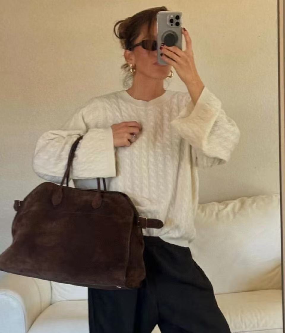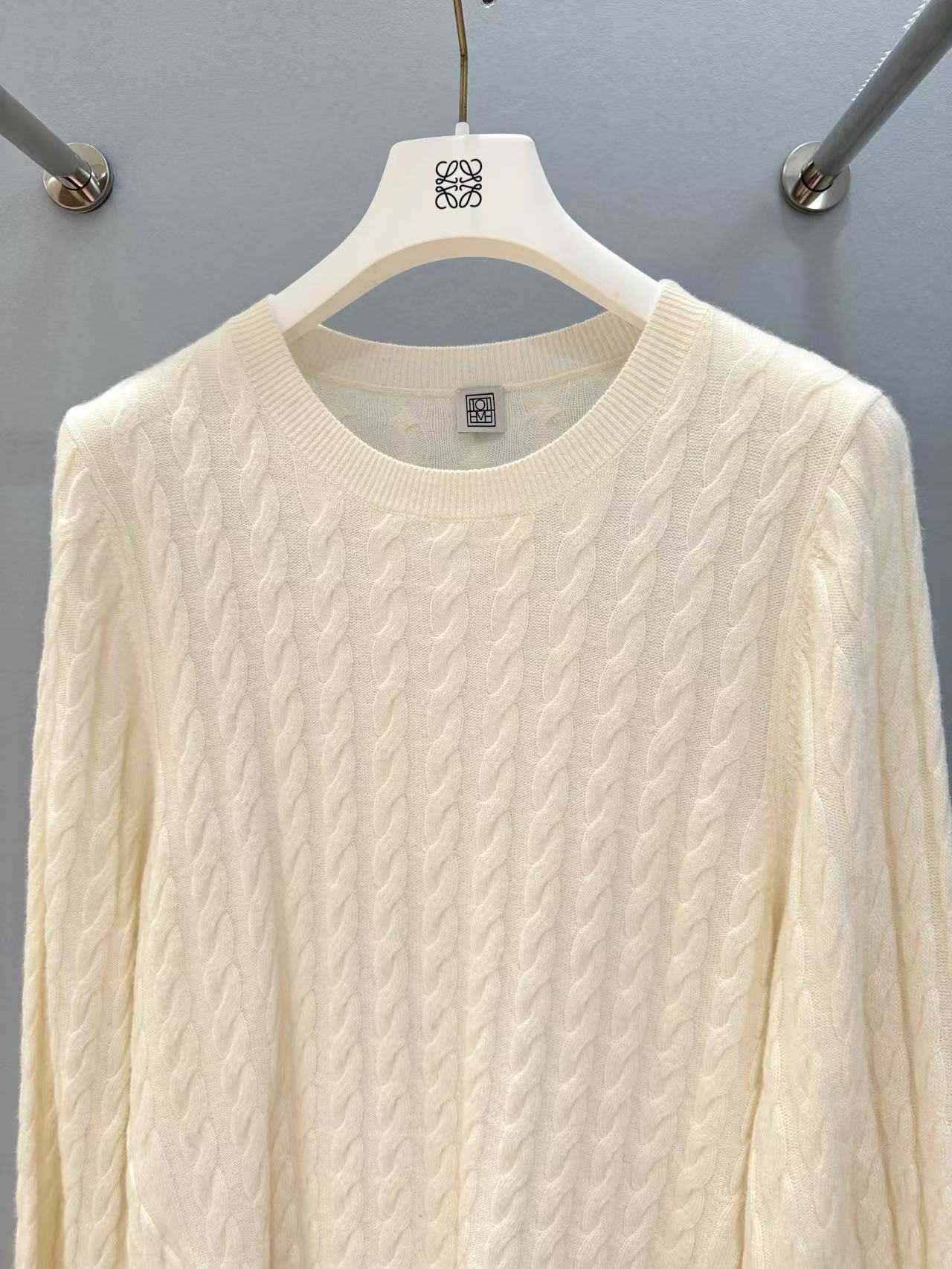 這款毛衣以 經典絞花紋理 為主軸,細膩卻不浮誇,詮釋出 Toteme 一貫的極簡美學。