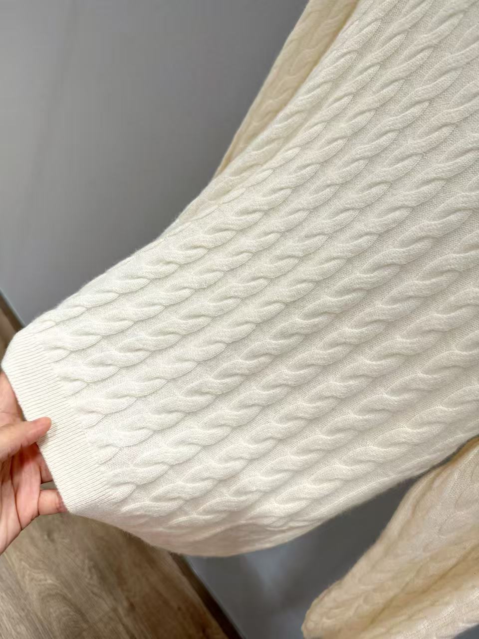 選用上乘羊毛紗線,柔軟親膚、保暖輕盈。上身貼合但不緊繃,觸感細膩如奶油般滑順,穿上一整天都倍感舒適。這件毛衣的質感讓人想起奢侈品的精緻,彷彿是在擁有一件高仿精品的絕佳體驗。