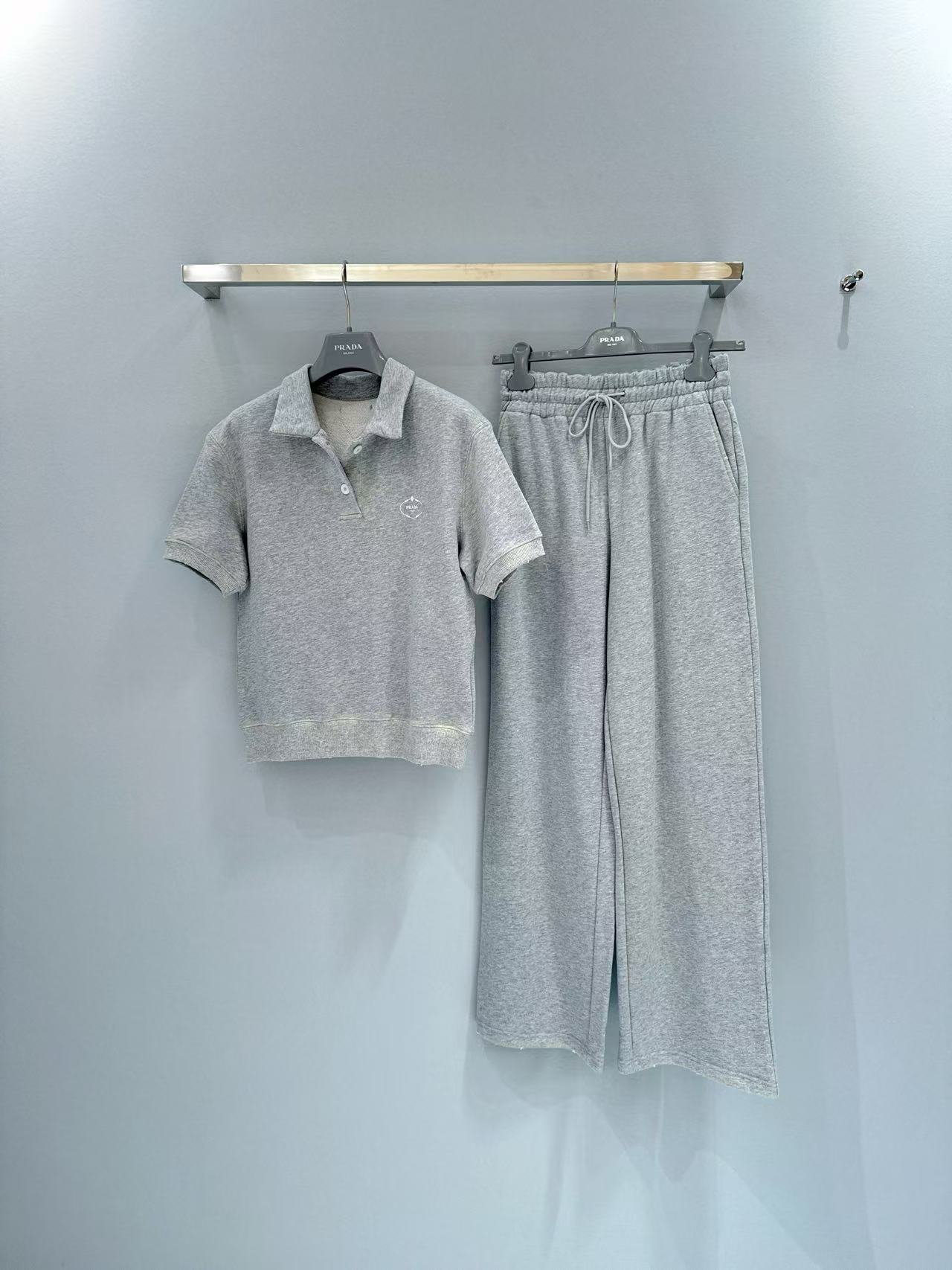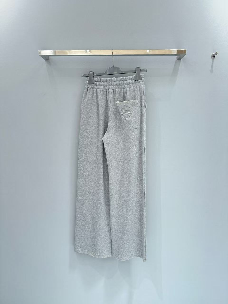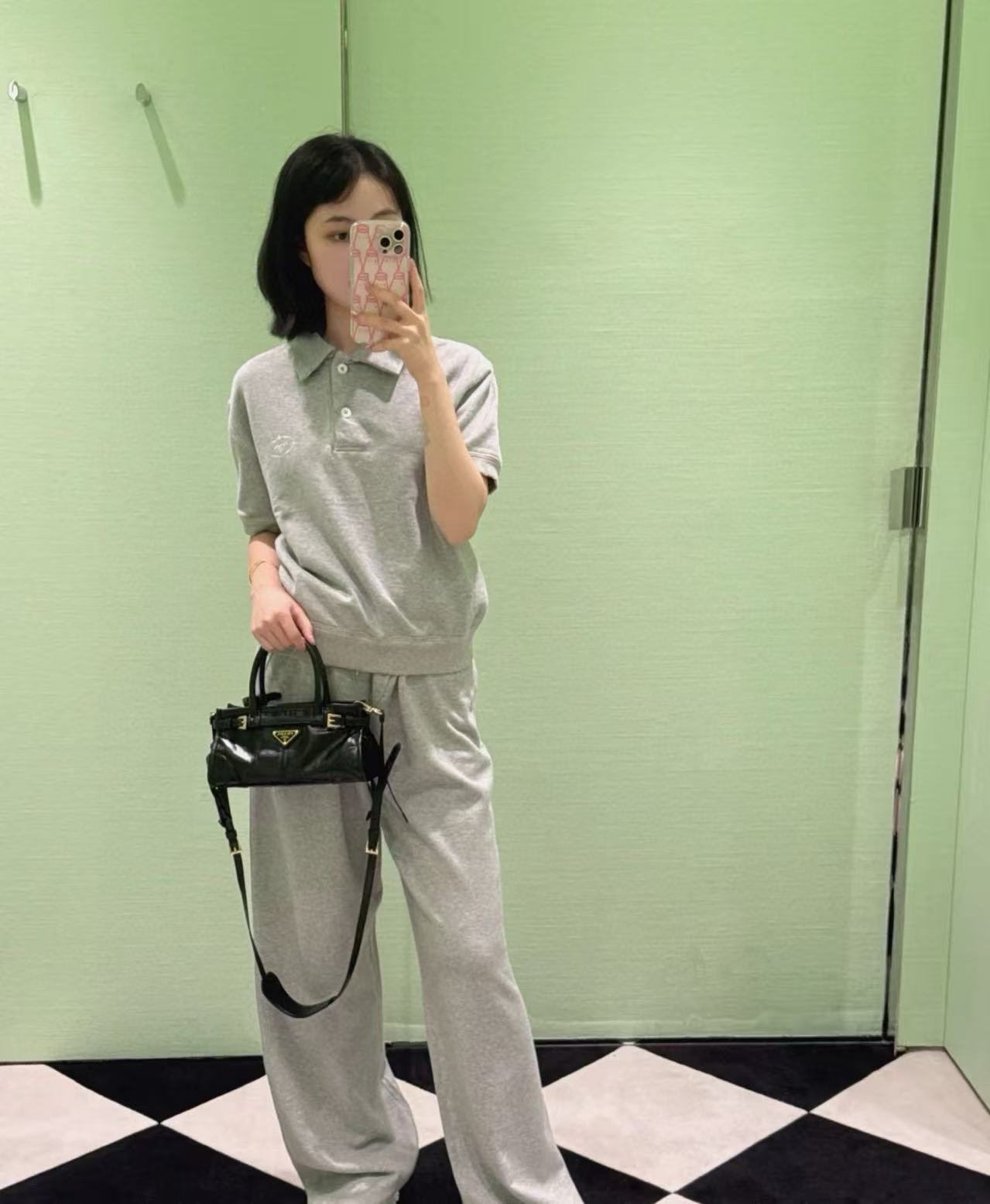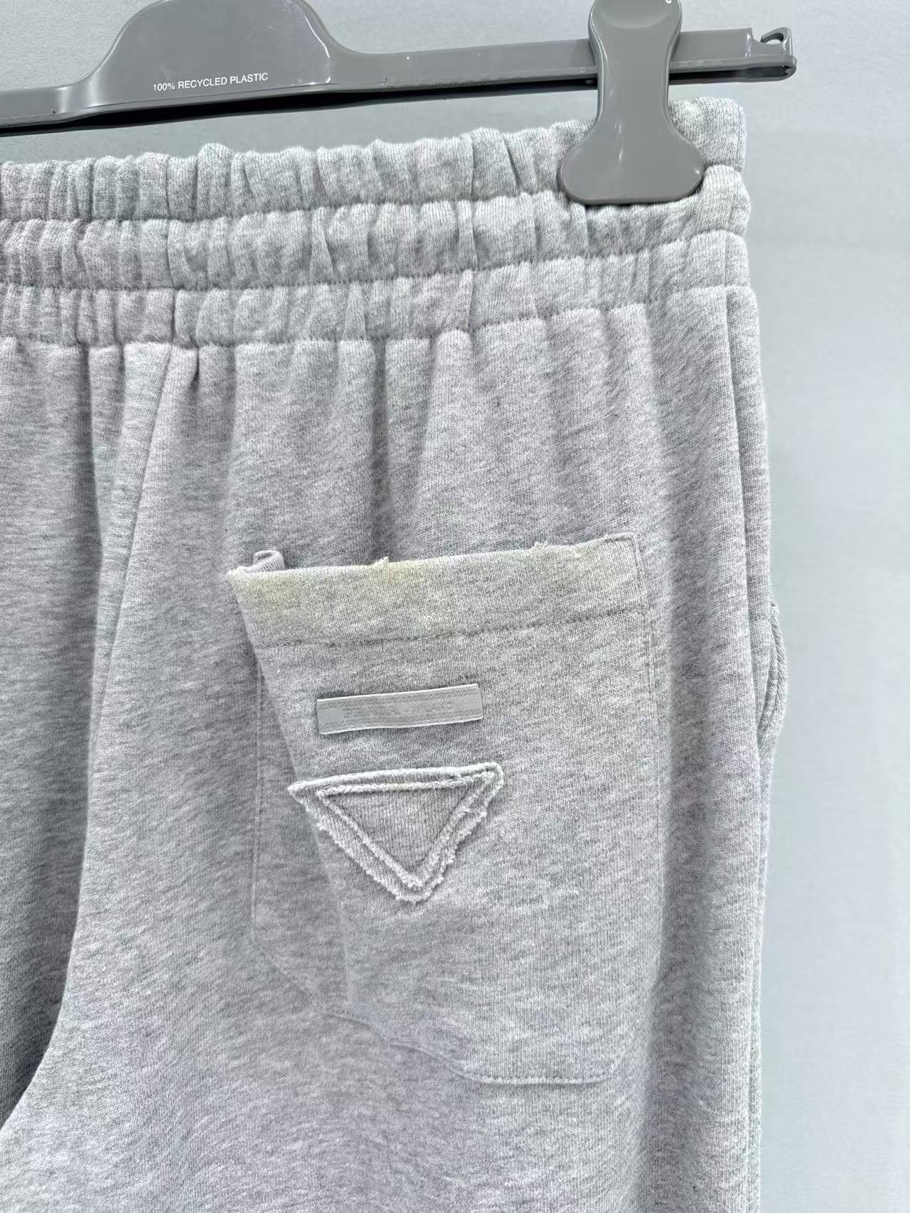 螺紋領口與袖口飾邊更添細節感,後領位置還有經典三角標識;褲子則在後口袋點綴標誌性三角標,設計低調卻很有辨識度。
