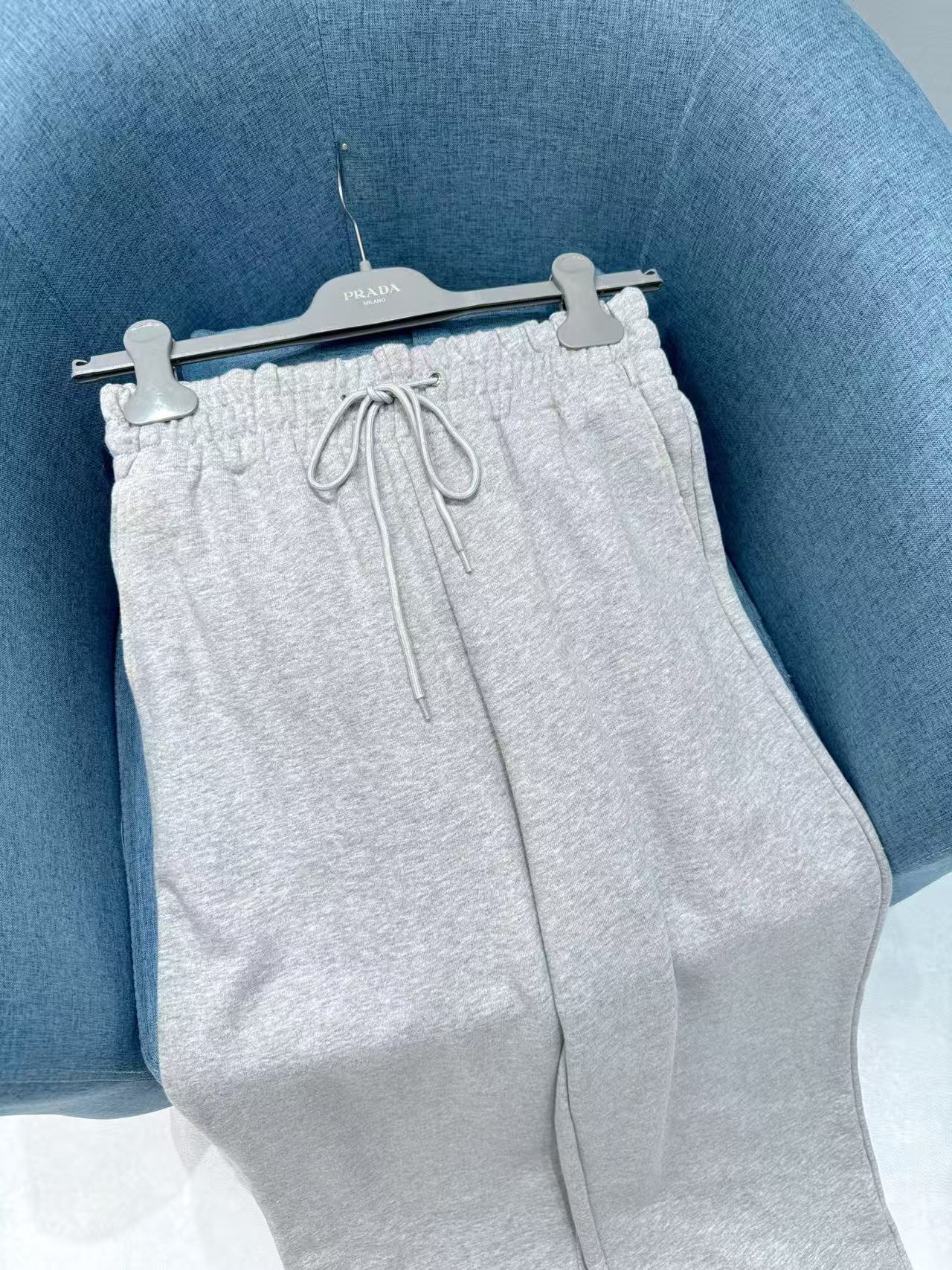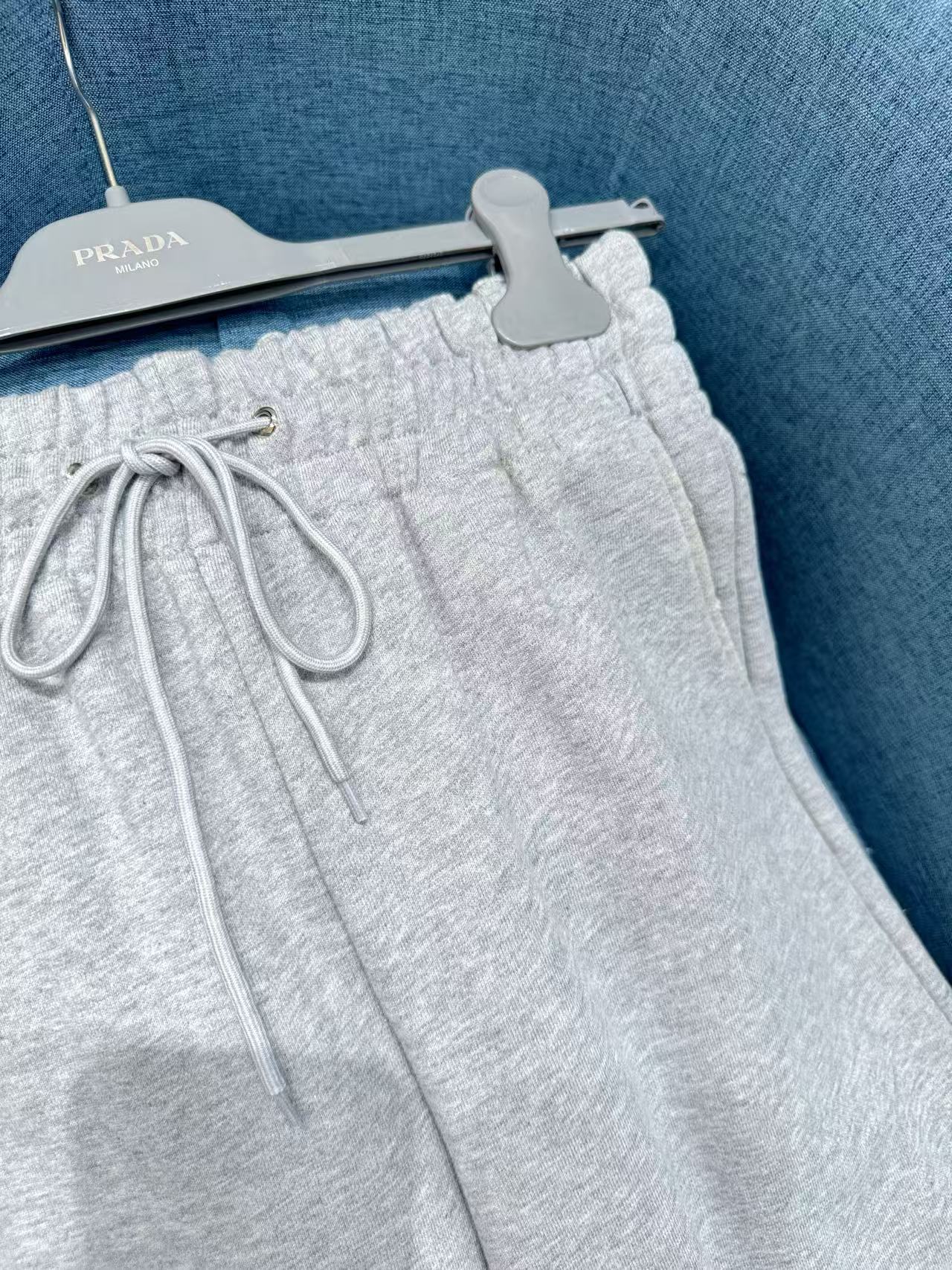 2025早秋 Prada 抽繩休閒衛褲 精品 時尚,整體以做舊字母印花設計,帶出復古運動感。