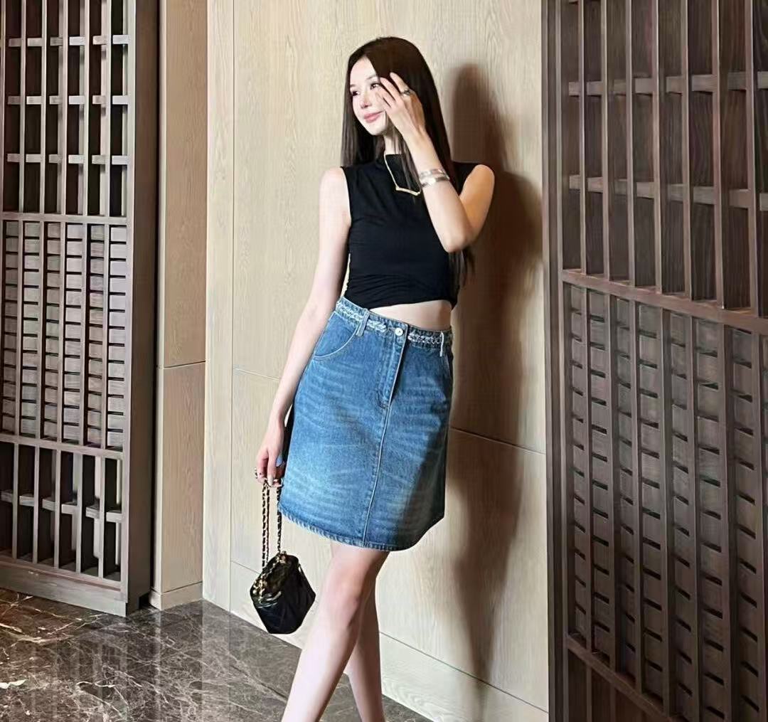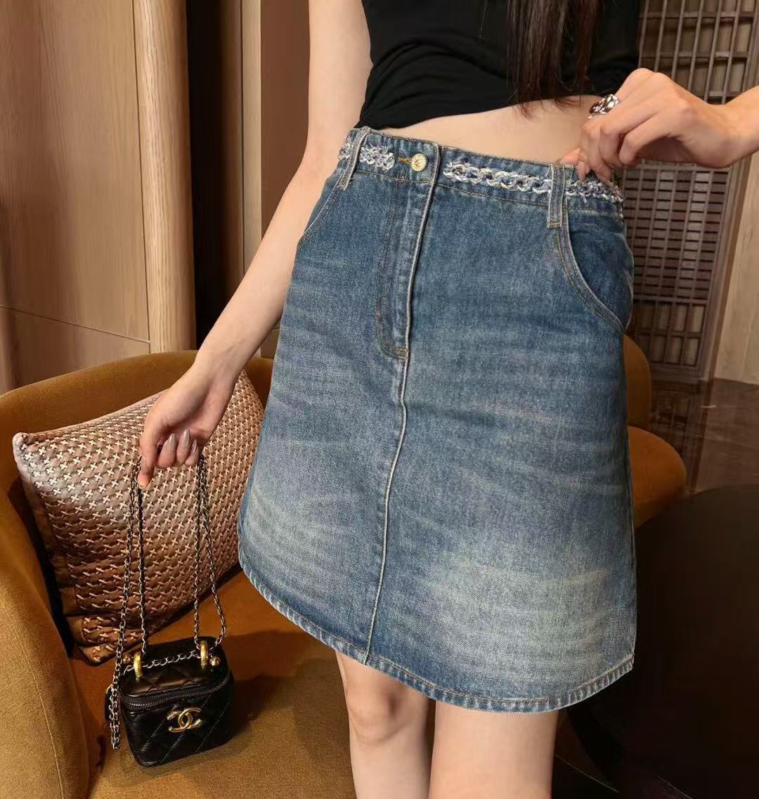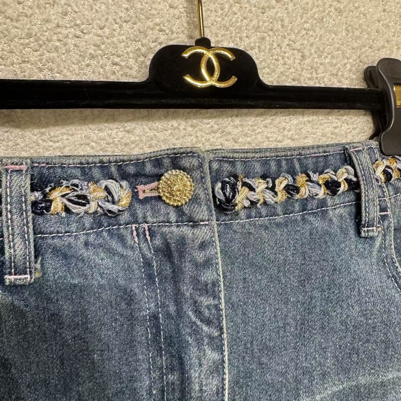 雙十一重磅福利款-Chanel 粗花呢織帶牛仔半裙 精品 超A