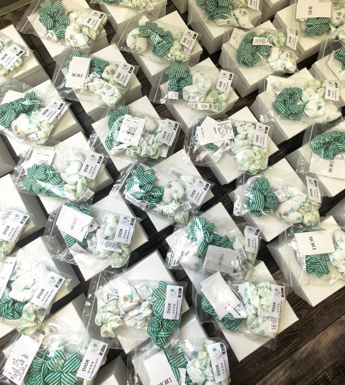 整組髮繩都飾有金絲線繡製的蜜蜂小標,低調中帶著閃爍光澤,細節感滿滿,這樣的配飾真是高仿中的珍品!