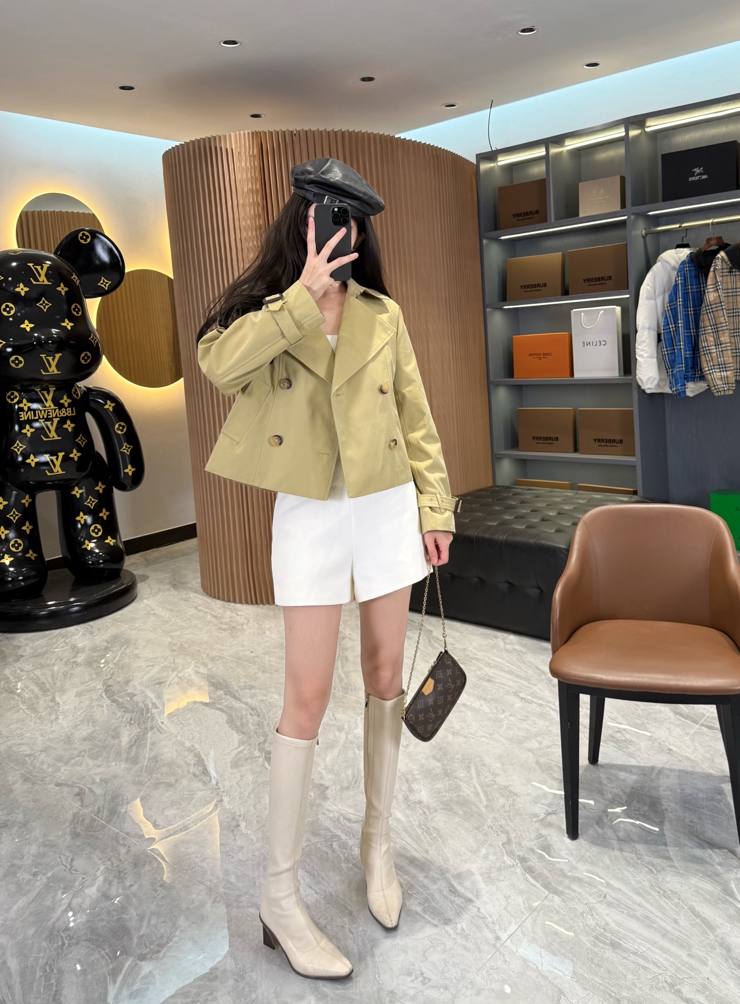 若你正在尋找一件可以長久穿著、不受潮流限制的單品,這件短款雲雀色風衣就是最好的選擇。穿上它,你會明白什麼叫做經典不需多言。