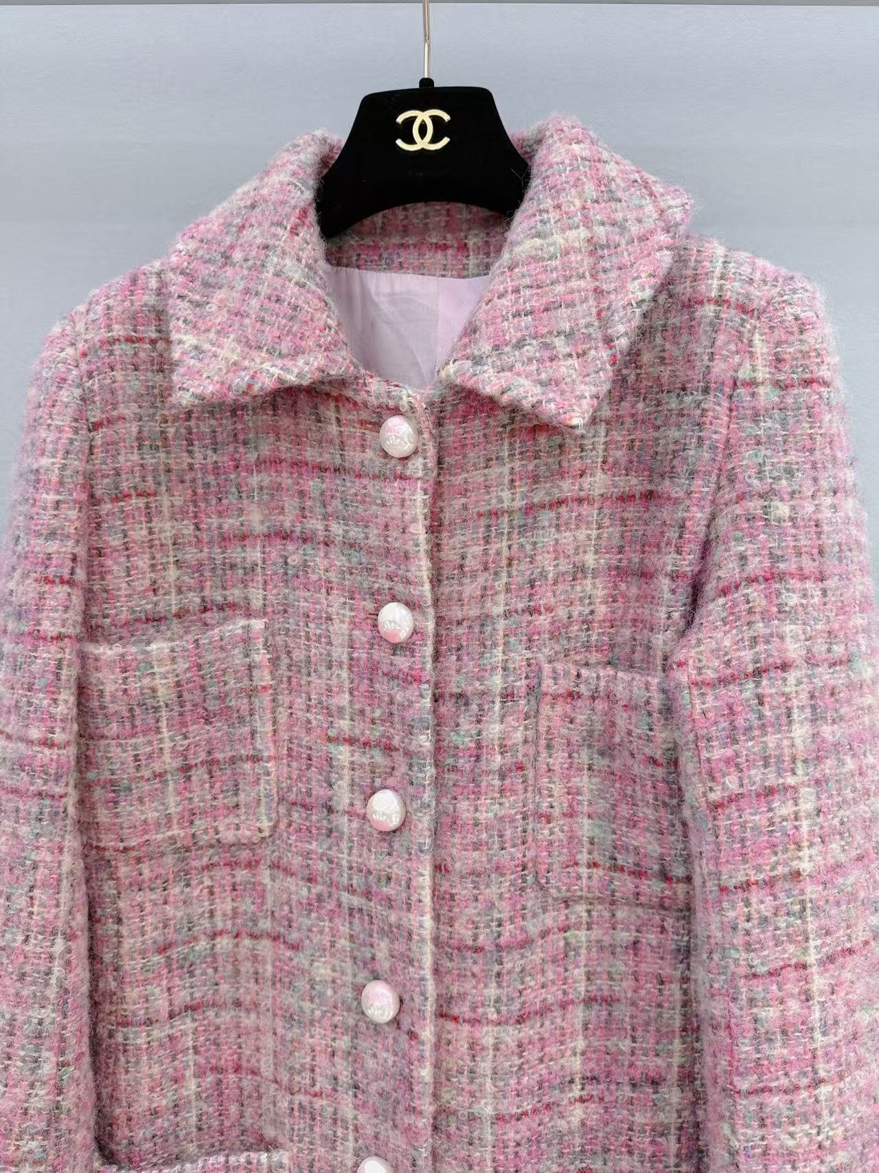 2025早秋 Chanel 粉色粗花呢大衣 高仿 精工,名媛風穿搭首選