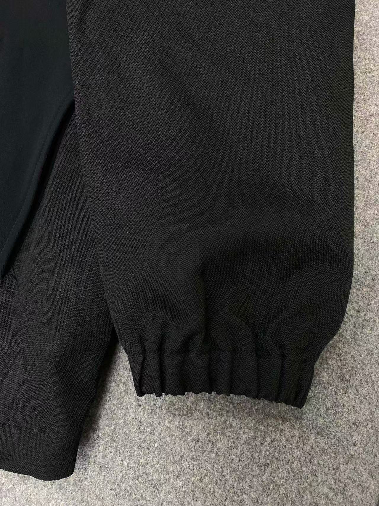這款夾克採用連帽束腰剪裁,版型挺括有型,適合各種身形,男女皆宜。袖子與大身粗斜紋材料偏硬挺,上身廓形強烈,展現俐落氣場;中間細斜紋拼接則柔軟舒適,中和整體硬朗感,讓穿著體驗更自在。腰部束帶設計隨心調整曲線,輕鬆切換寬鬆或收腰造型。再加上這些精工細節,讓整件外套如同奢侈品般完美。玻璃珠繡花與定制五金點綴細節,走線精準、內裡全包邊,里外乾淨精緻。面料歷經四個月訂製,採用激光切割技術鎖邊防散口,還原度極高,無論單穿還是層搭,走出去都是時尚的主角!