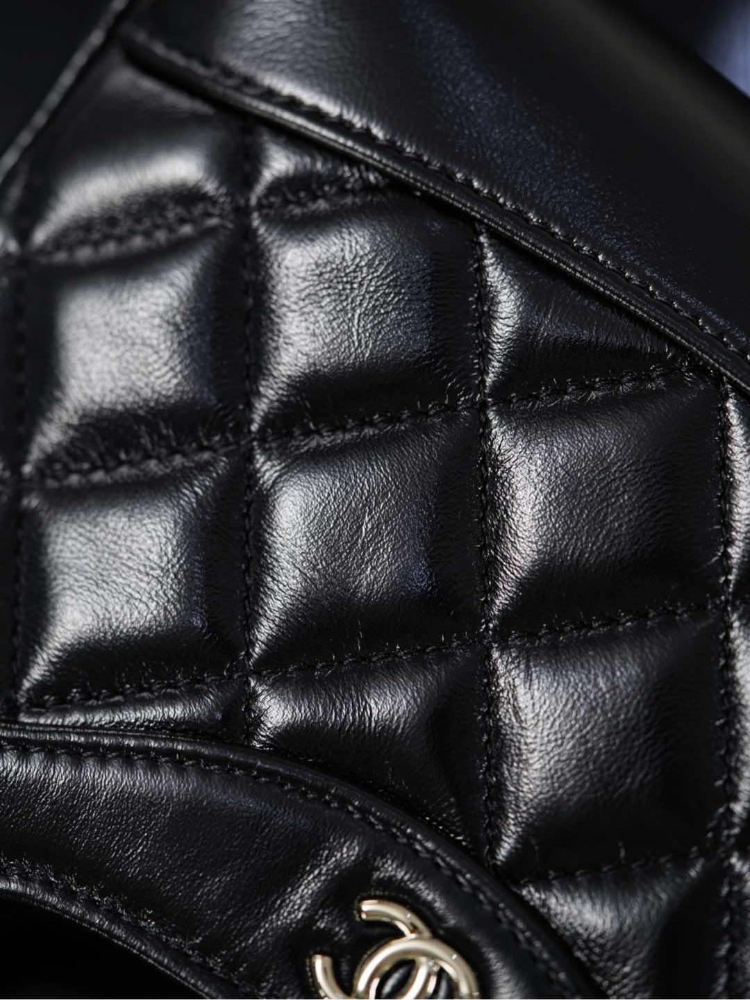搭配香檳金雙C扣與金屬鏈條,細節光澤低調奢華,每一處都展現出品牌一貫的極致工藝。