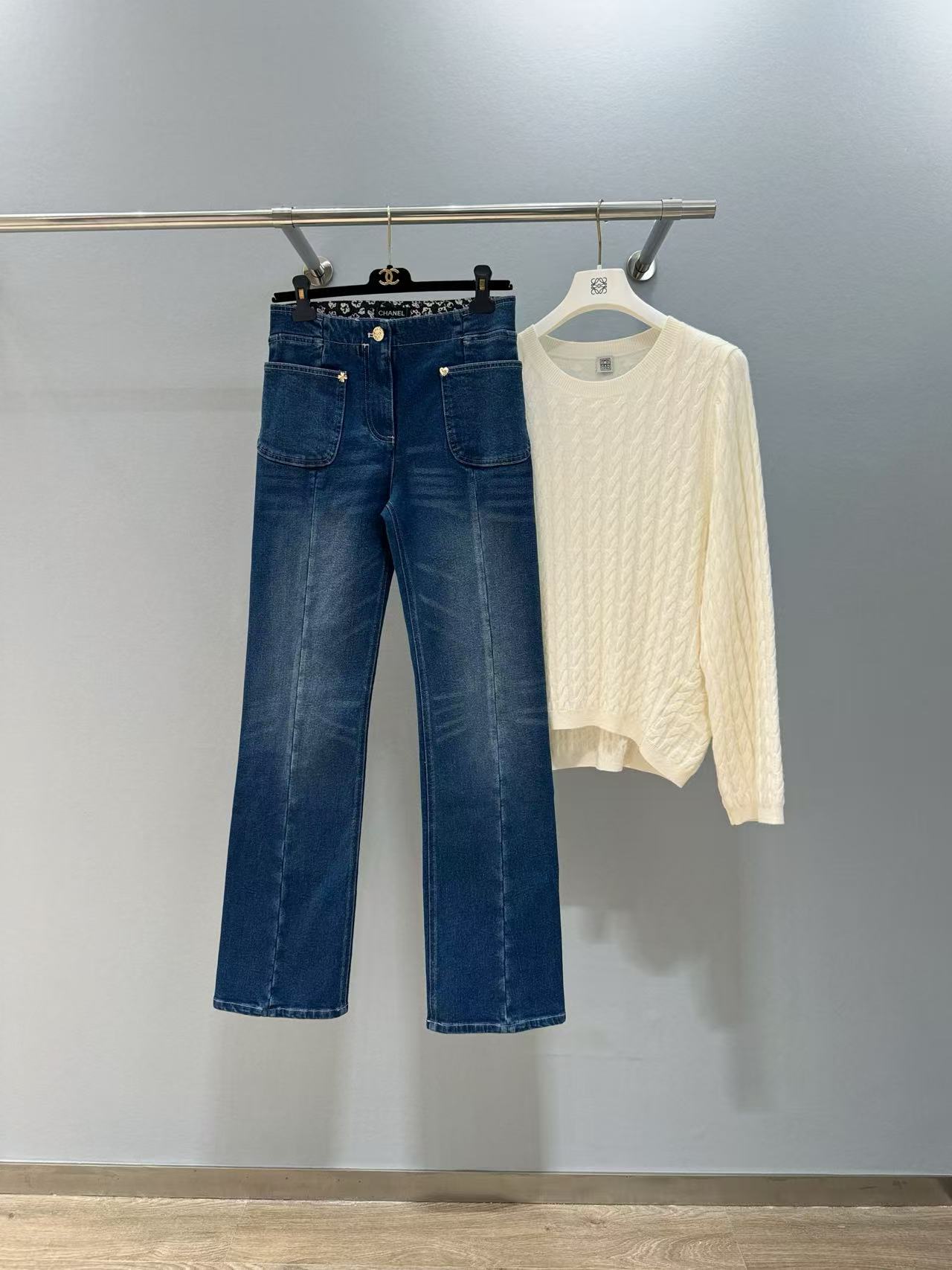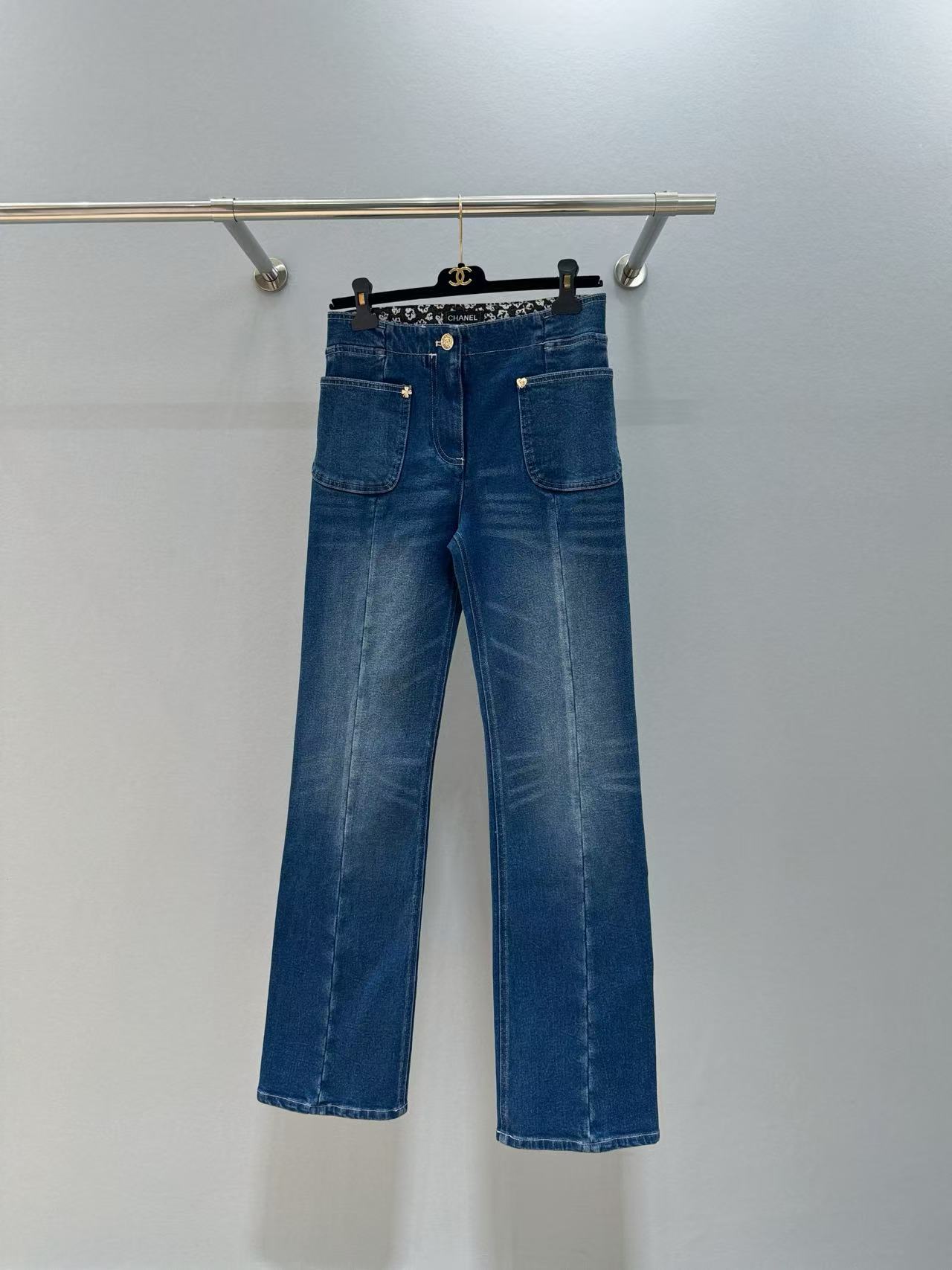 2025早秋 Chanel 雙口袋解構直筒牛仔褲精品 高仿