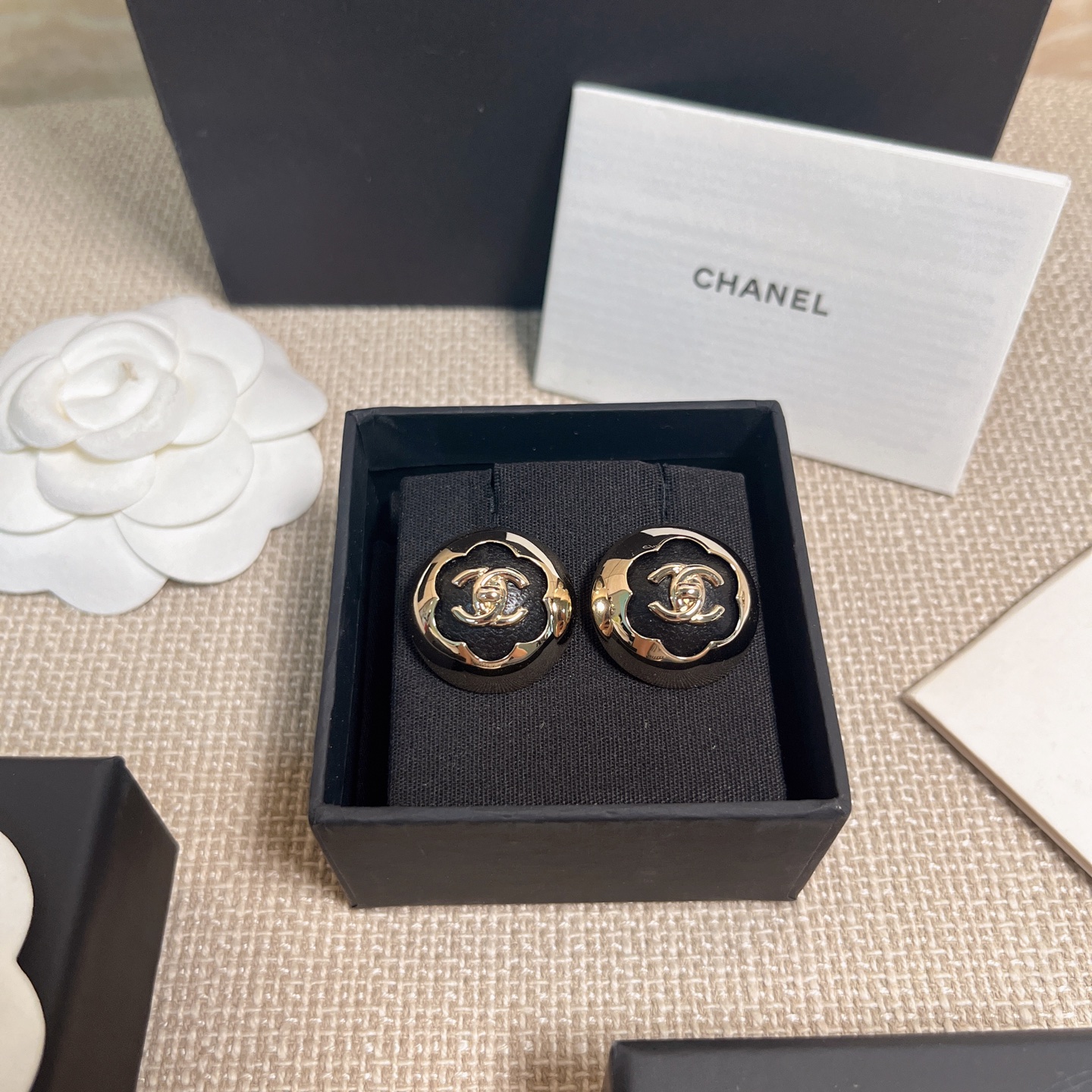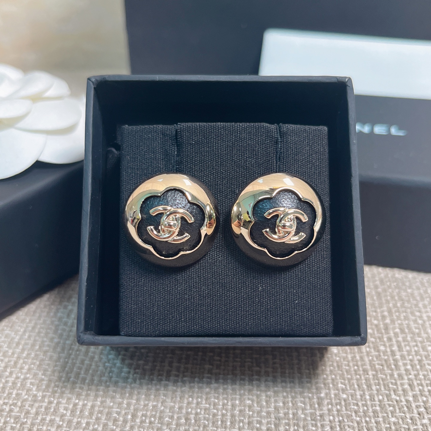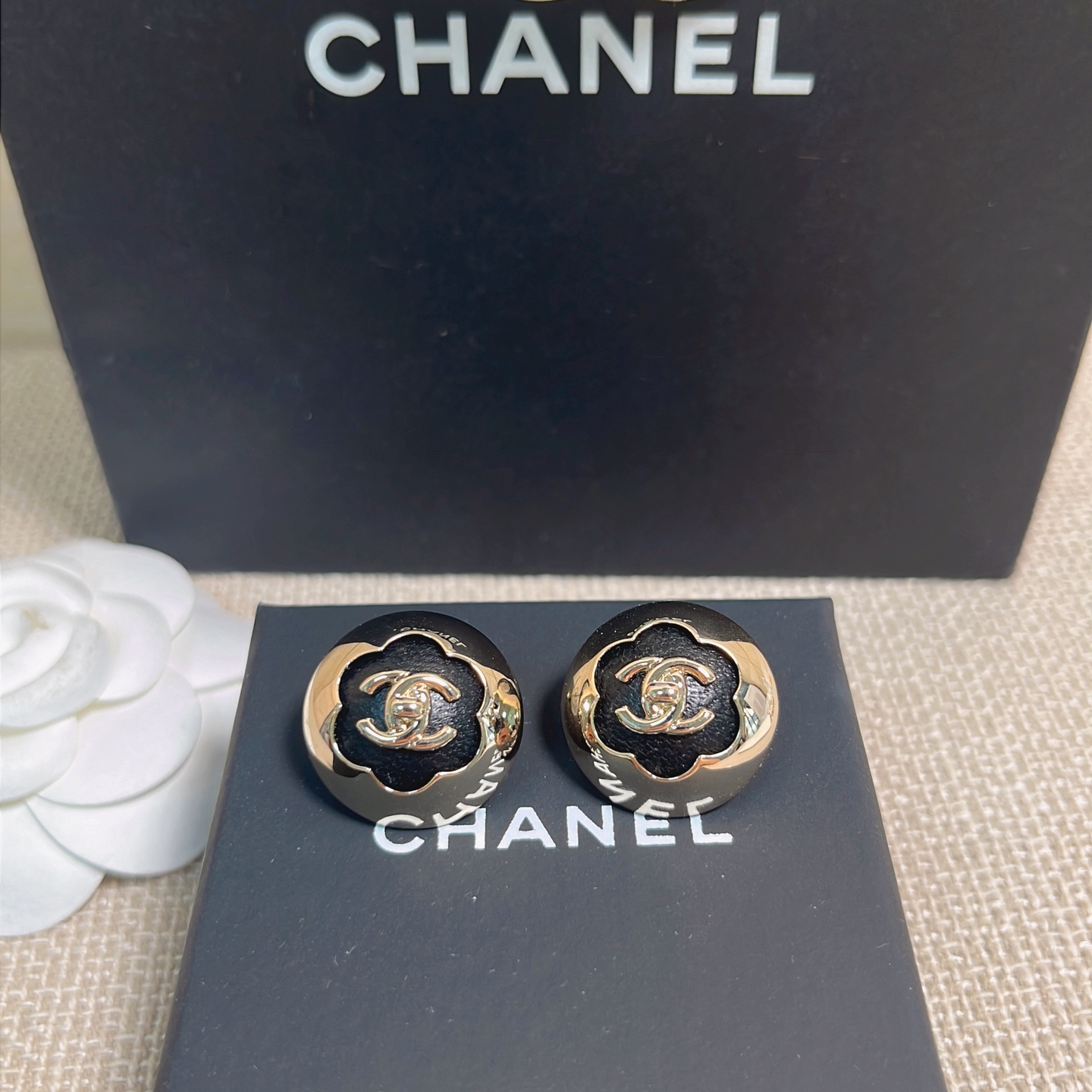 、2025早秋新品 Chanel 25a黑皮茶花半球耳釘 精品 專屬設計
