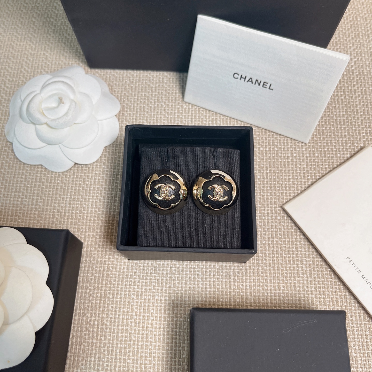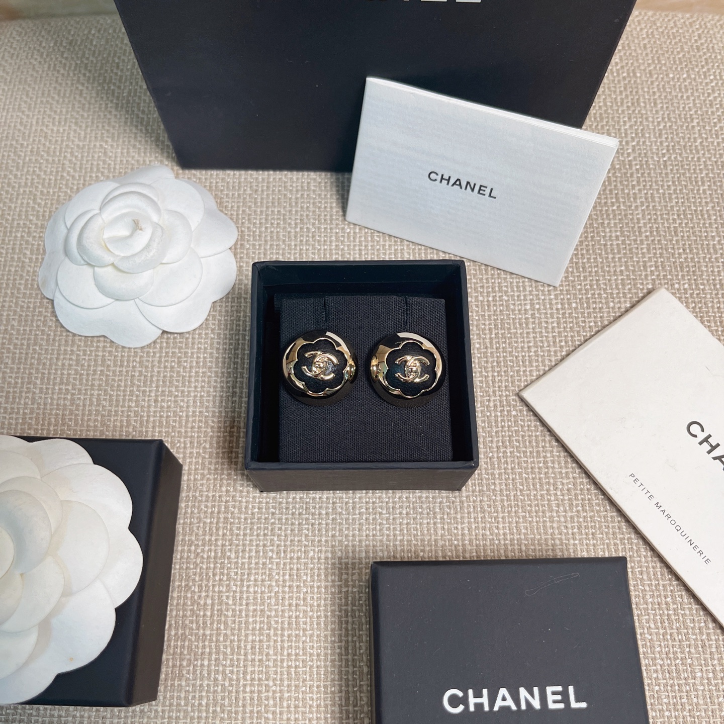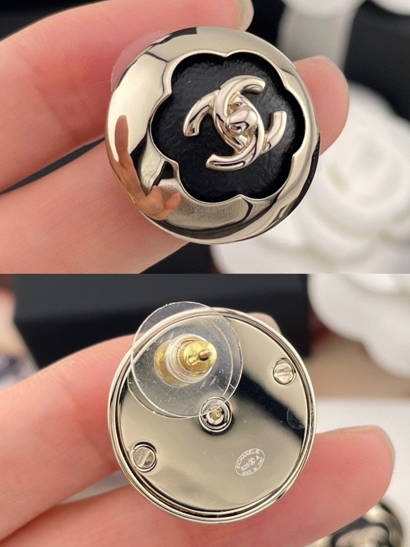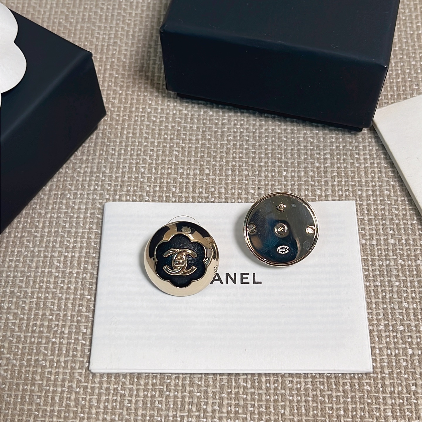 、2025早秋新品 Chanel 25a黑皮茶花半球耳釘 精品 專屬設計