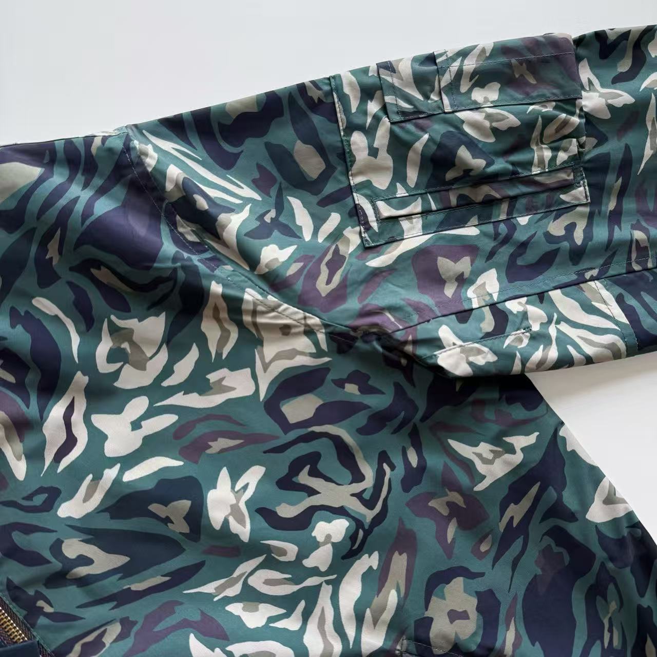 雙面定位印花更是工藝殺手級:半成品就得前後片完美對花,排版剪裁一氣呵成;裁片全程紅外線雷射定位+人工手工微調,全身對格對紋零死角,耗損率高到讓人頭皮發麻,但成品一上身,視覺衝擊力滿分。拉鍊、豬鼻扣、五金全數開模訂製,厚實有質感,細節不輸專櫃。這件外套的奢侈品特質令人驚艷,正是精品設計的體現。