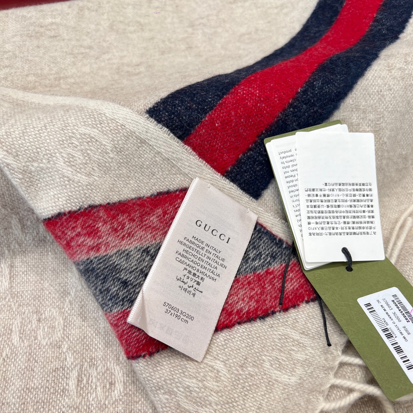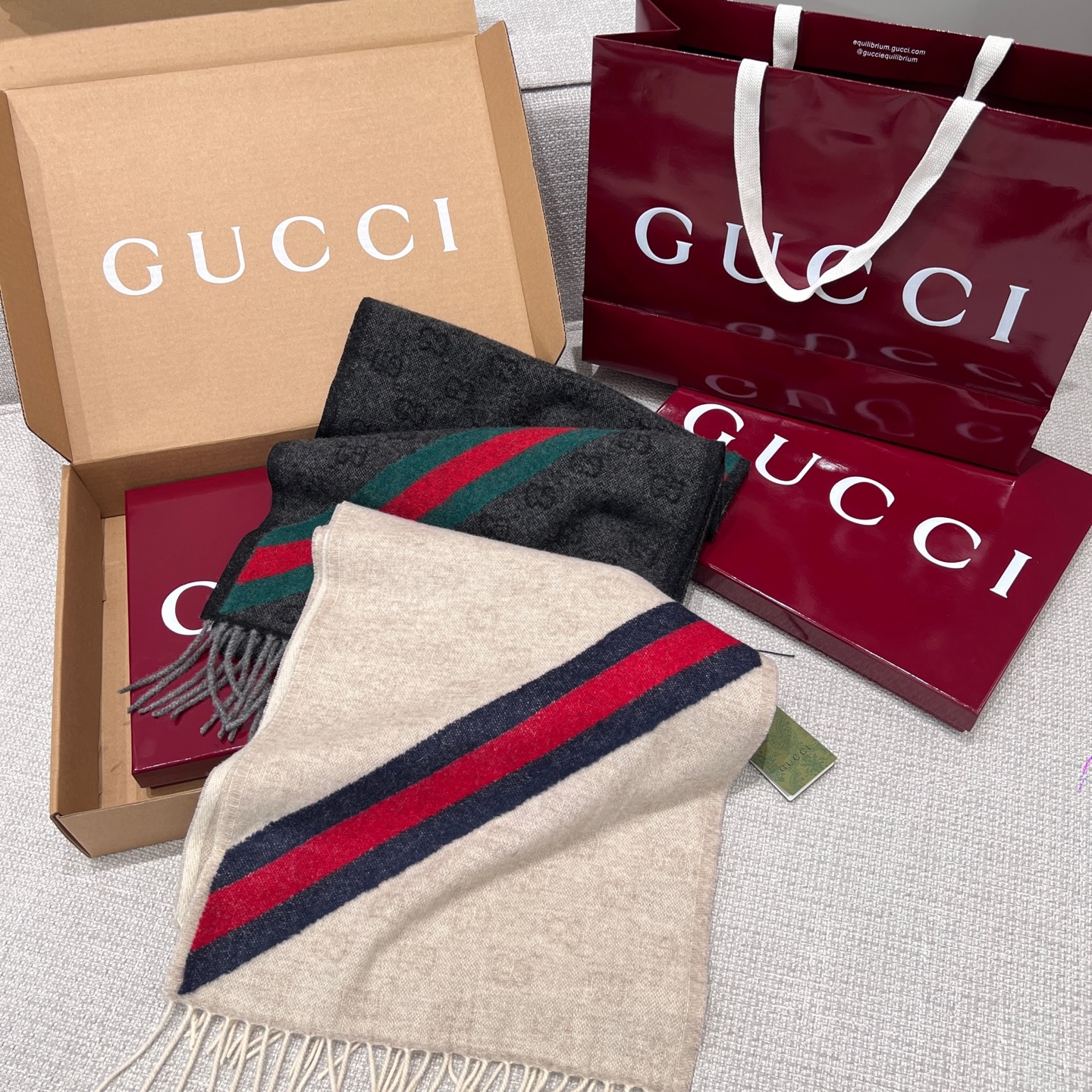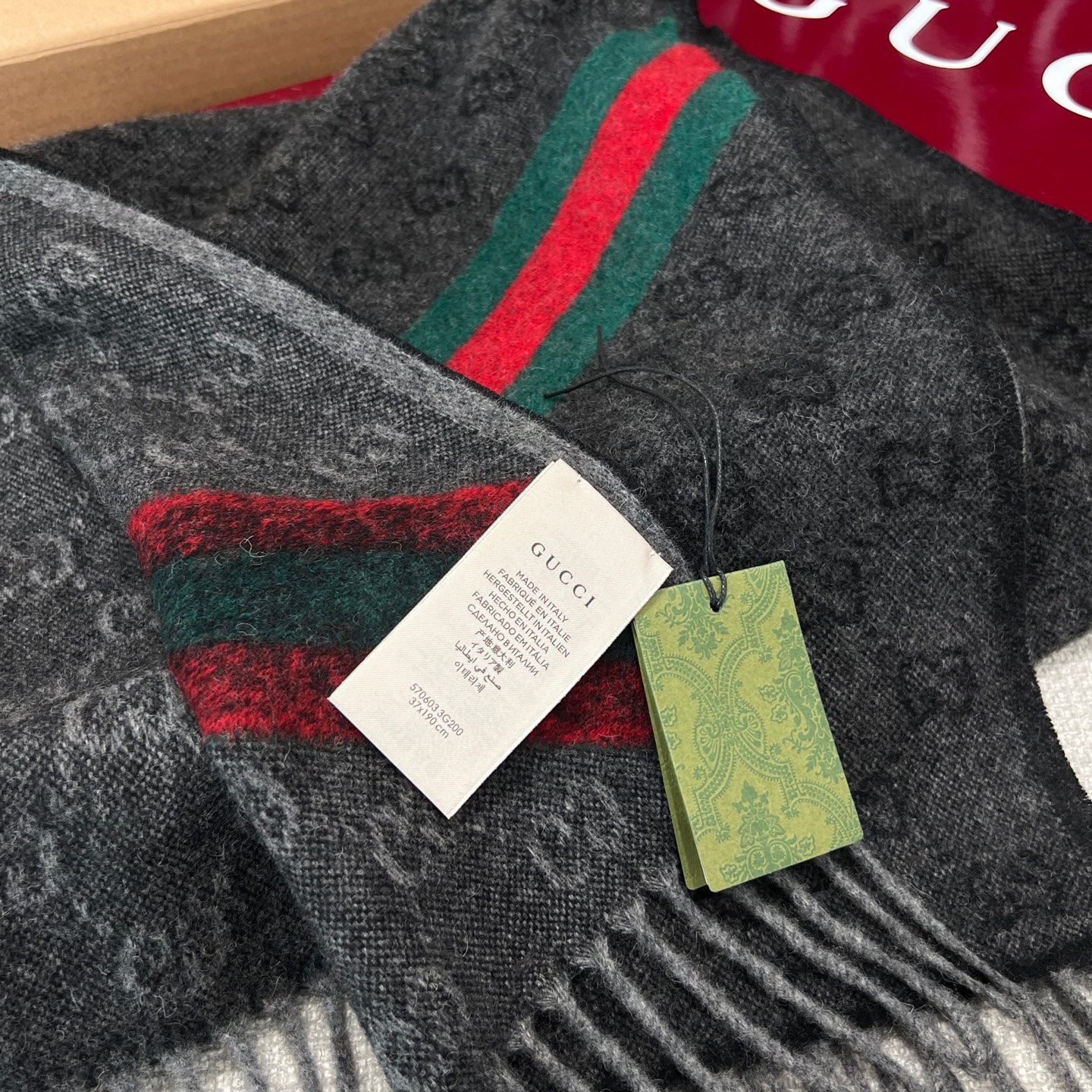 最吸睛的細節在於圍巾一側的紅綠織帶裝飾,低調中藏著滿滿品牌靈魂,搭配任何外套都能瞬間提升造型層次。不論是日常通勤還是出國旅行,都能輕鬆駕馭。