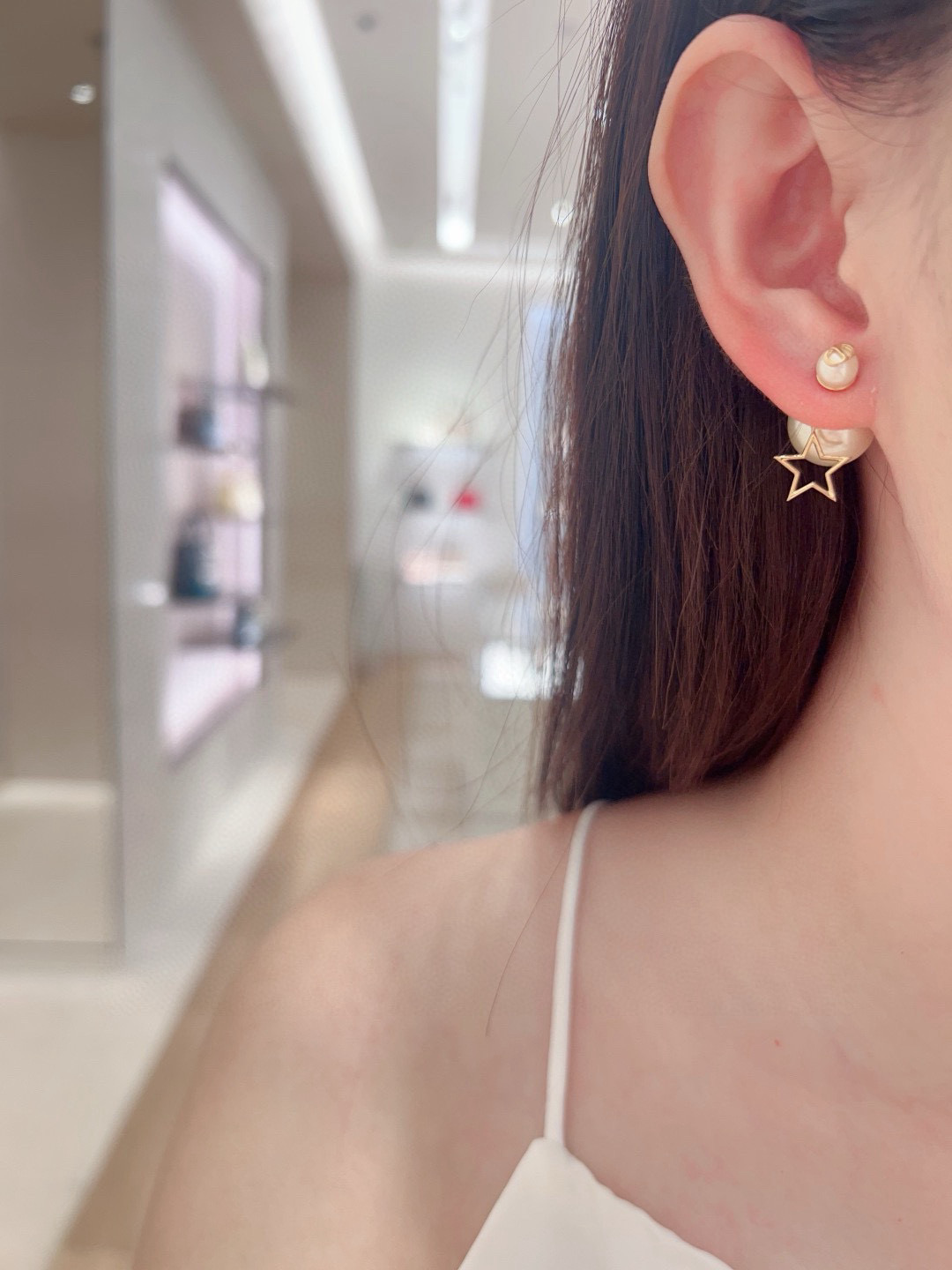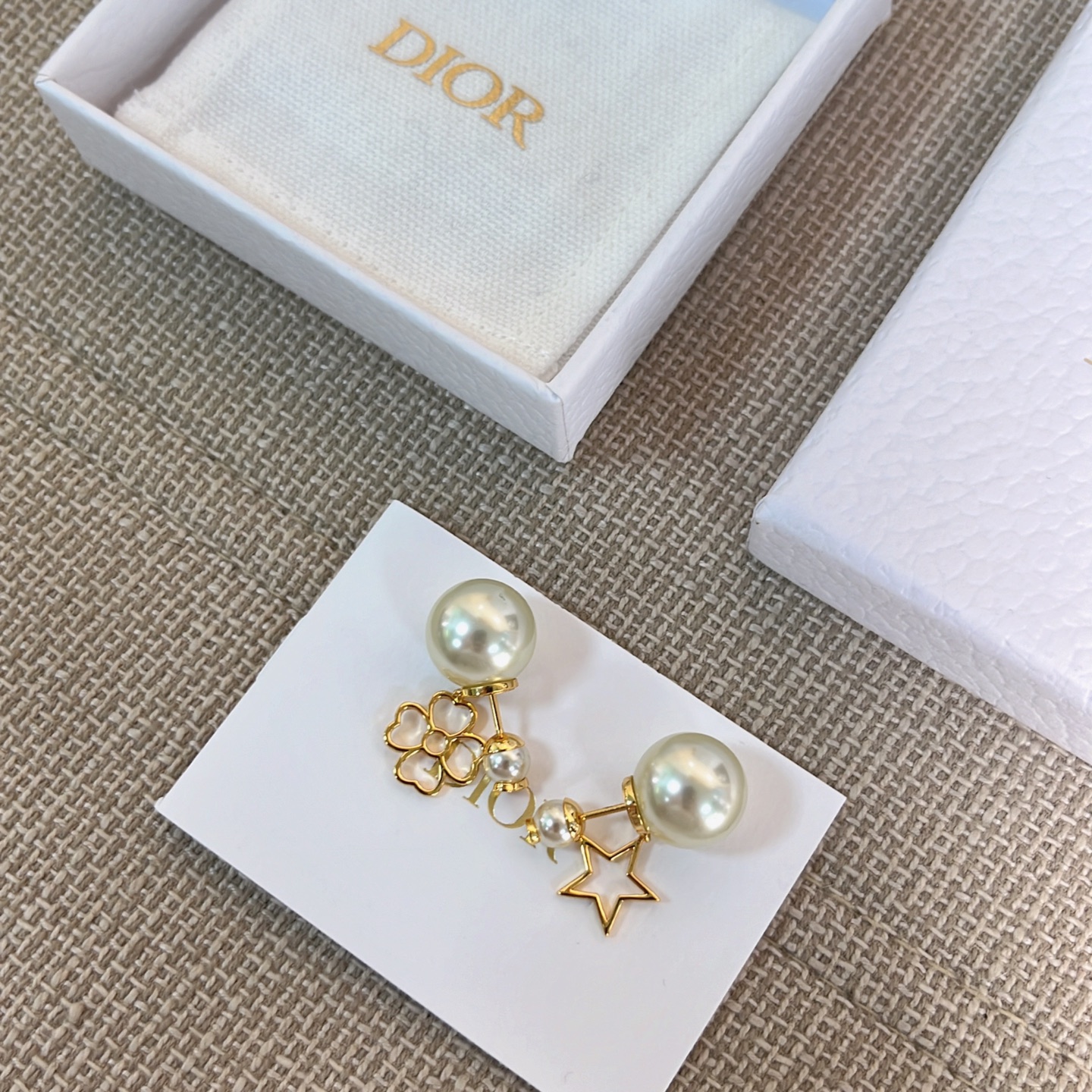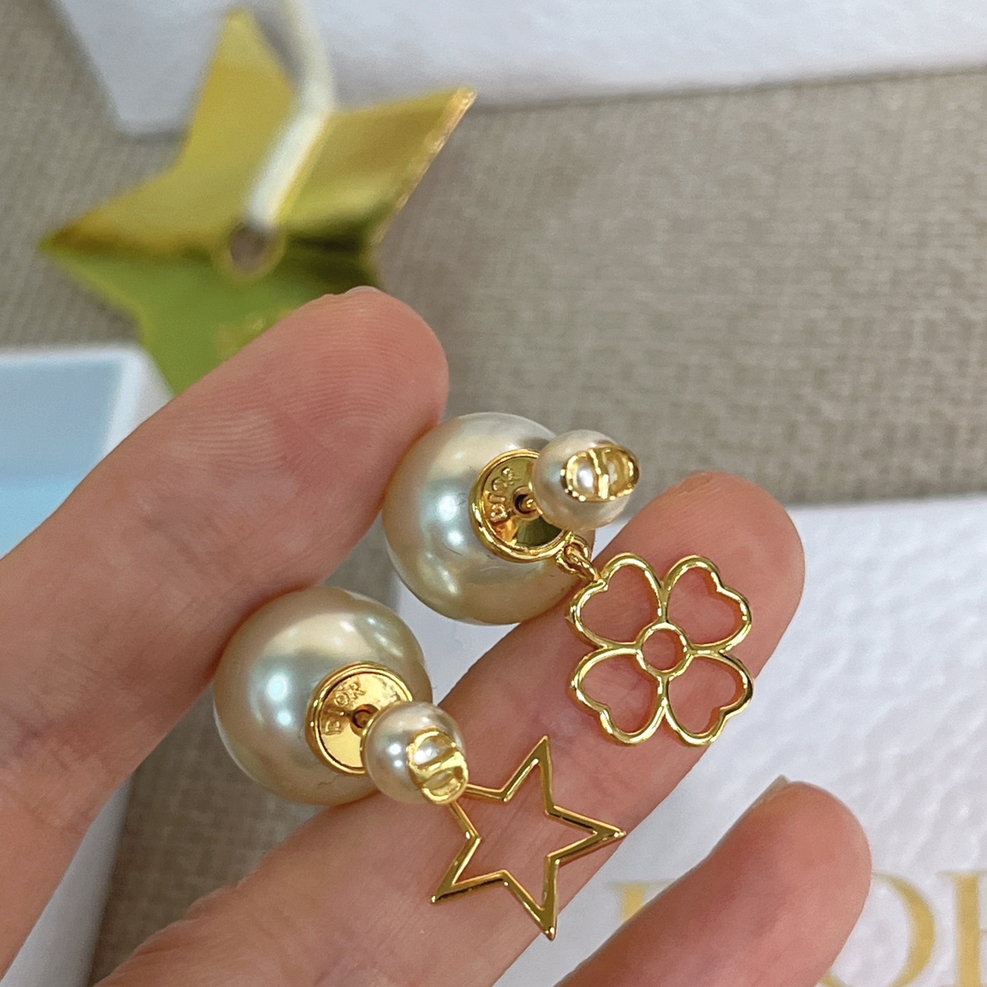 2025秋冬新品 Dior 鏤空星草雙珠耳環