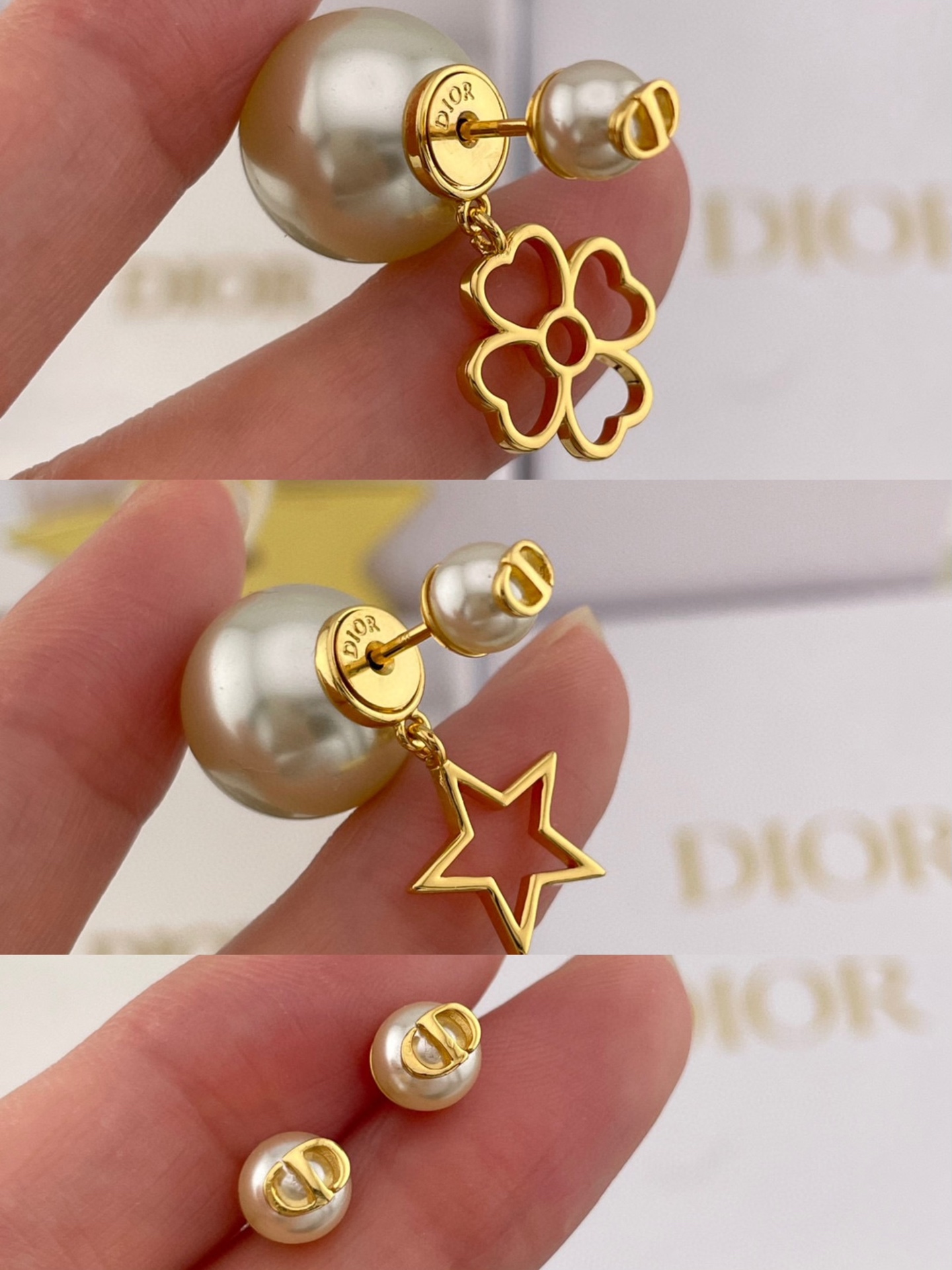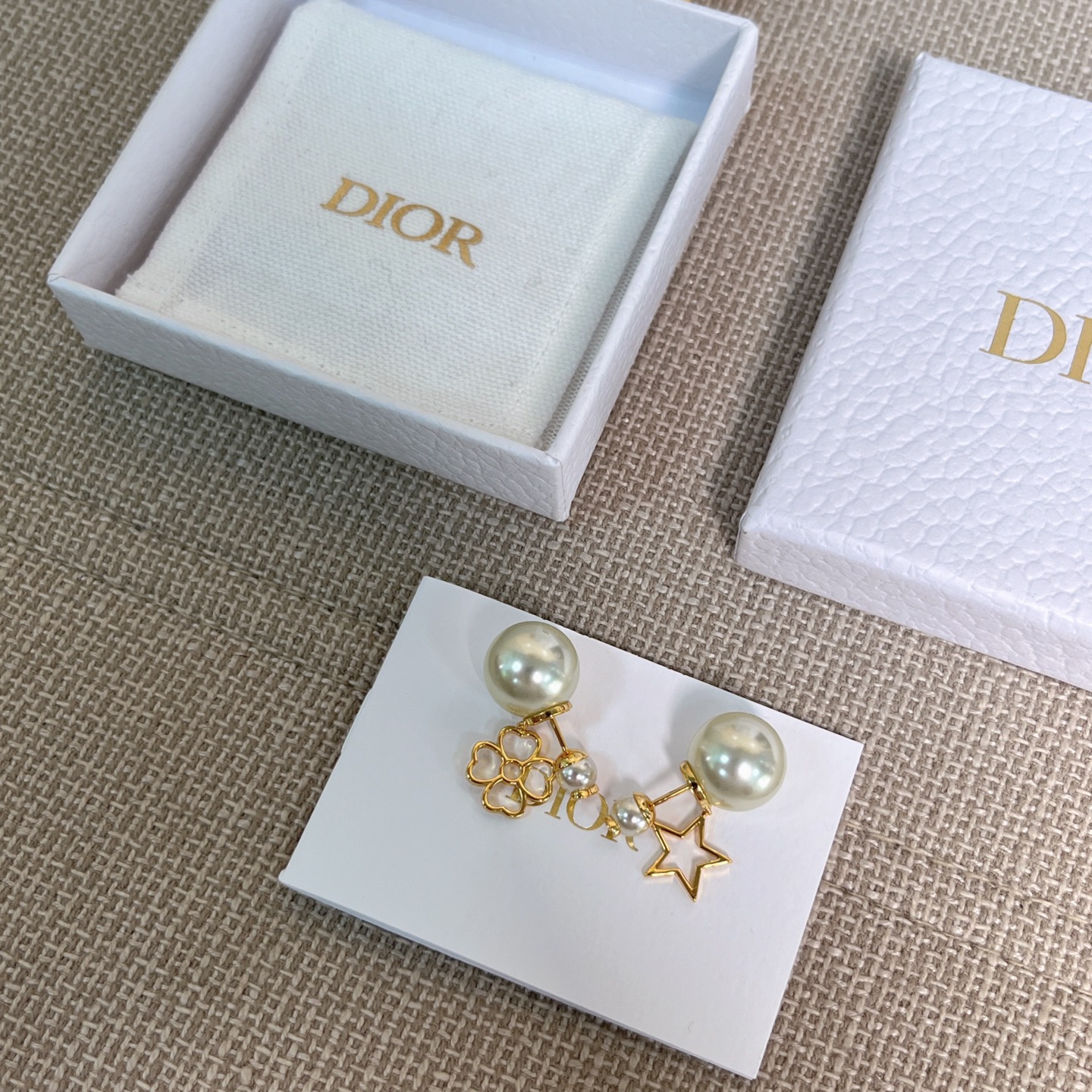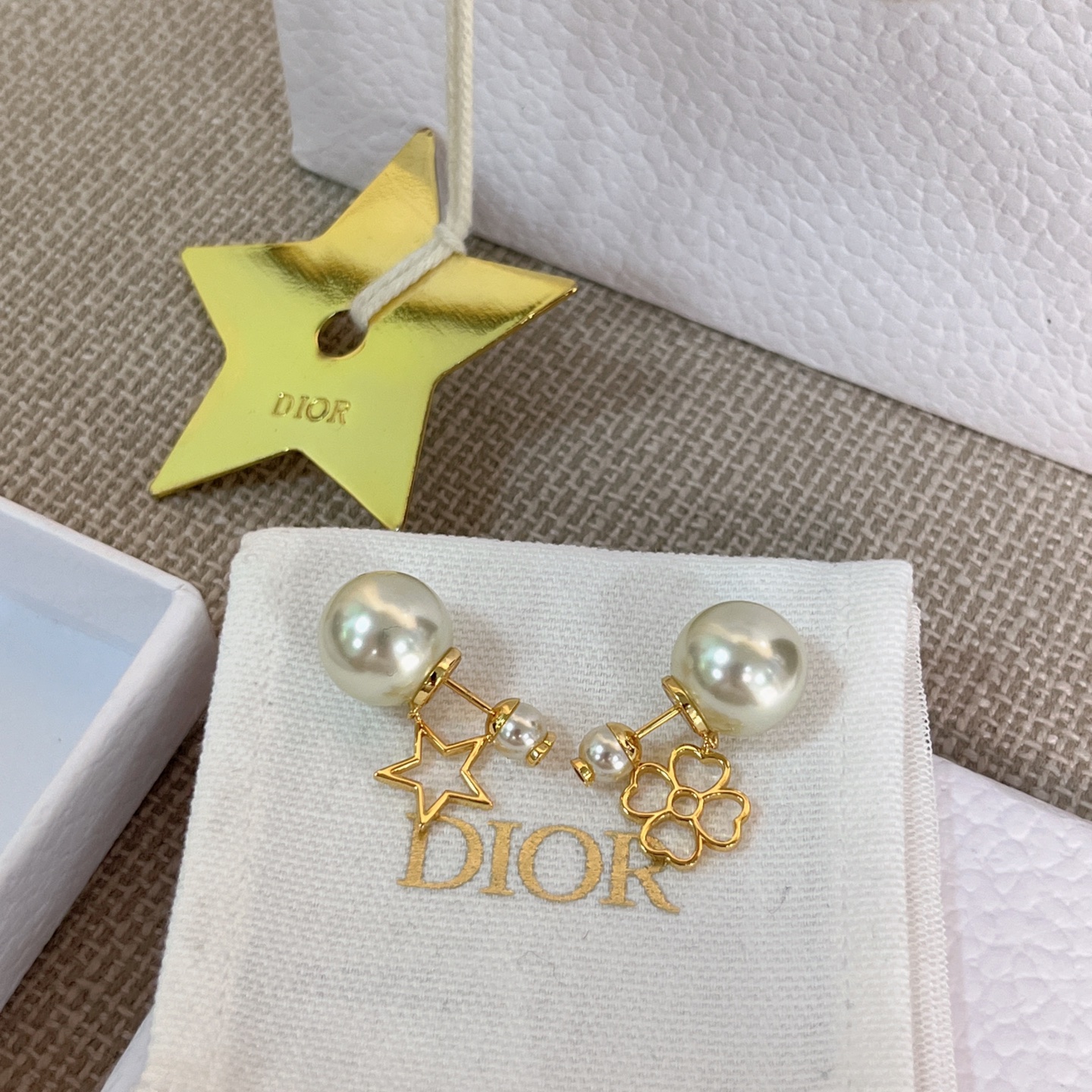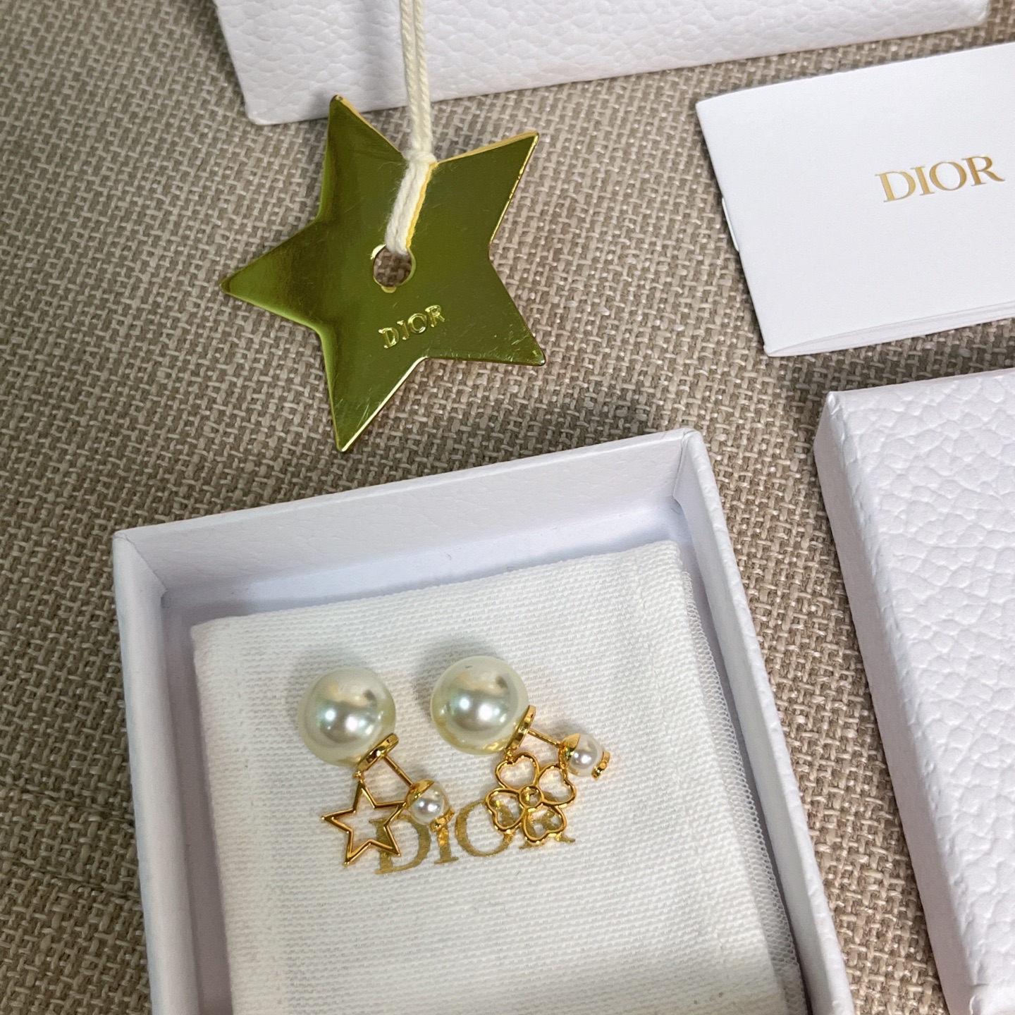 2025秋冬新品 Dior 鏤空星草雙珠耳環