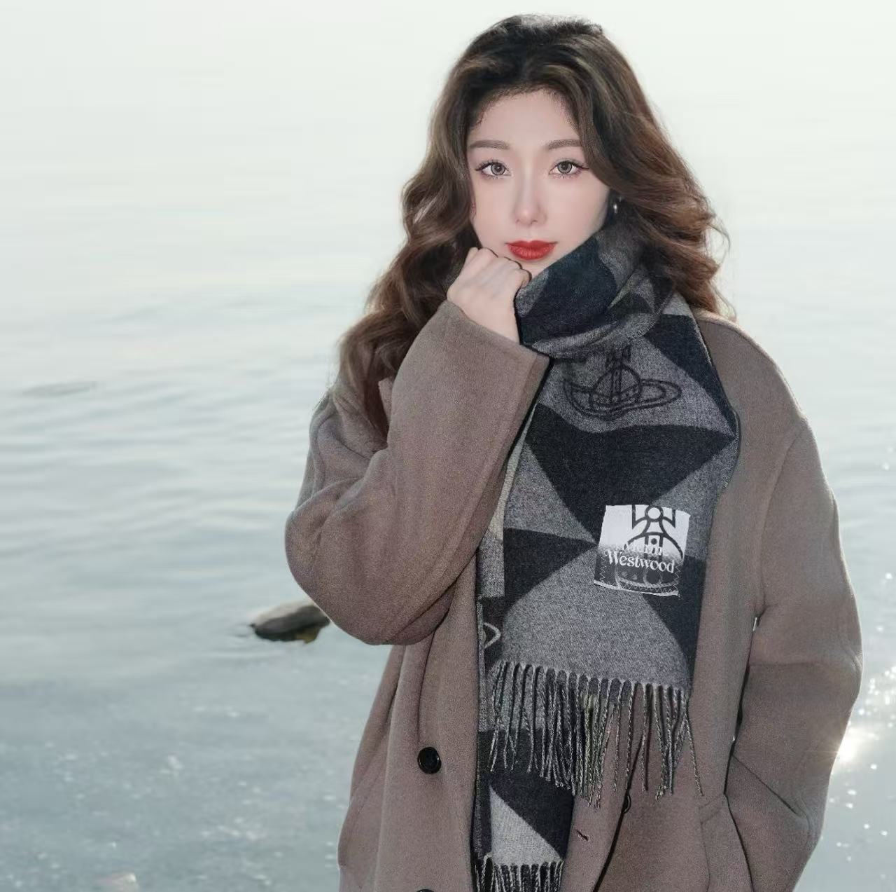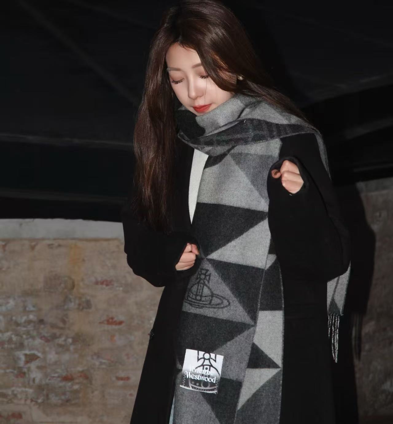 社團重磅福利款-Vivienne Westwood 土星logo提花圍巾 精品 高仿