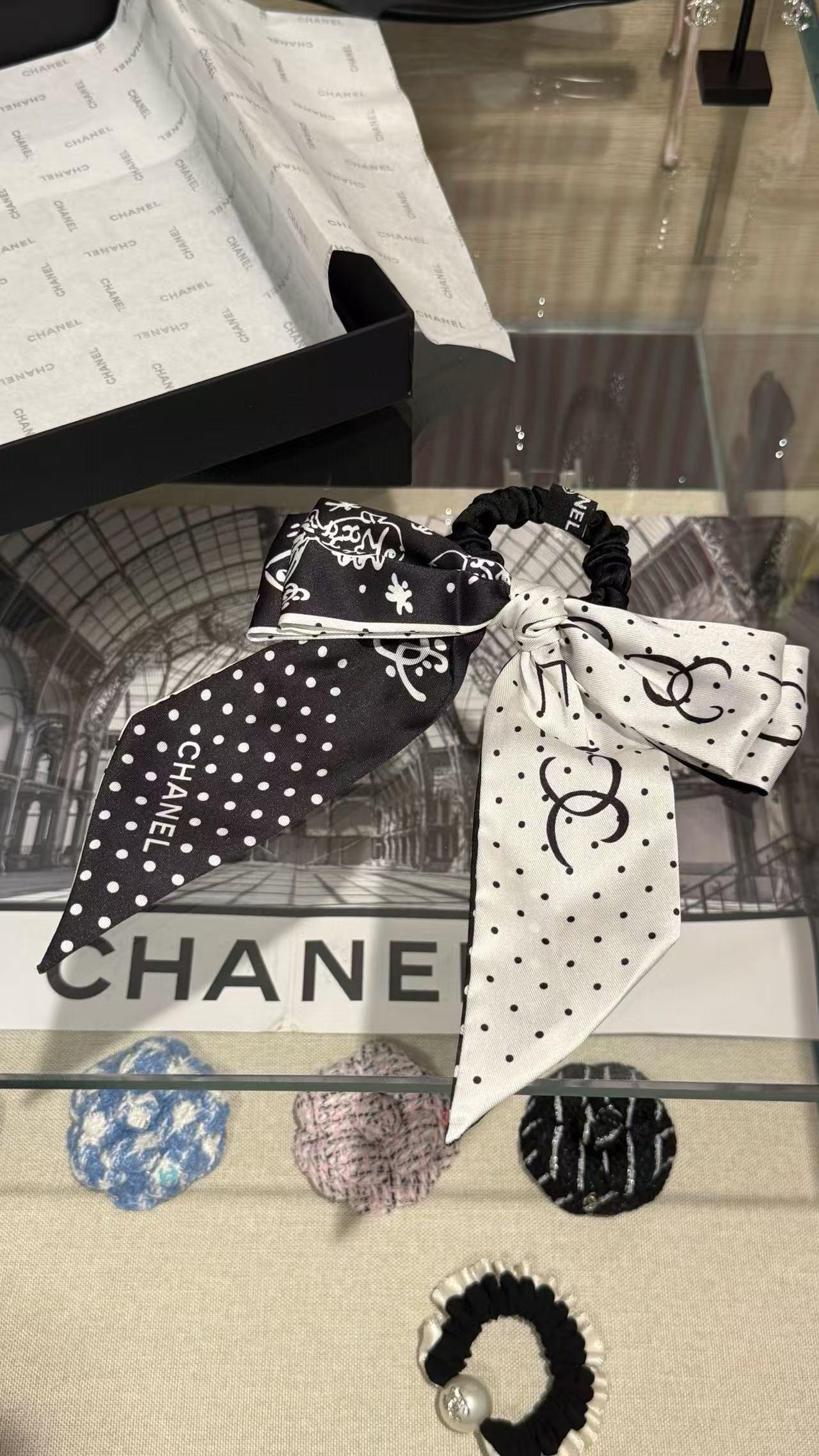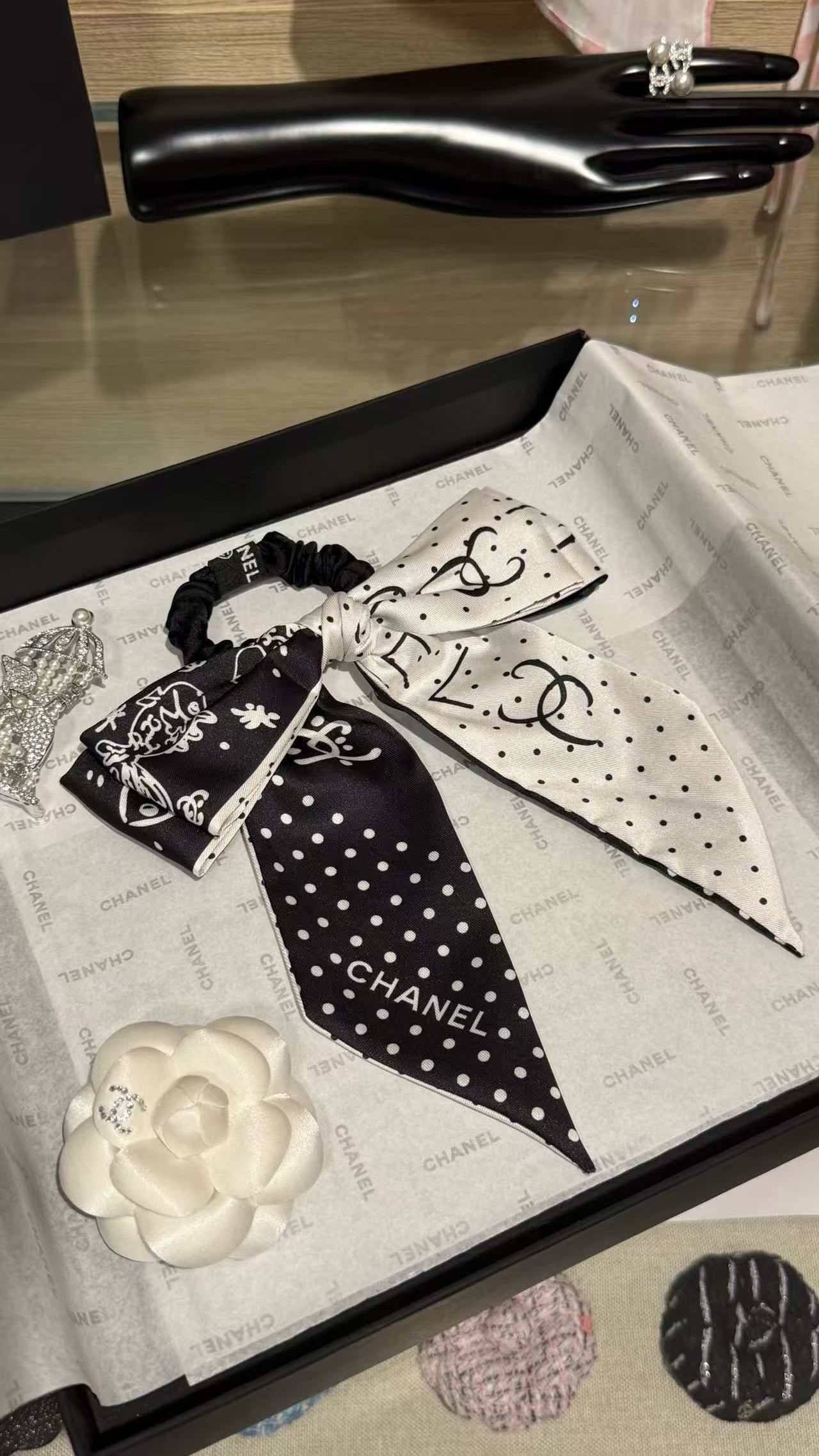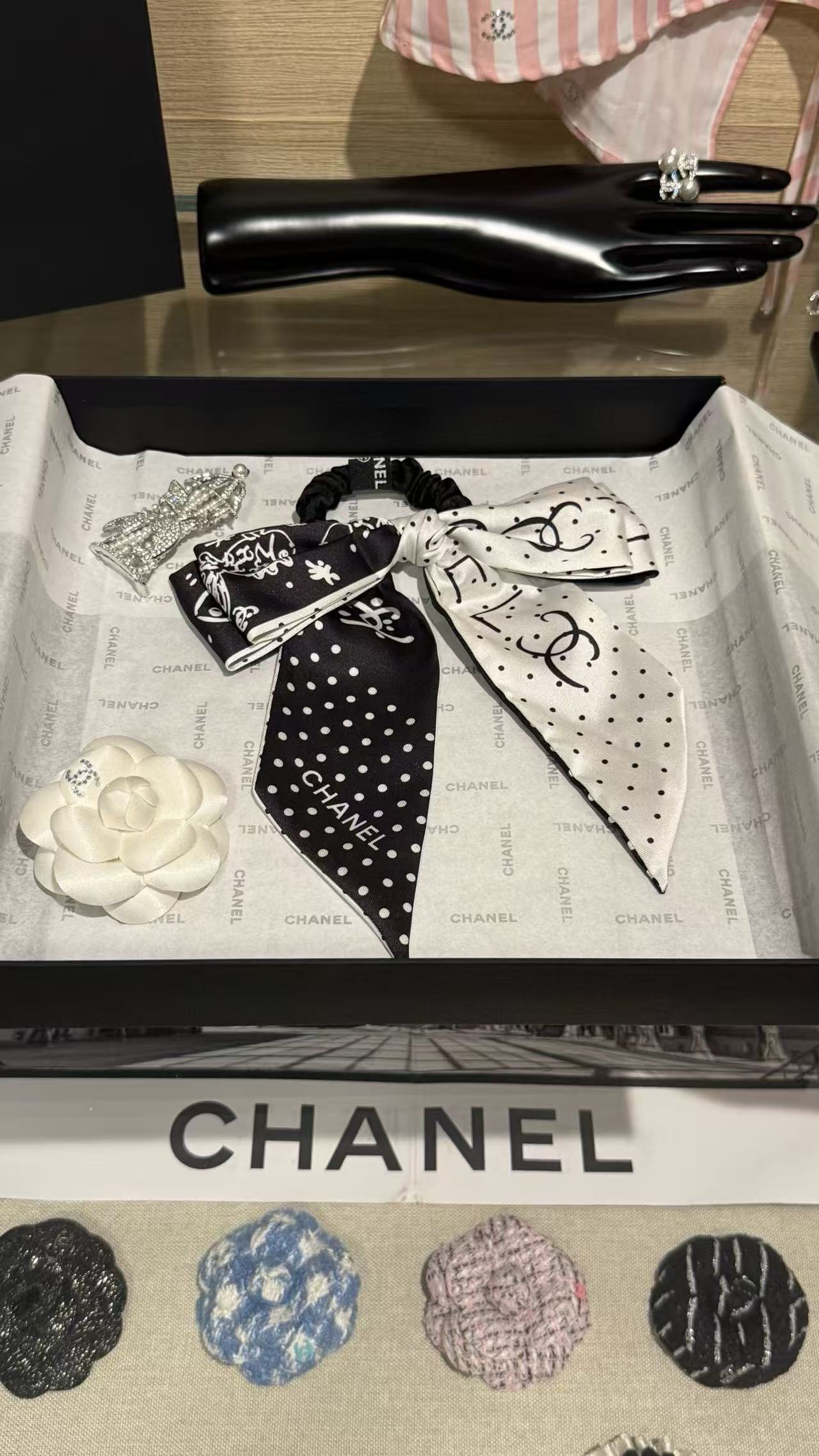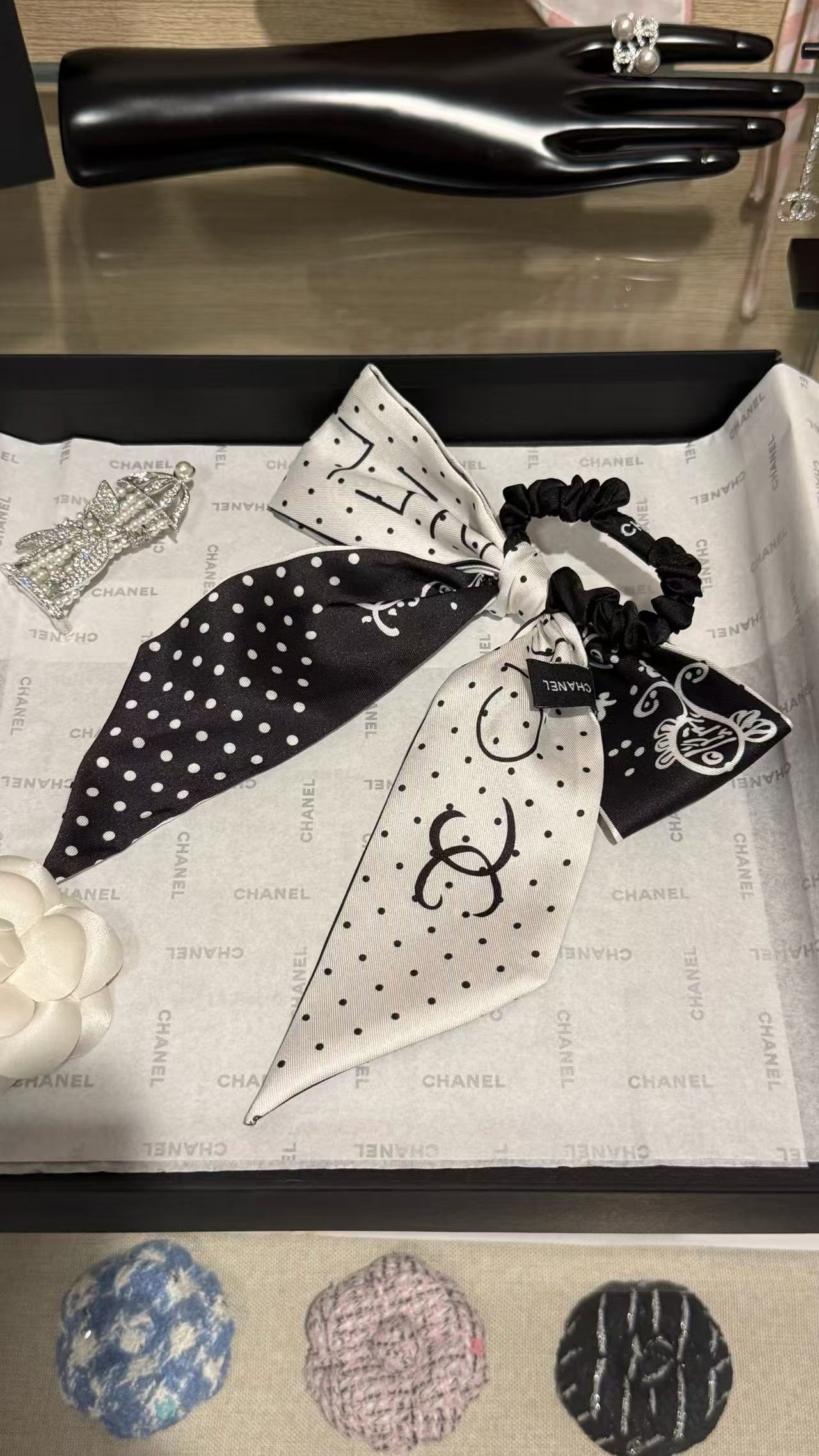 2025早秋 Chanel 黑白波點蝴蝶結髮圈 精品 高仿
