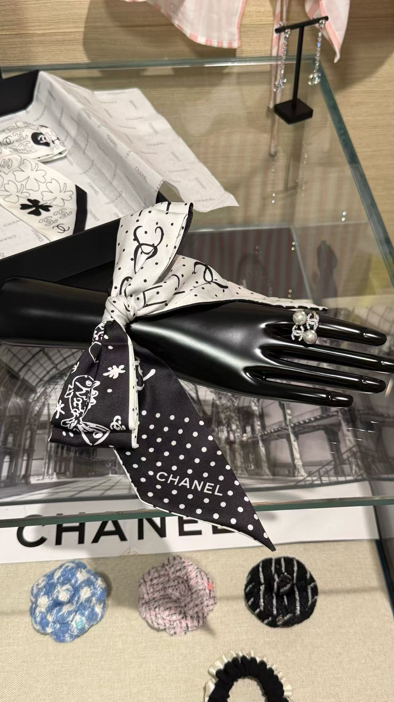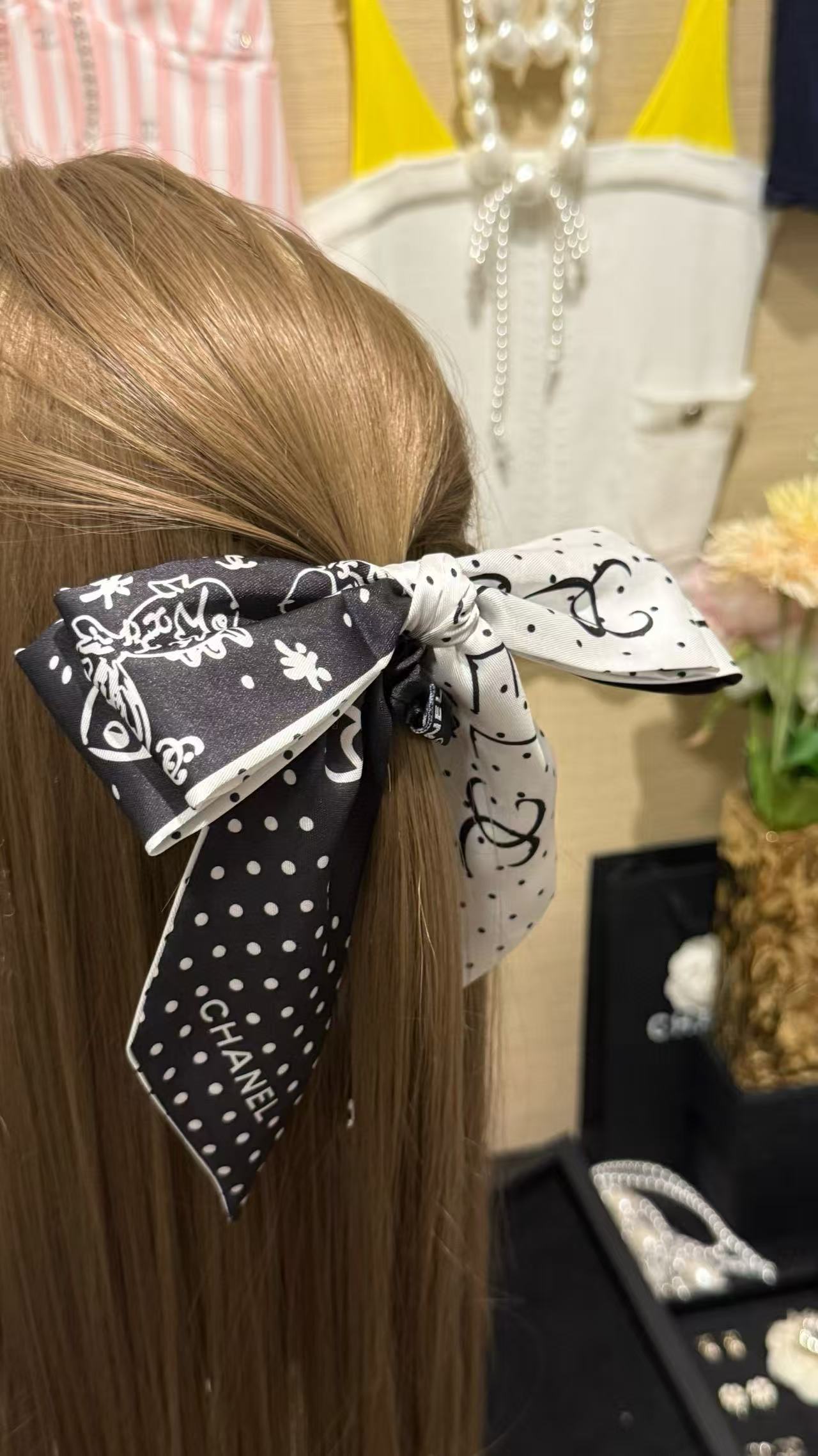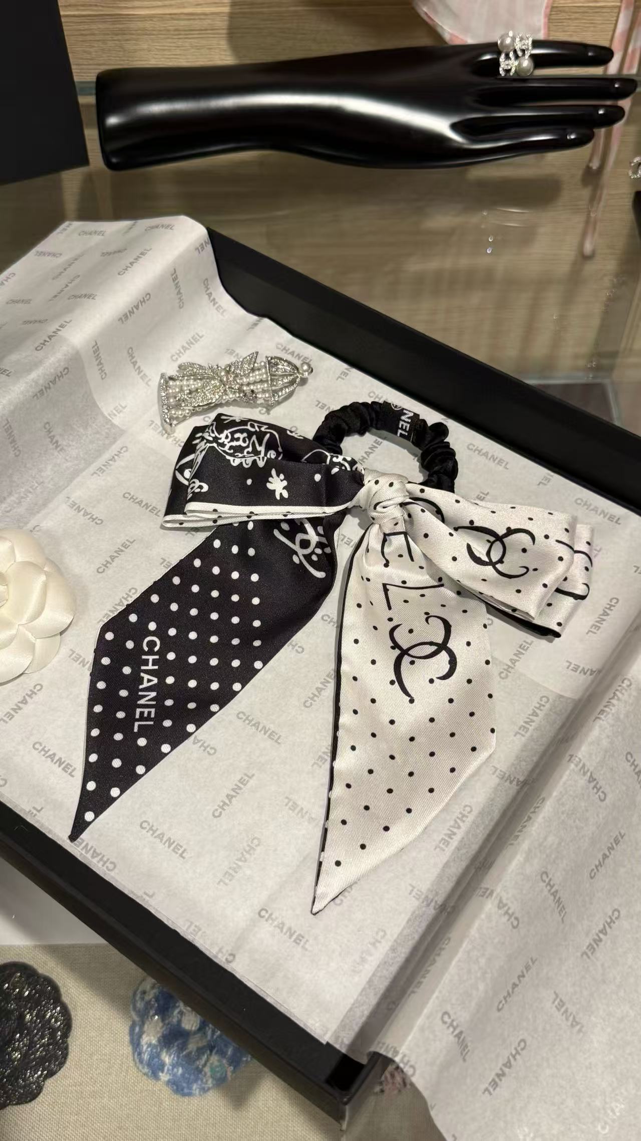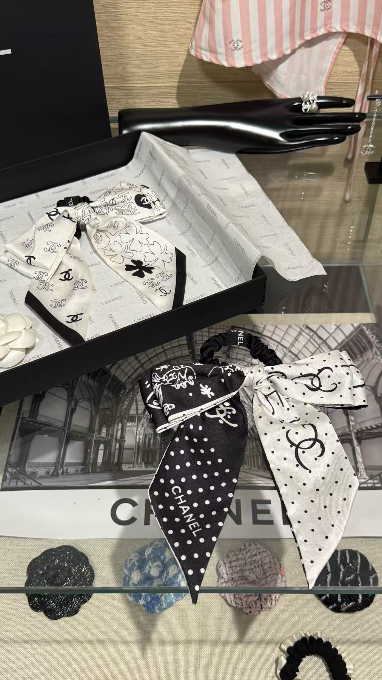 2025早秋 Chanel 黑白波點蝴蝶結髮圈 精品 高仿