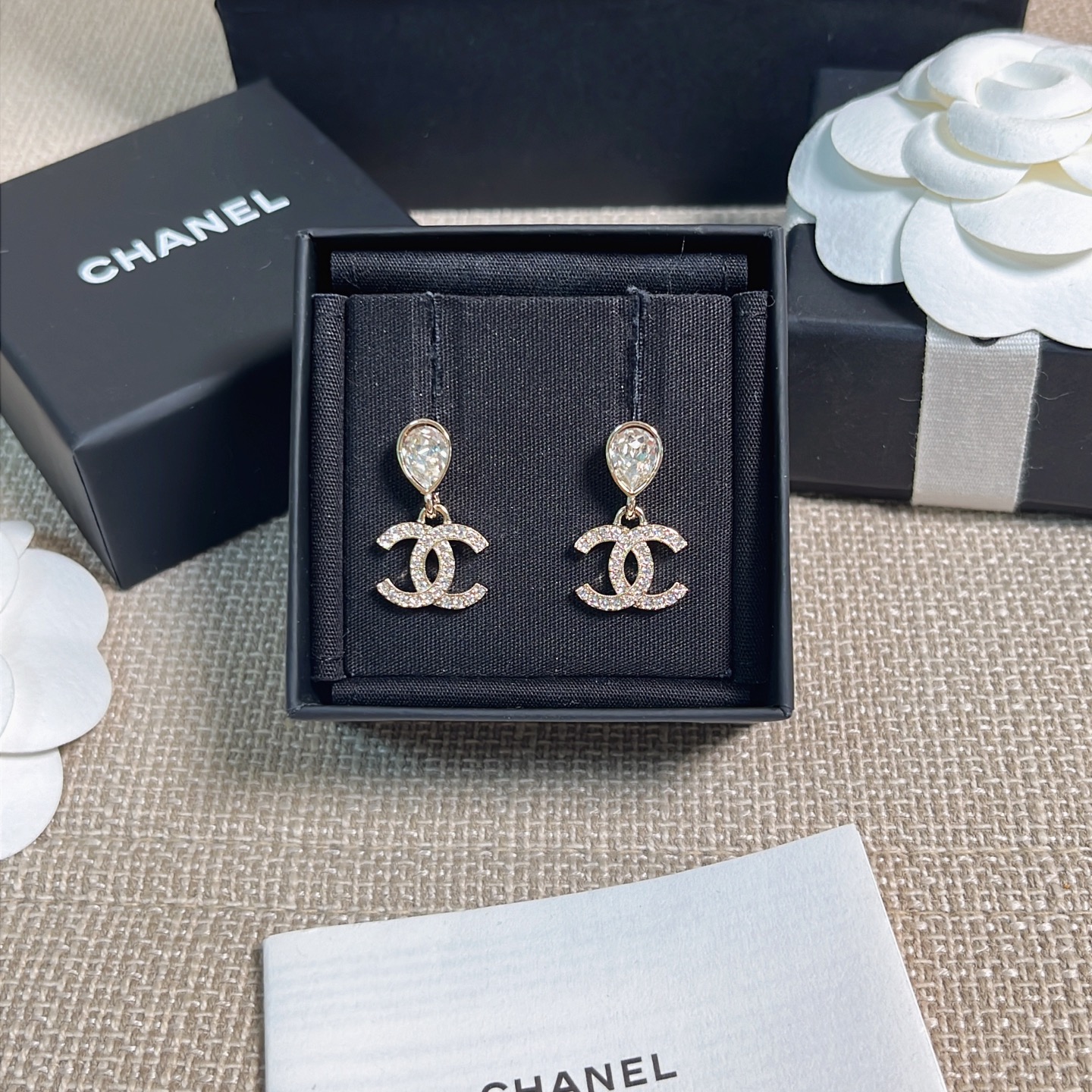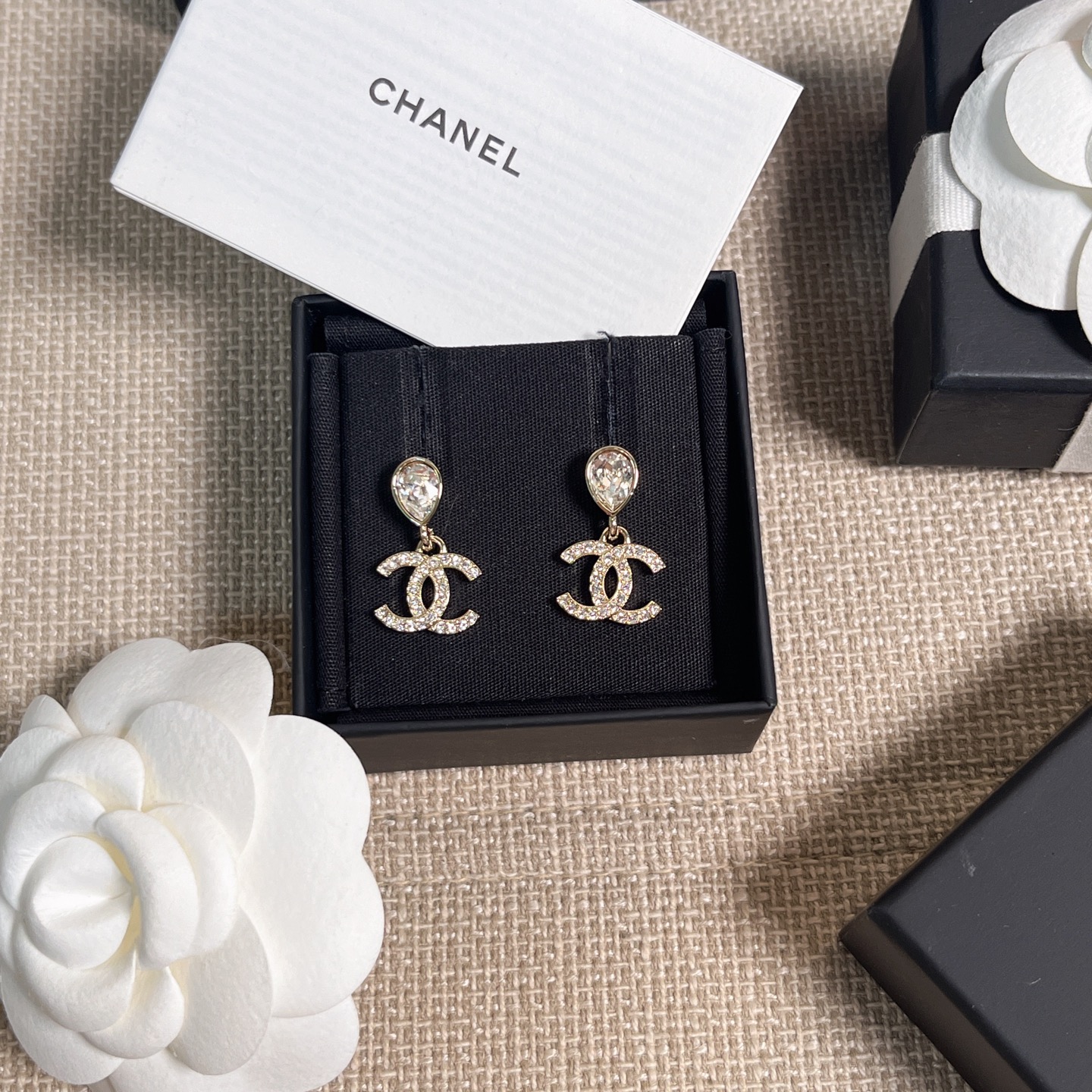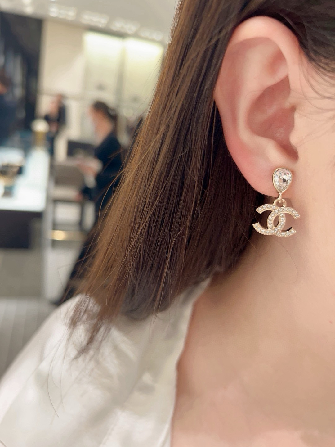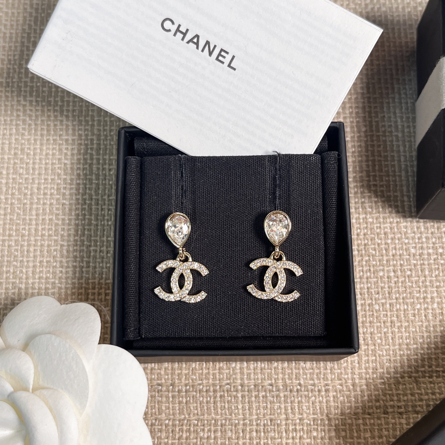 2025秋冬新品 Chanel 水滴鑽吊飾雙C耳環/耳夾 精品 超A