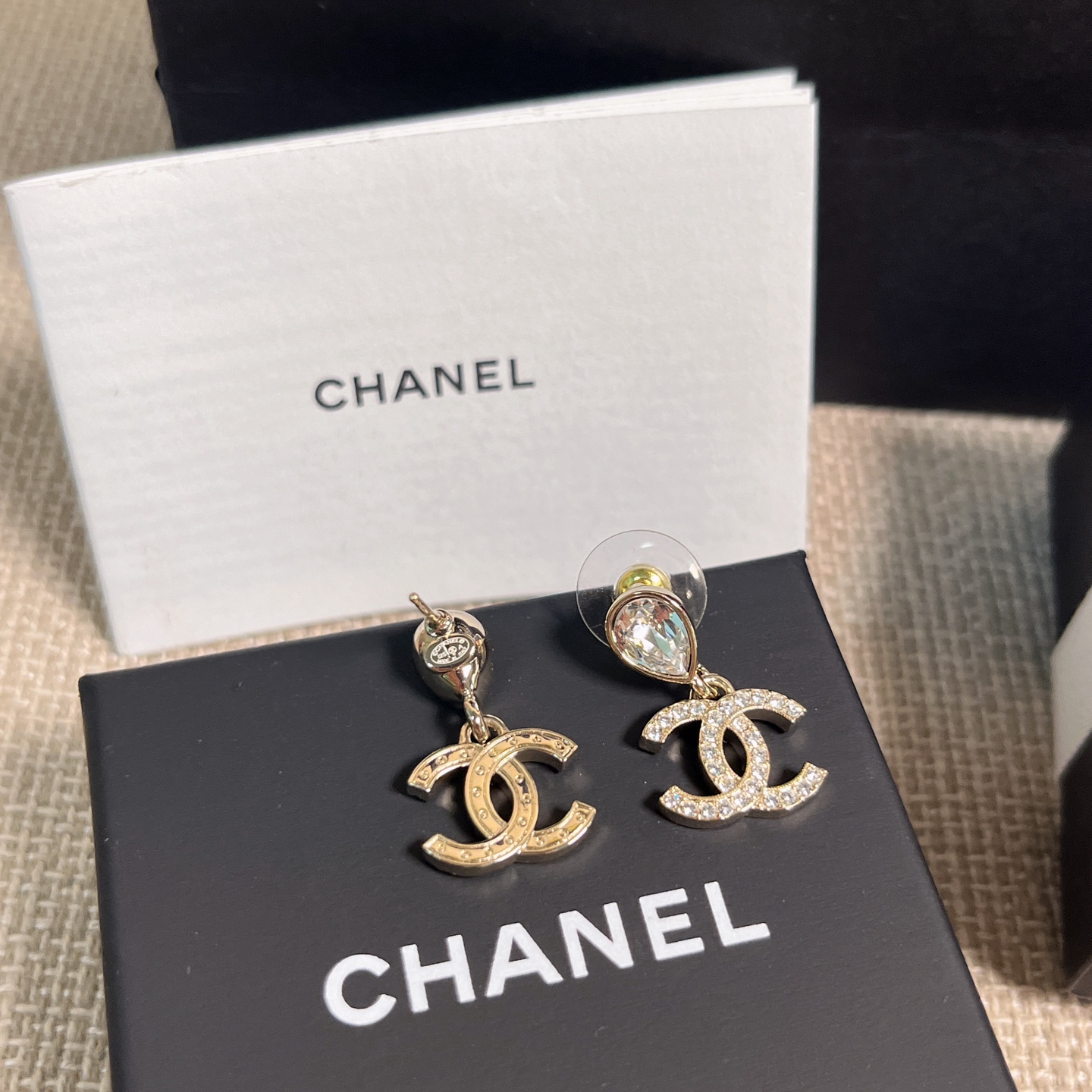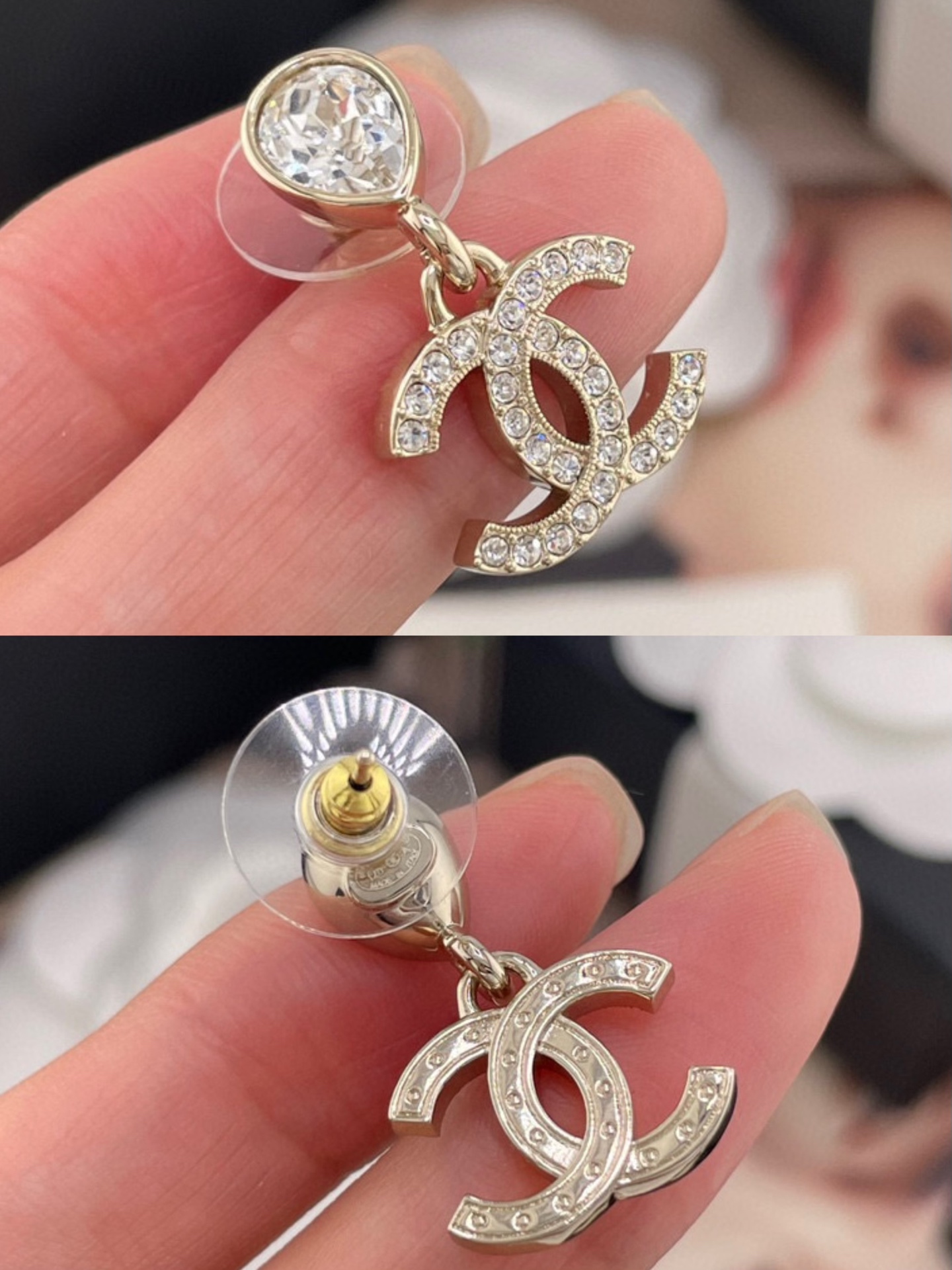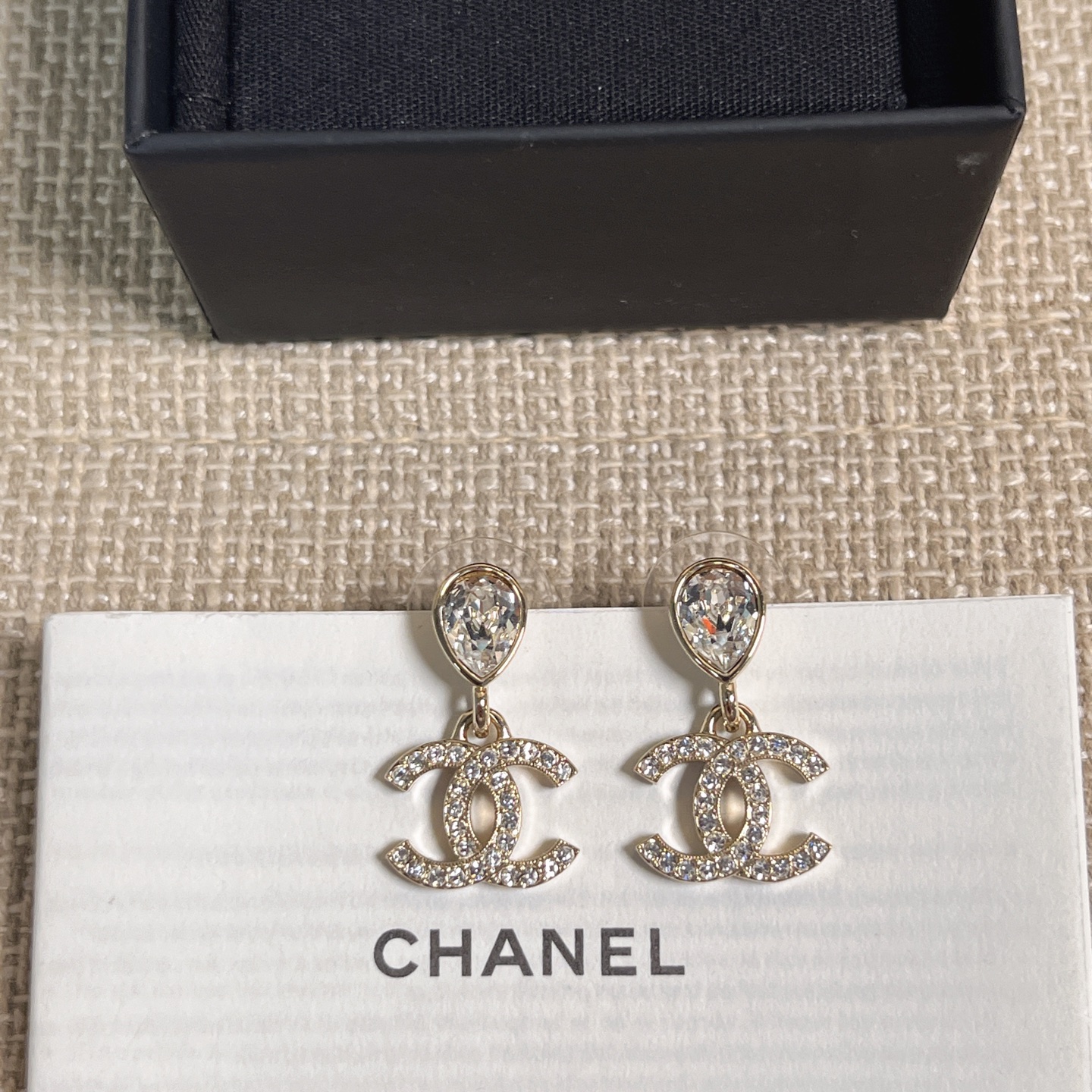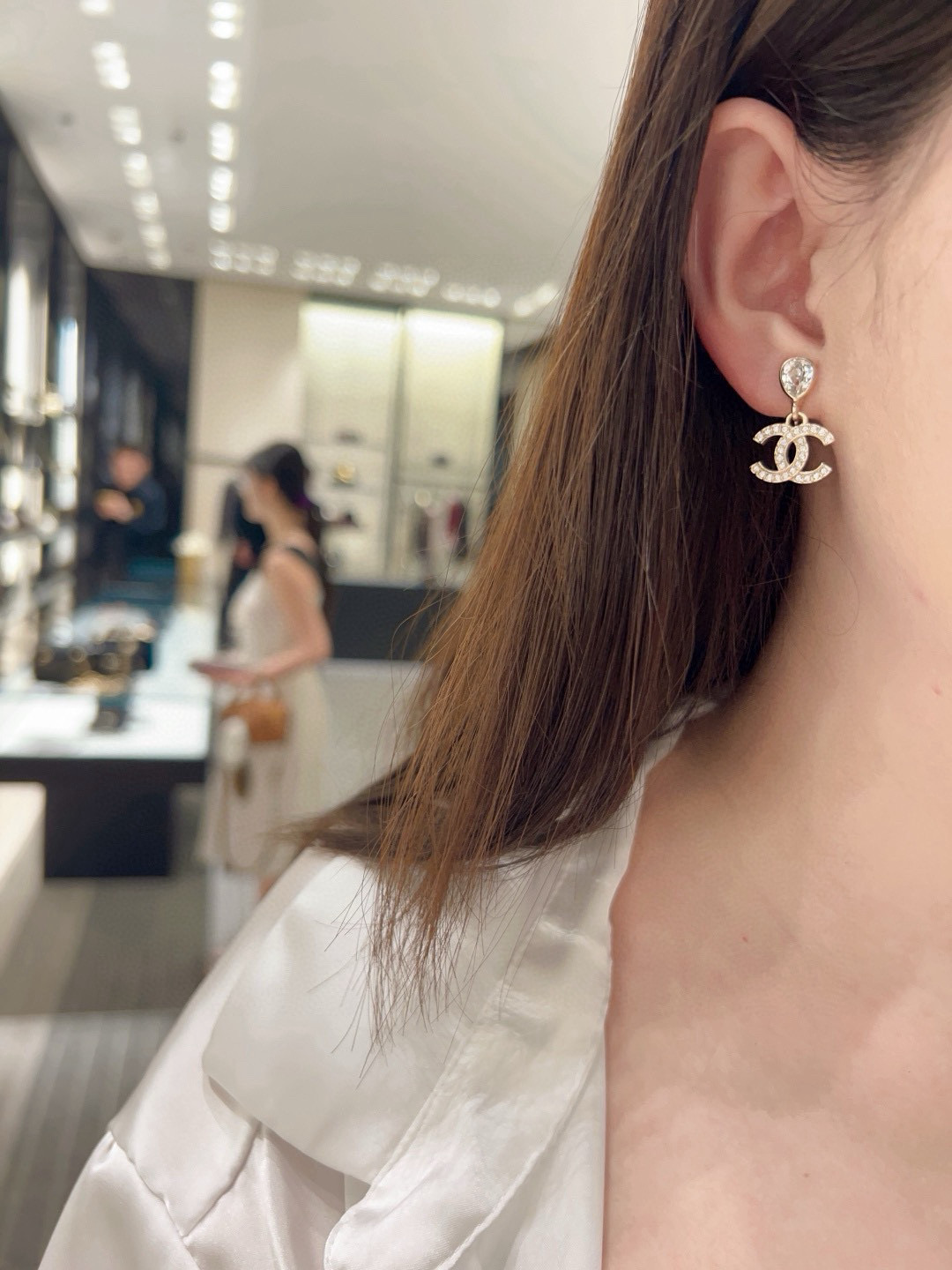 2025秋冬新品 Chanel 水滴鑽吊飾雙C耳環/耳夾 精品 超A