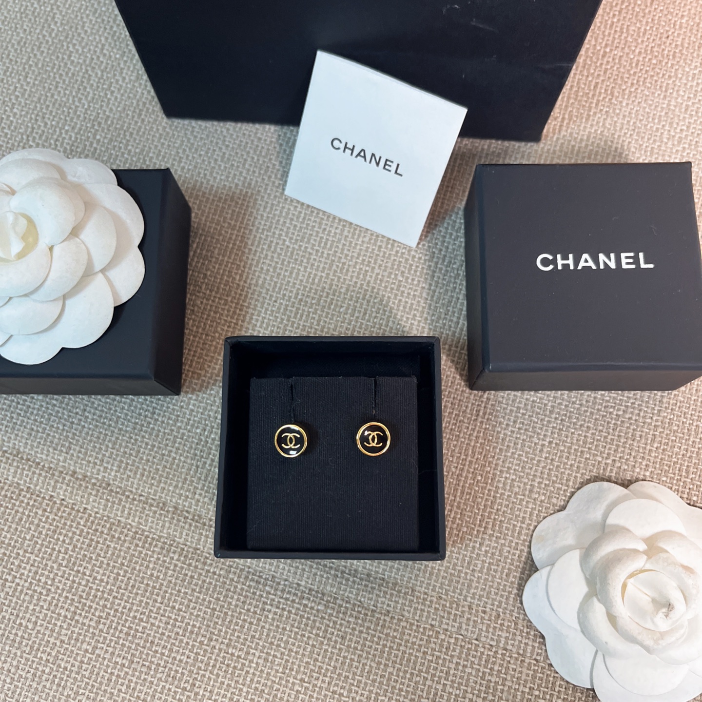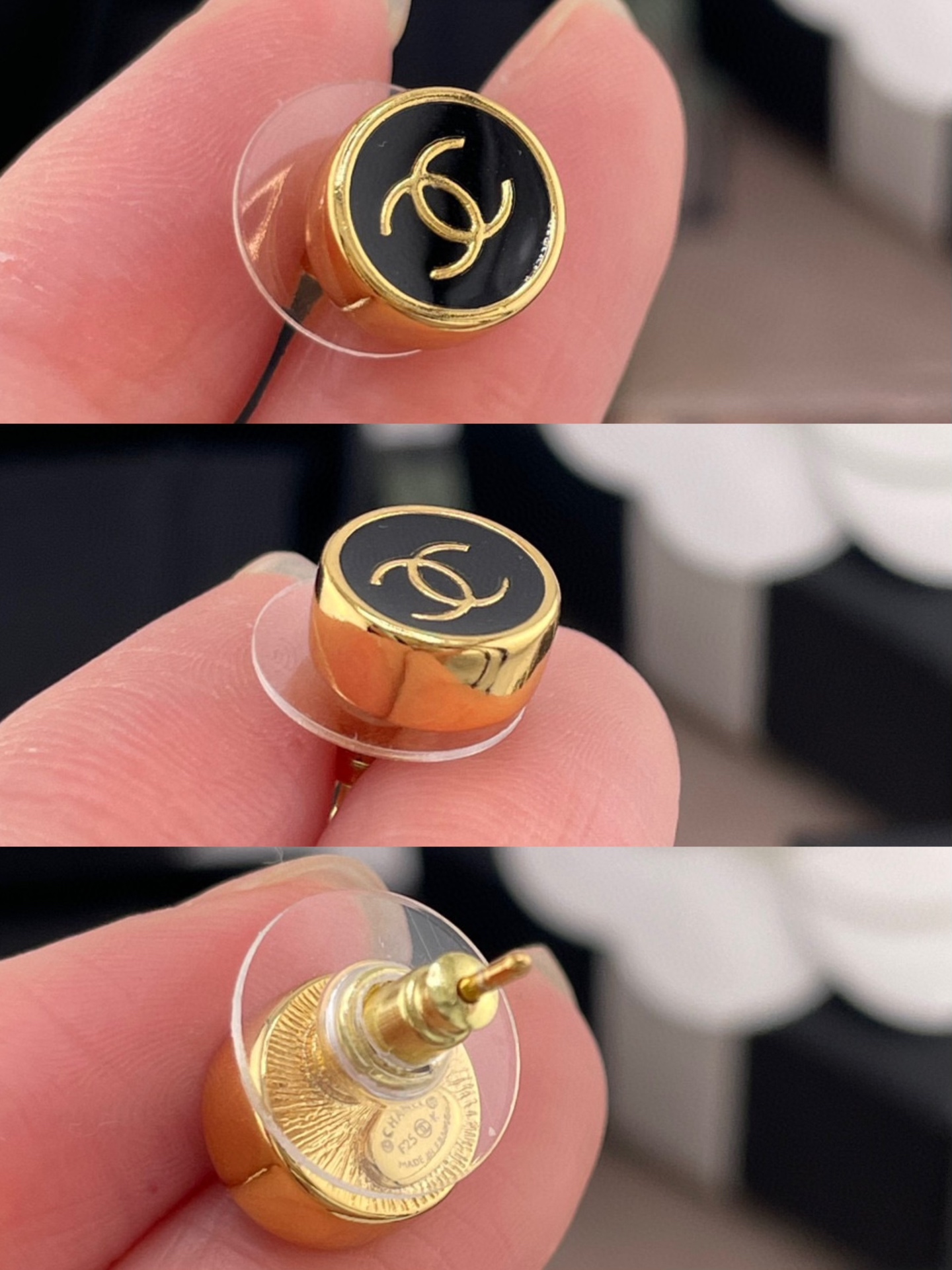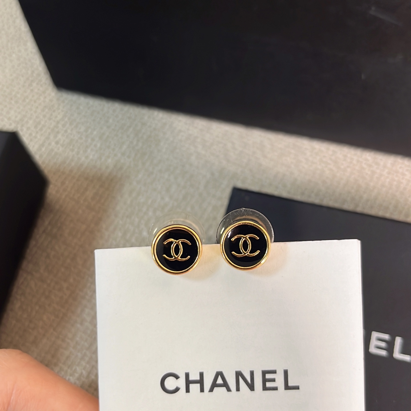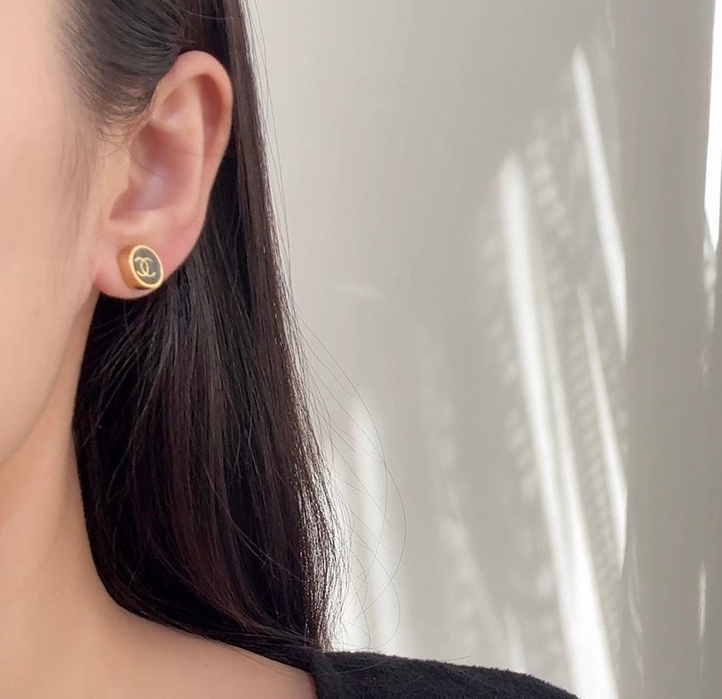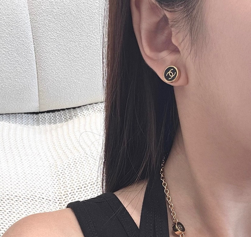 2025秋冬新品 Chanel 金邊小圓黑耳釘 精品 精工