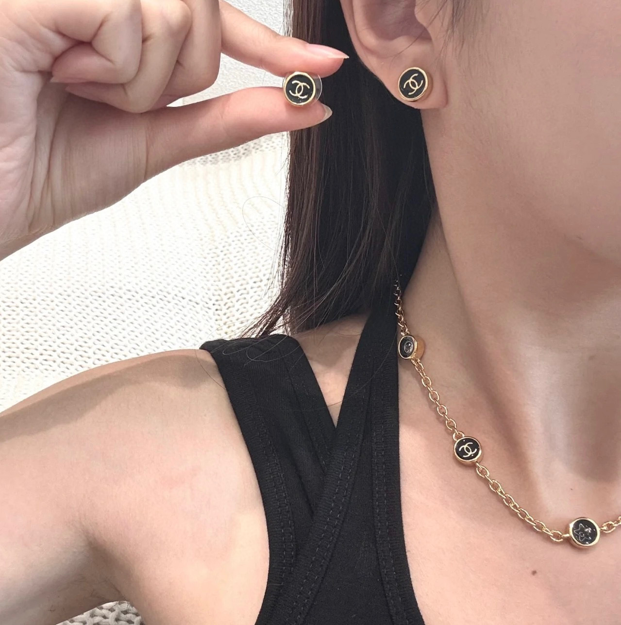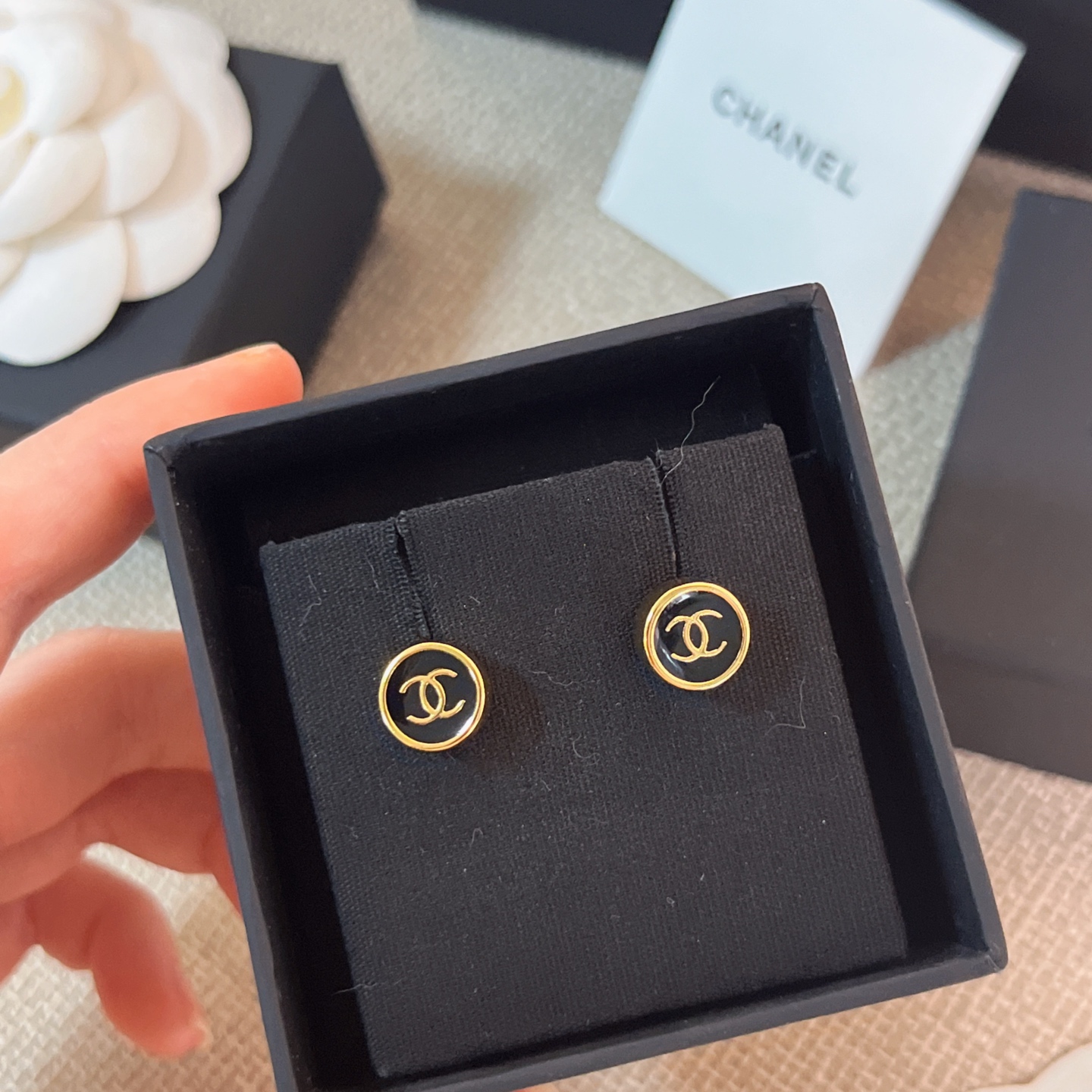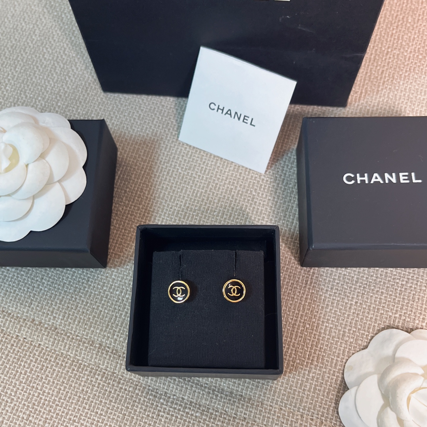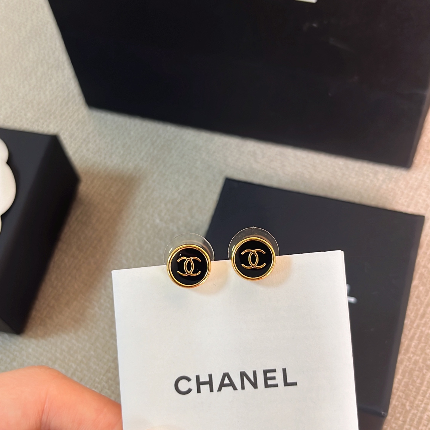 2025秋冬新品 Chanel 金邊小圓黑耳釘 精品 精工
