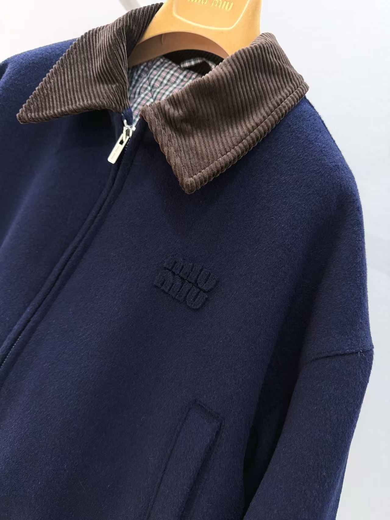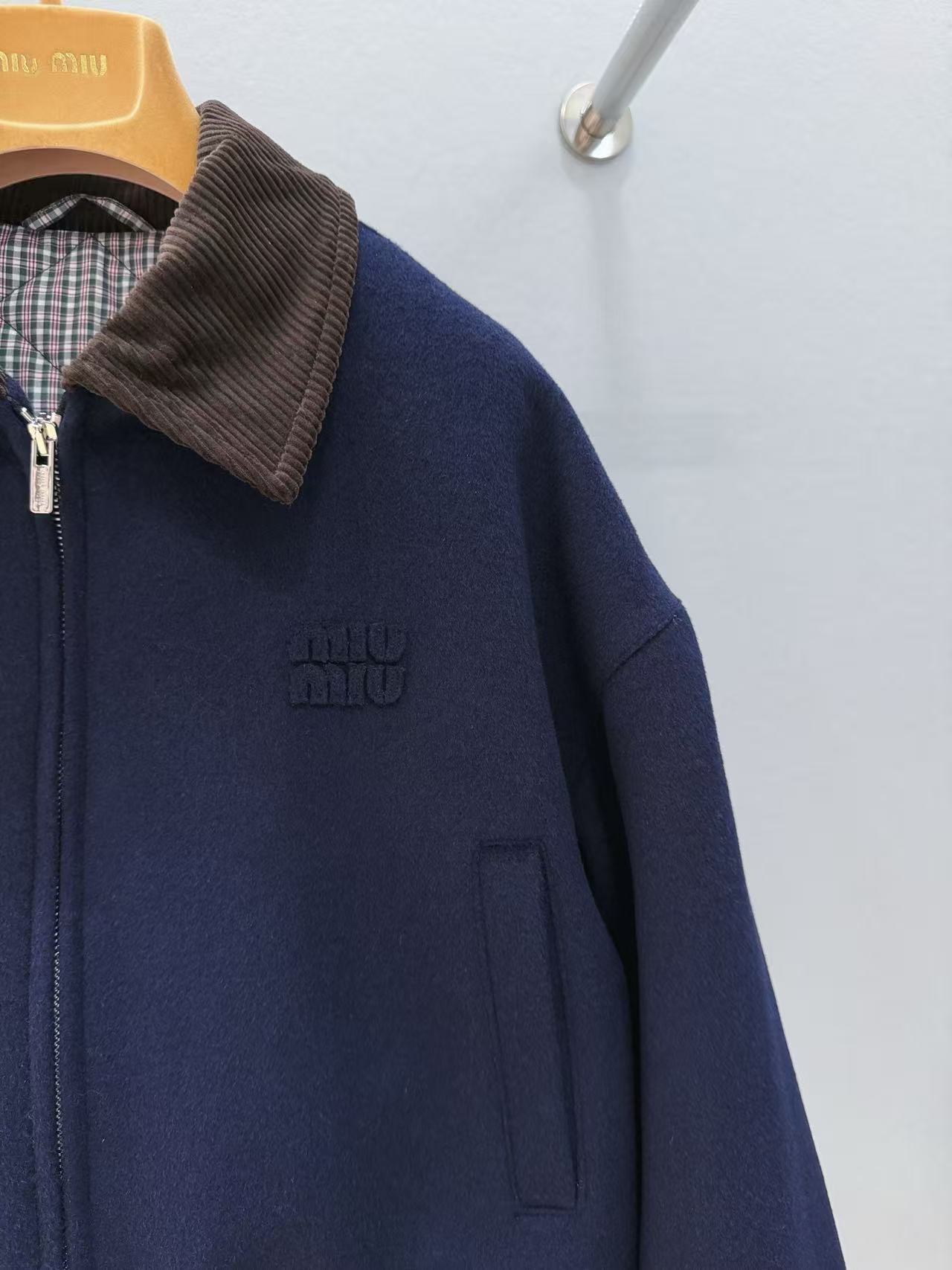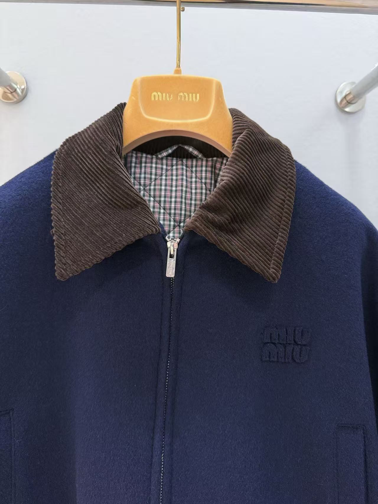 2025早秋 MIU MIU 翻領燈芯絨短款拉鏈外套 精工 時尚
