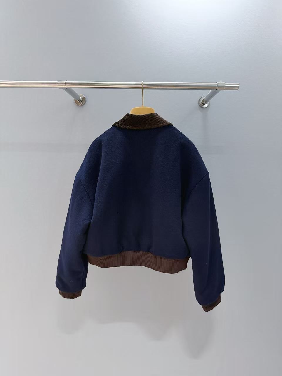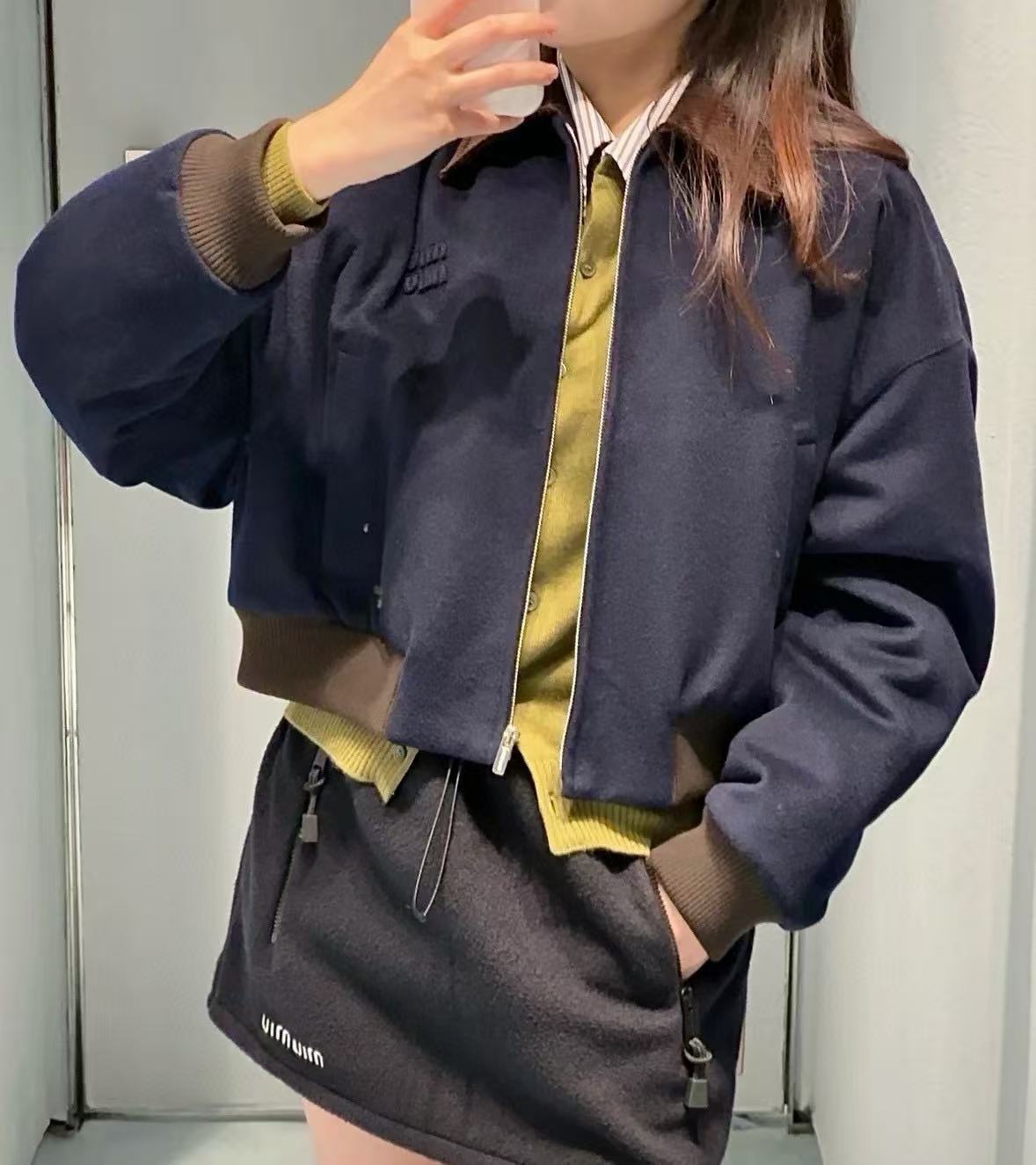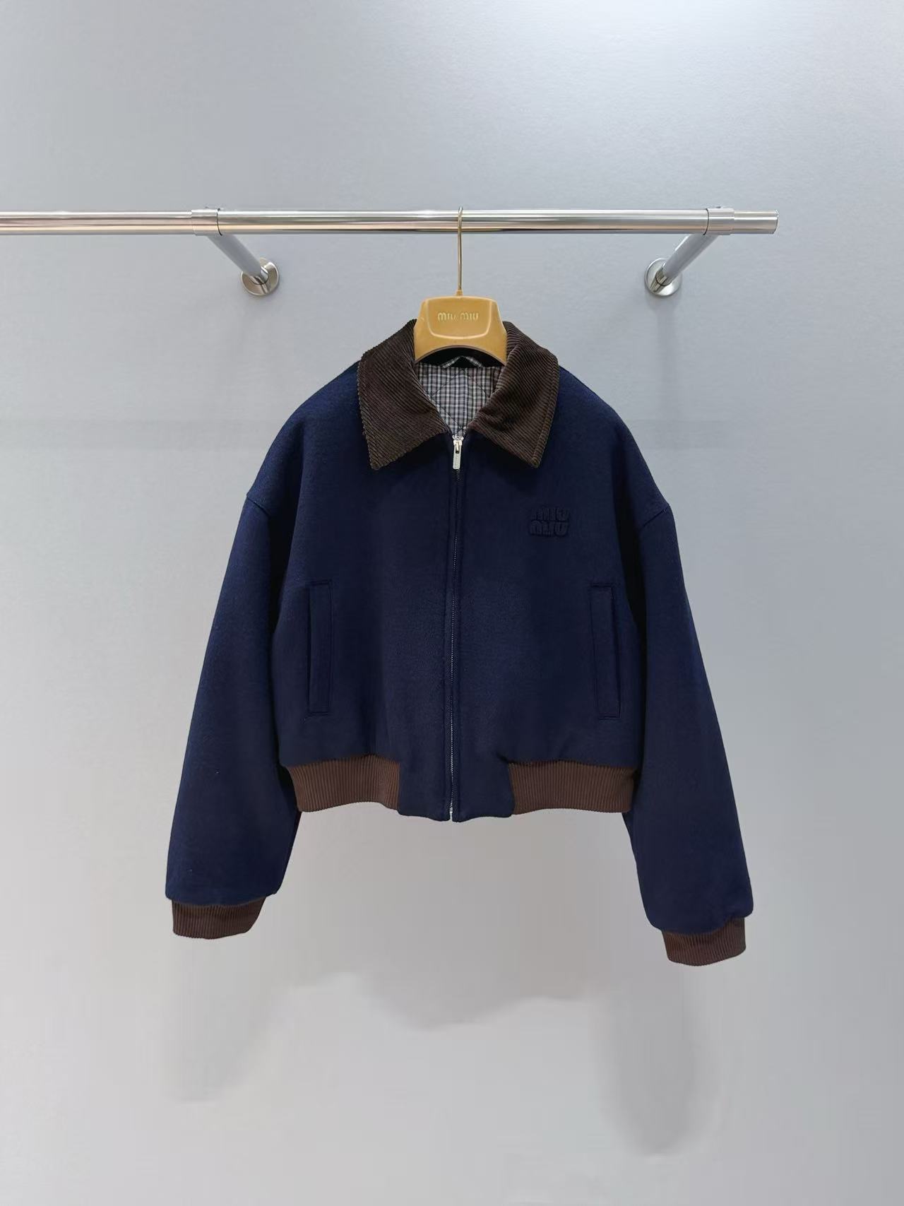 2025早秋 MIU MIU 翻領燈芯絨短款拉鏈外套 精工 時尚