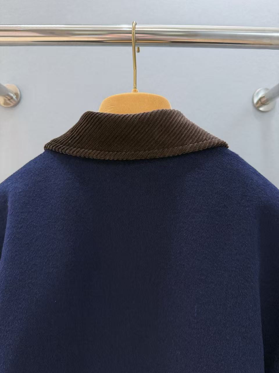 燈芯絨領子:領口拼接細膩燈芯絨材質,增添復古質感,耐磨且提升整體層次。