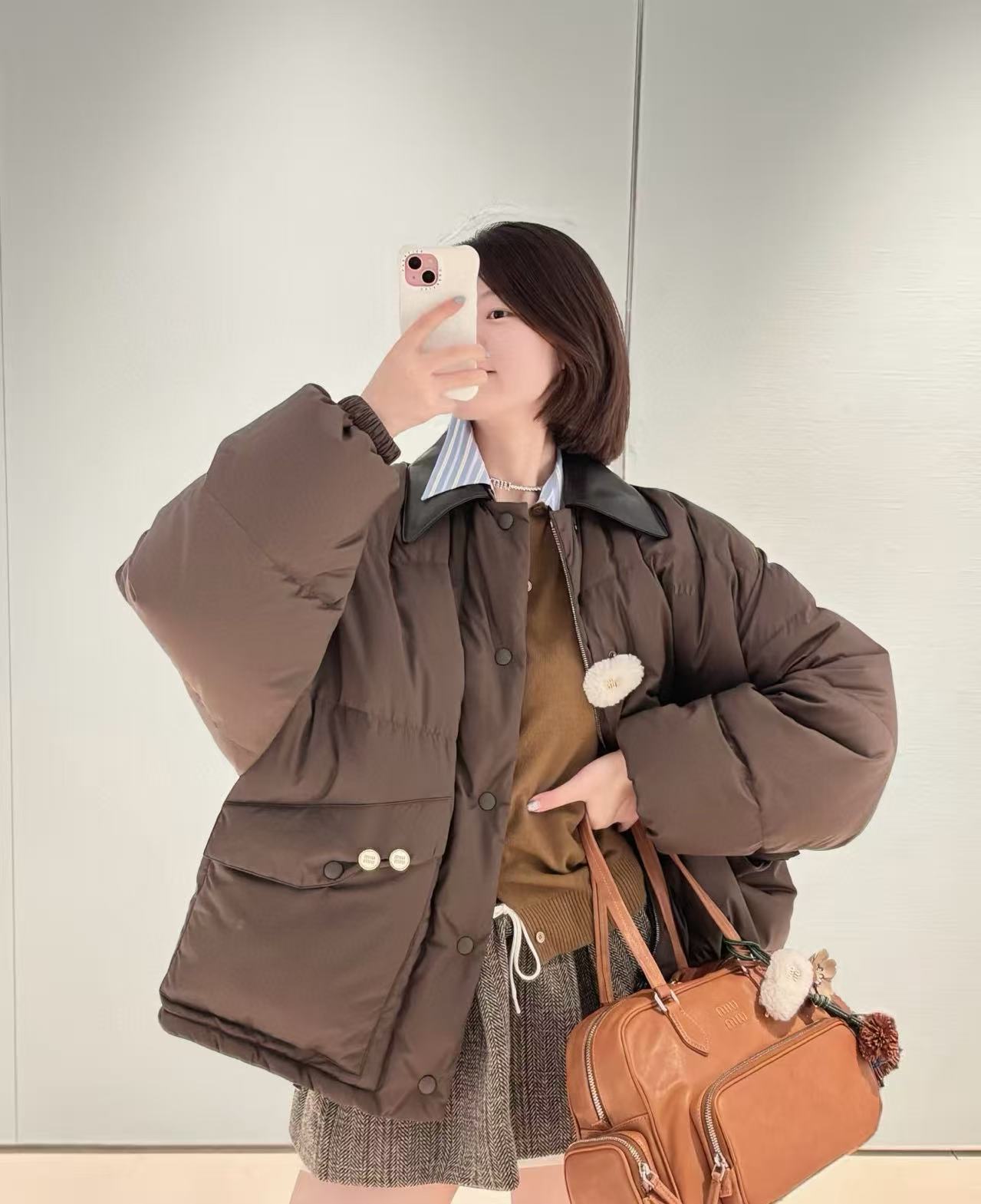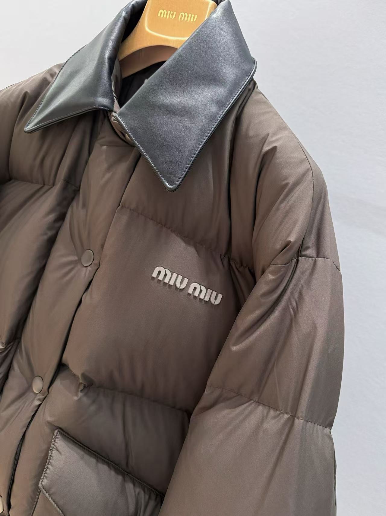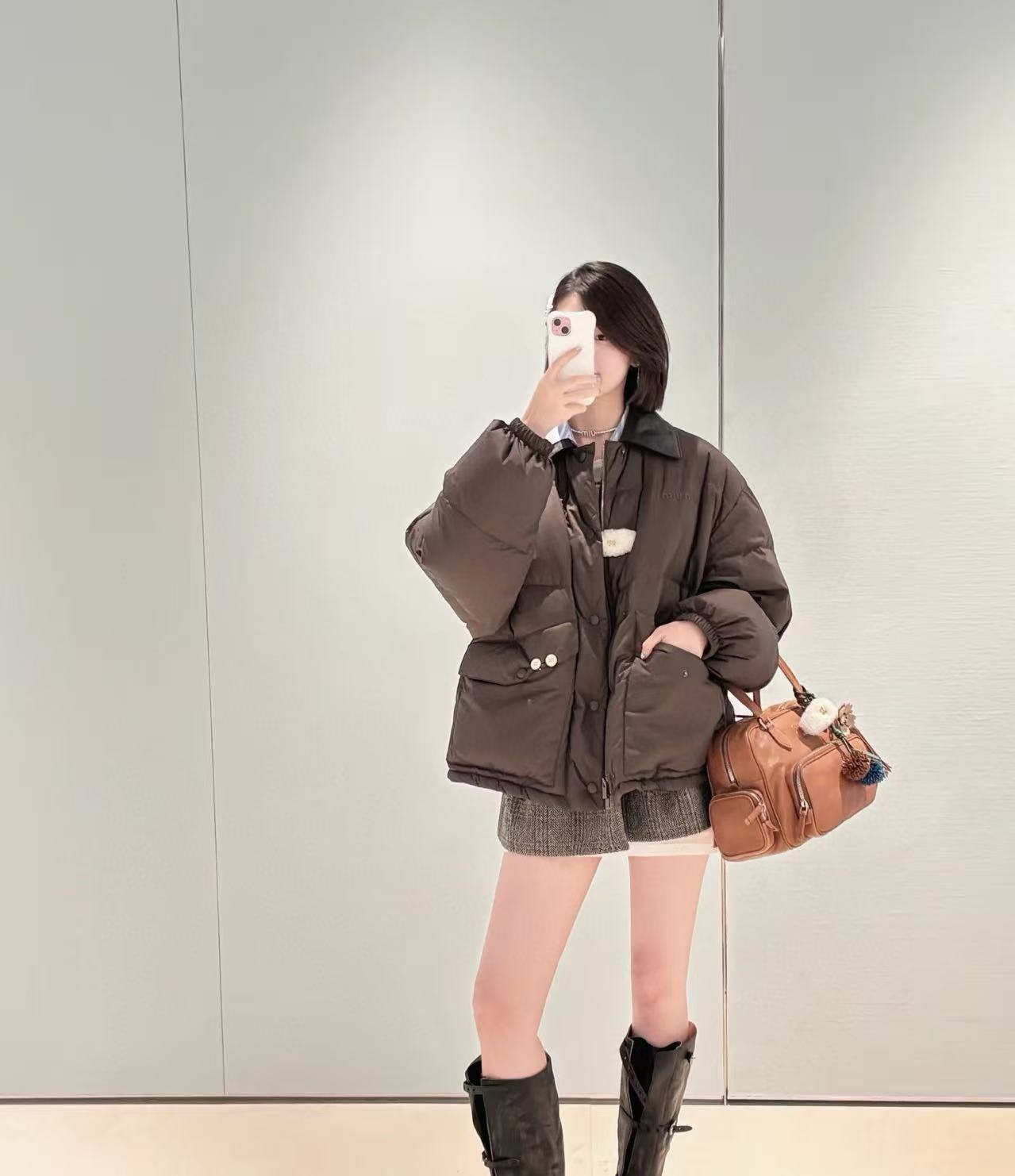 2025秋冬 MIU MIU 棕色翻領羽絨外套 精品 超A,時髦貴氣的必入手單品!