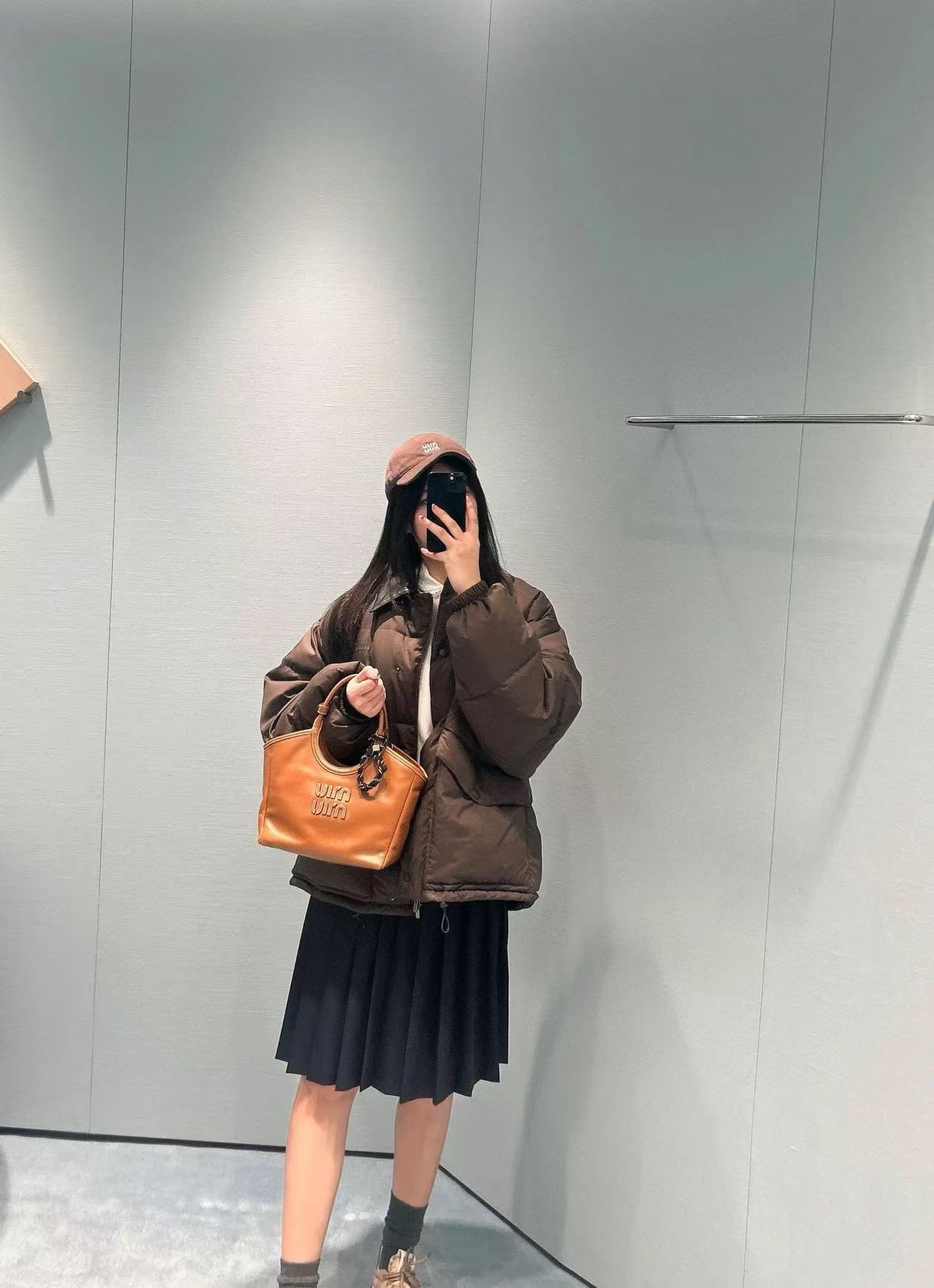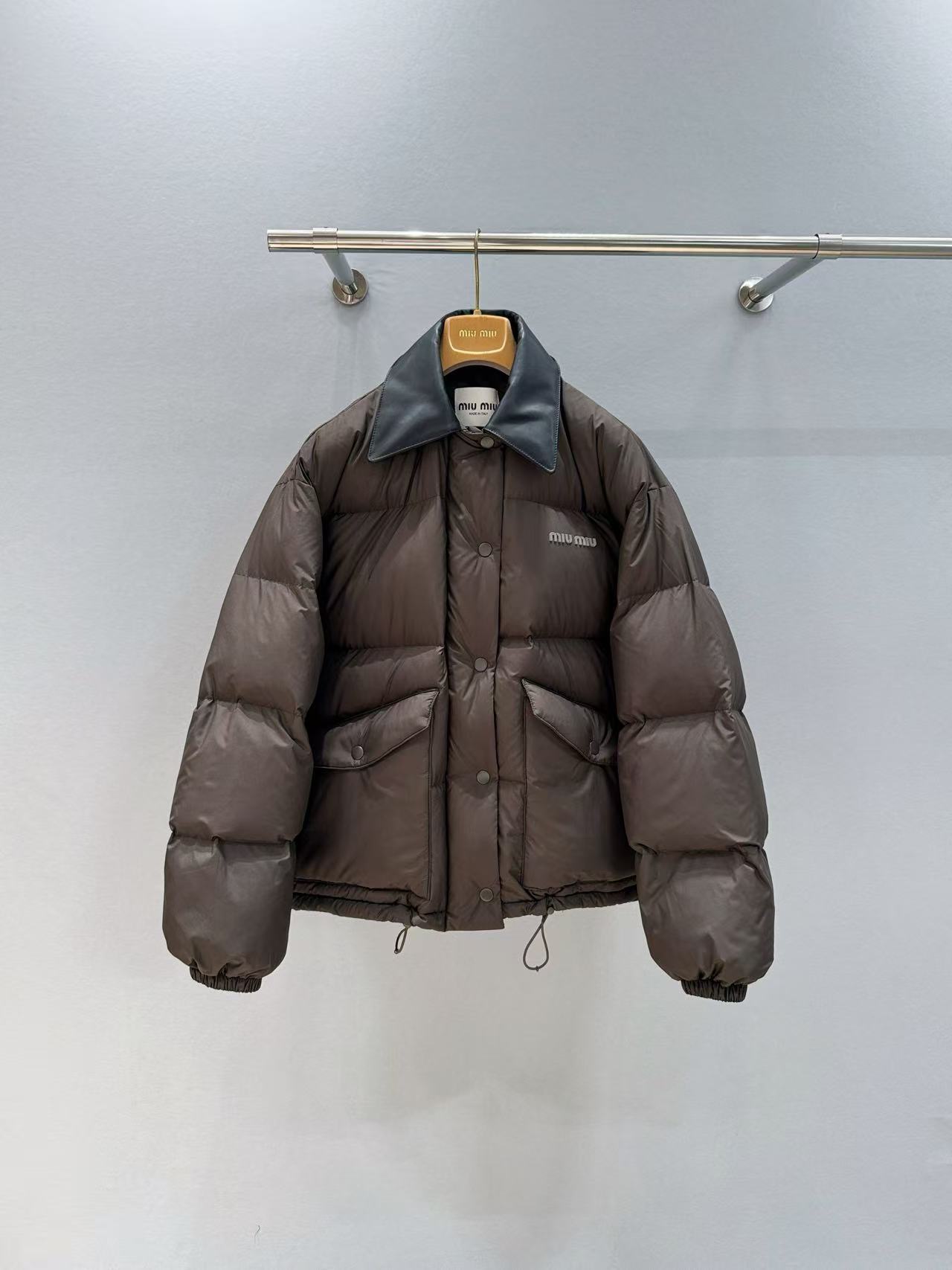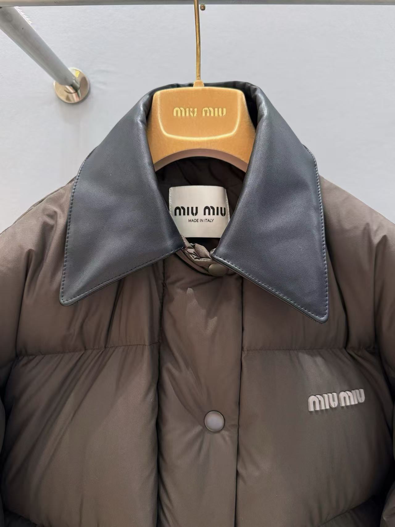 2025秋冬 MIU MIU 棕色翻領羽絨外套 精品 超A,時髦貴氣的必入手單品!