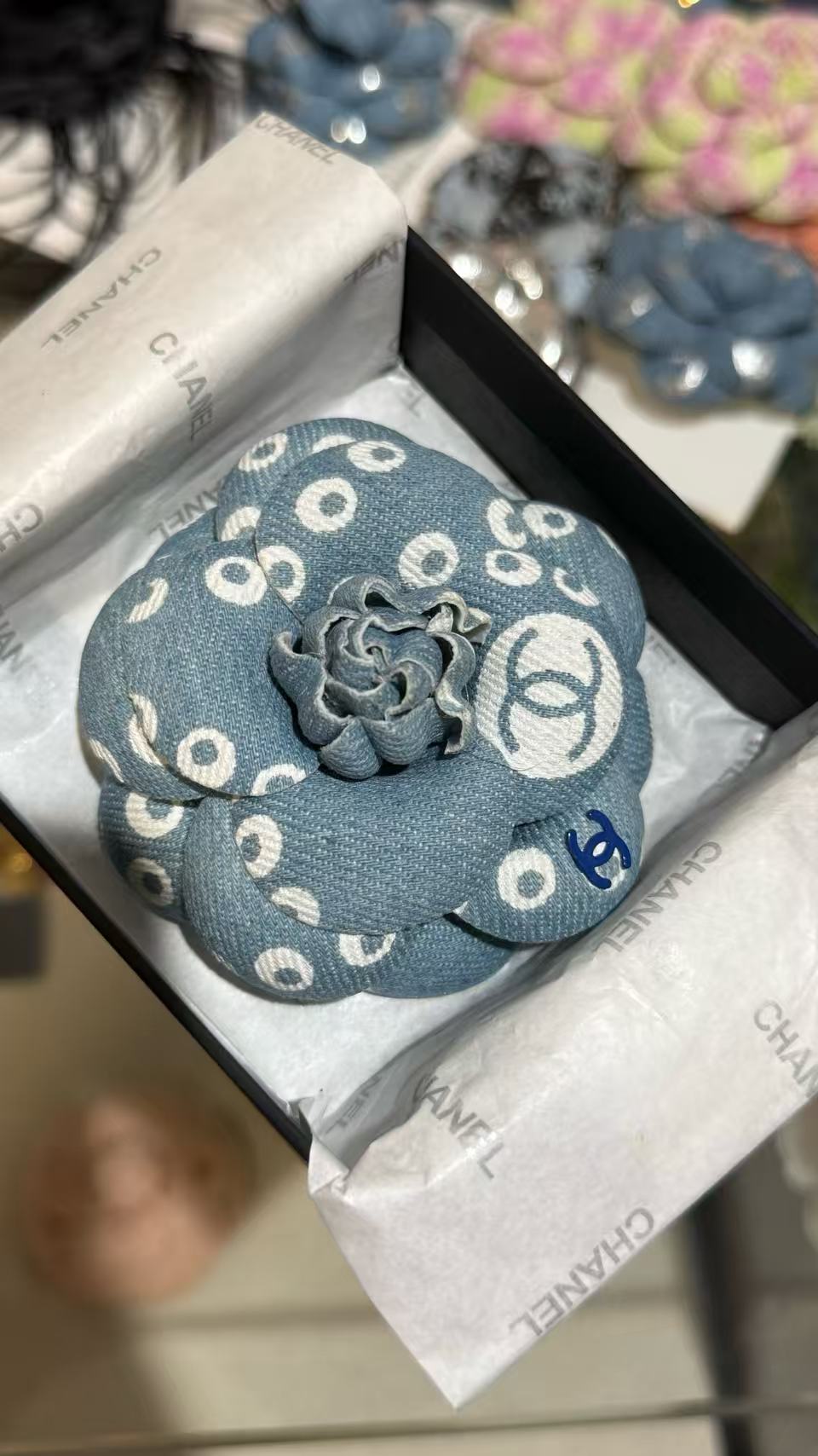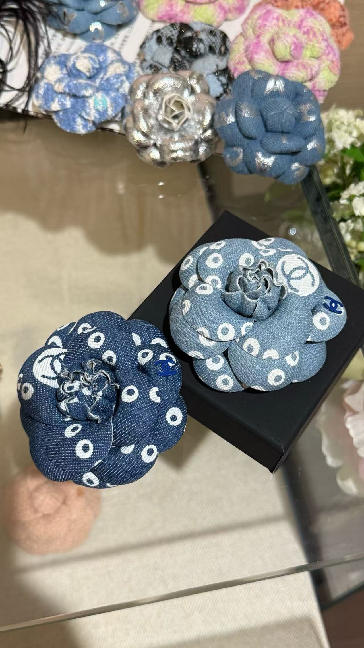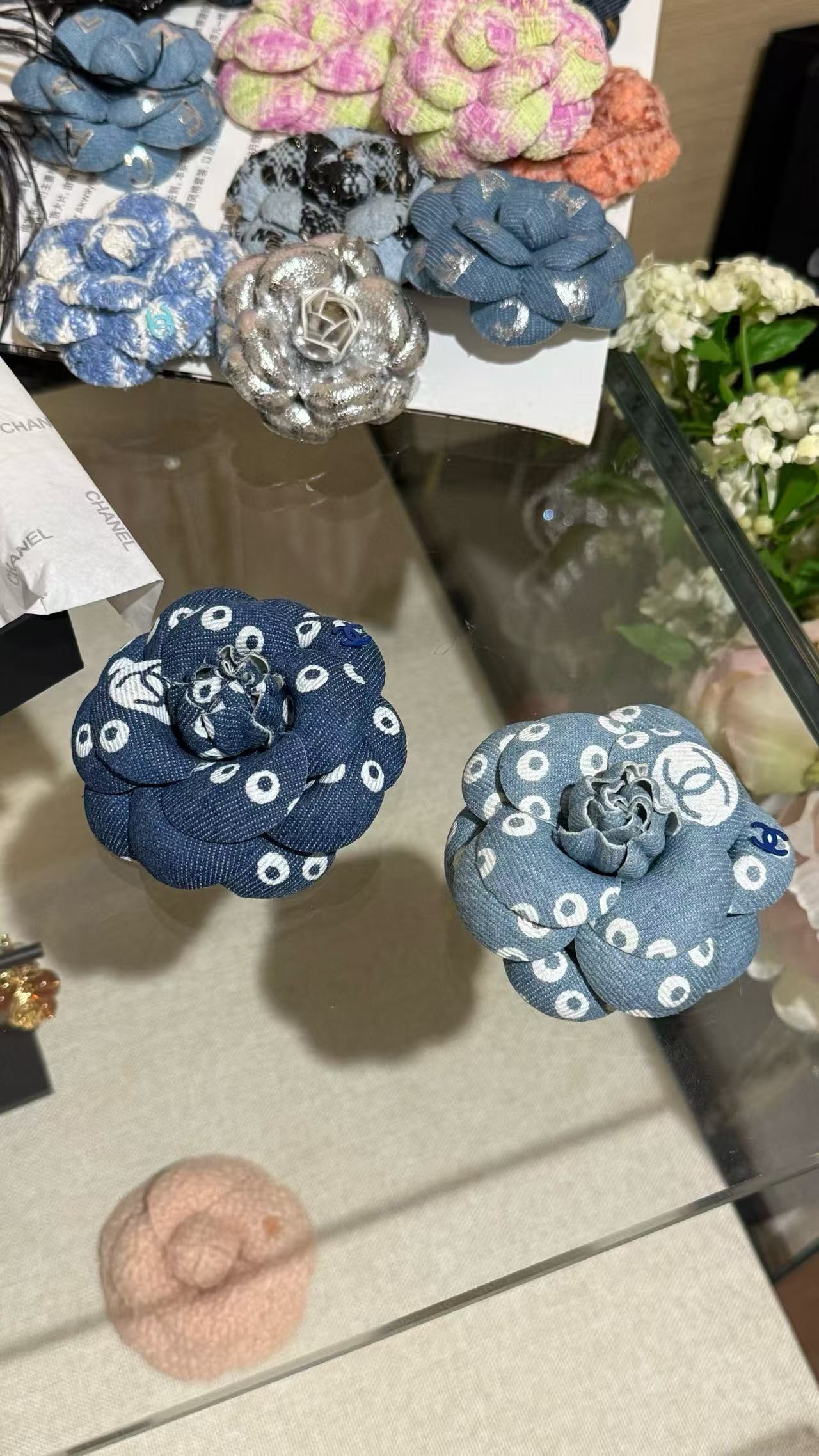2025早秋 Chanel 丹寧牛仔珍珠山茶花胸針 复刻 精品