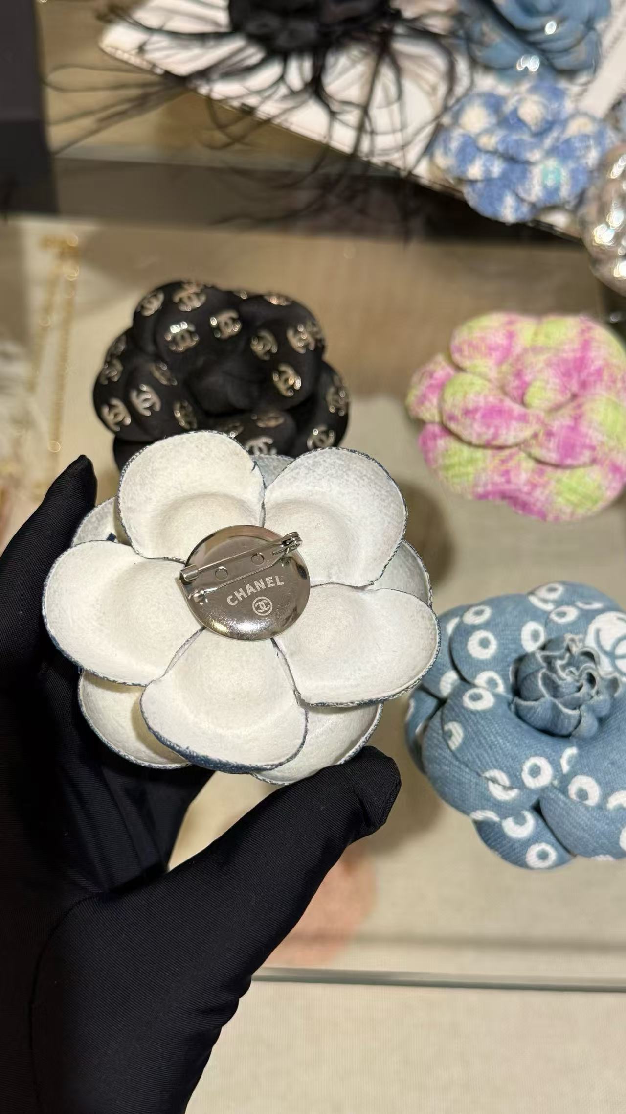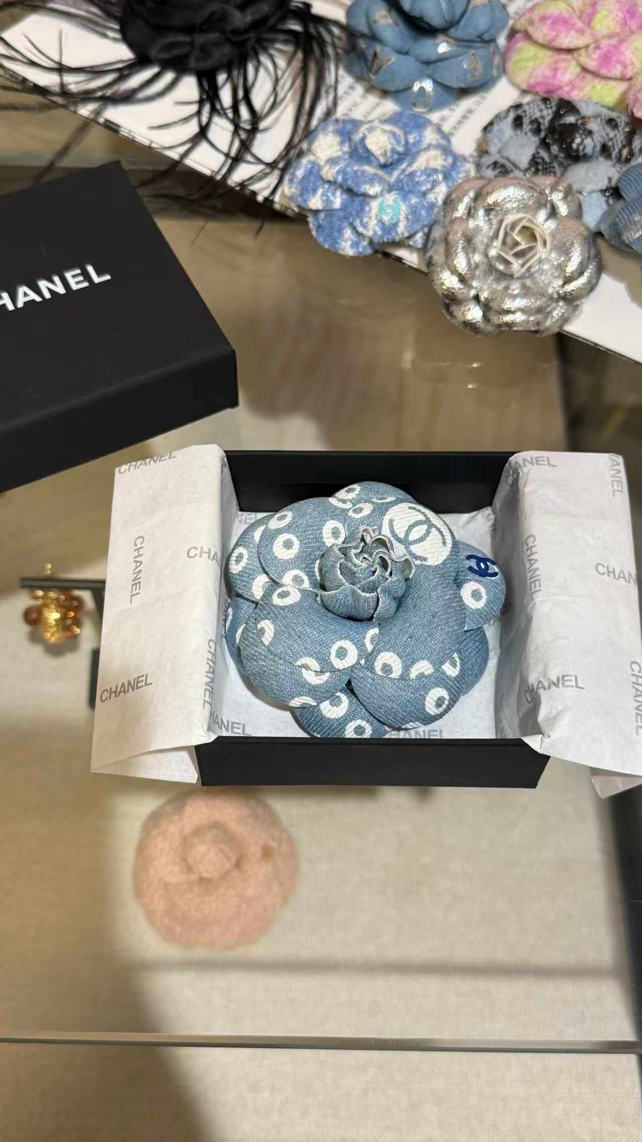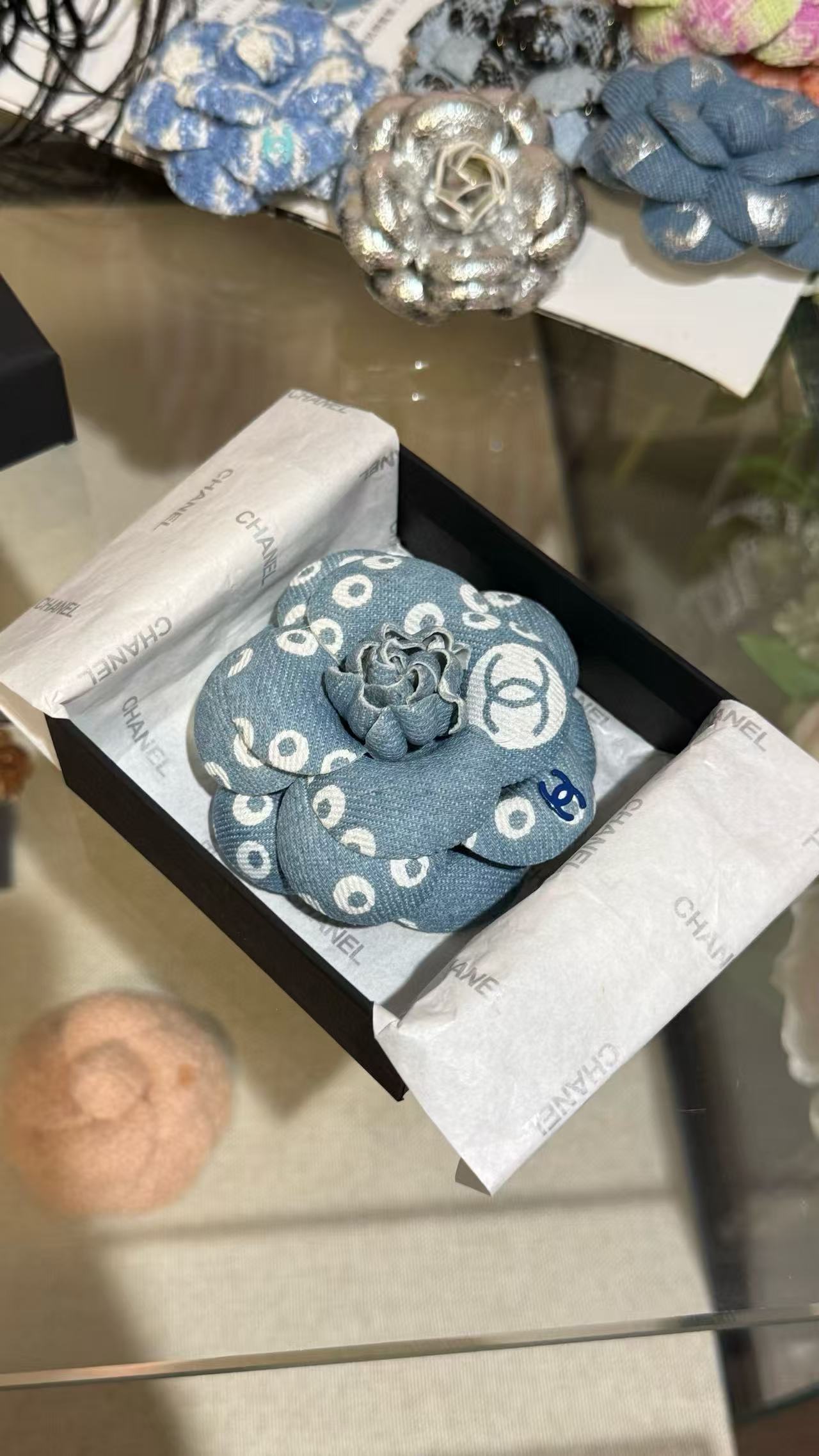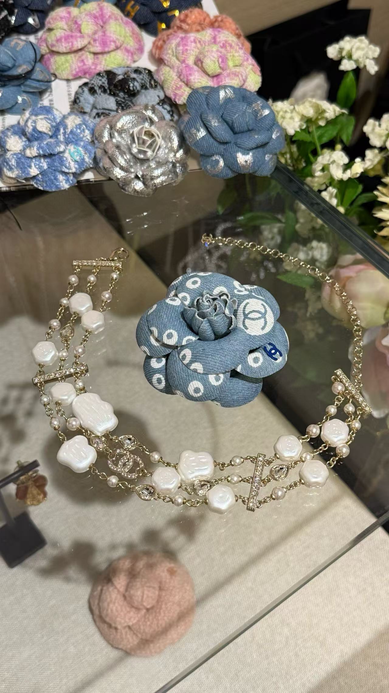 2025早秋 Chanel 丹寧牛仔珍珠山茶花胸針 复刻 精品