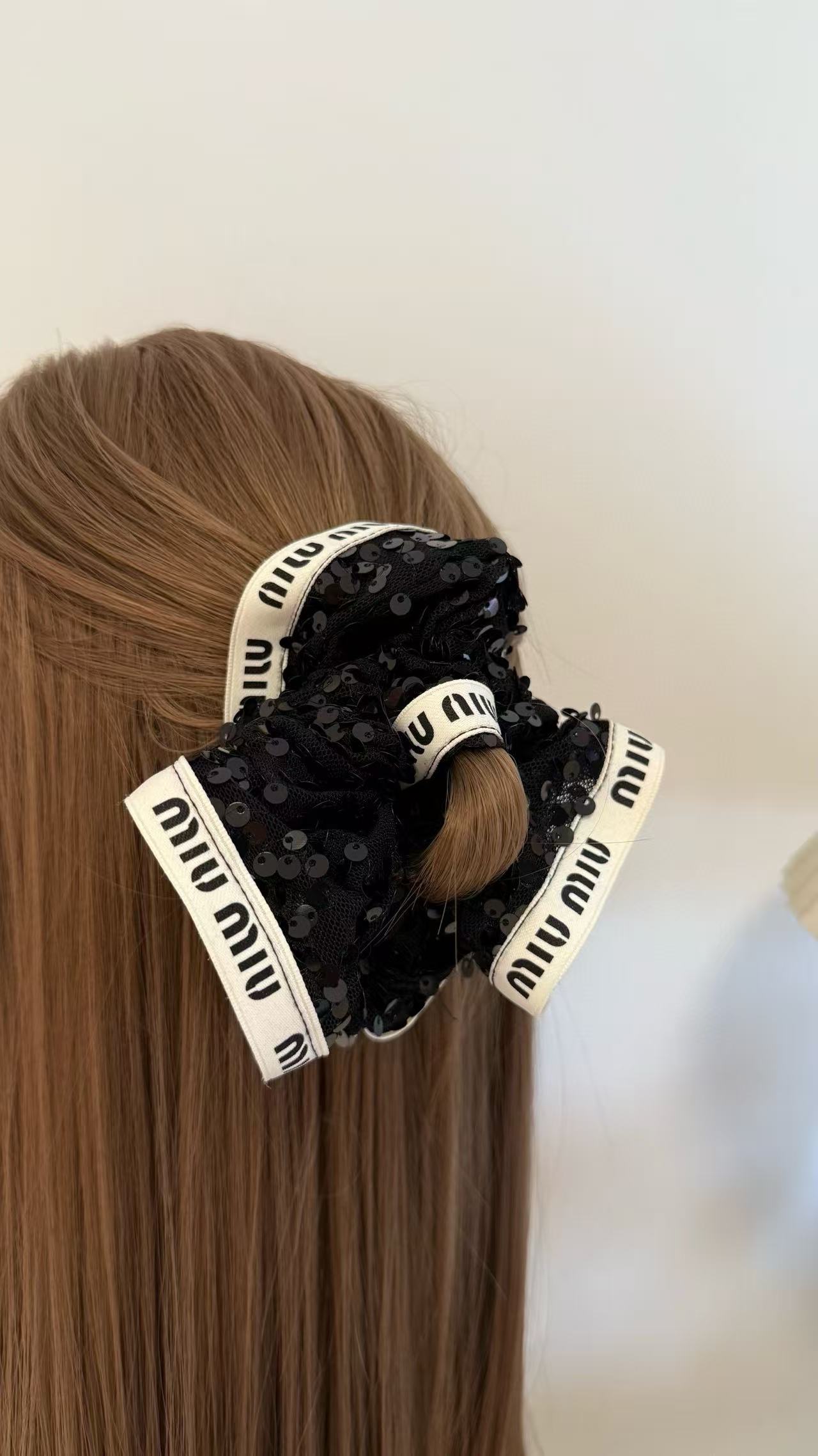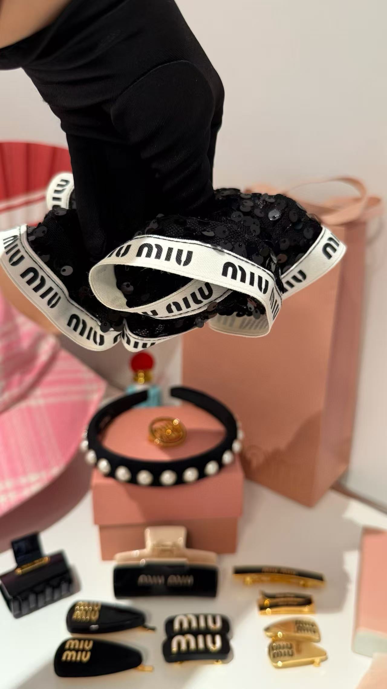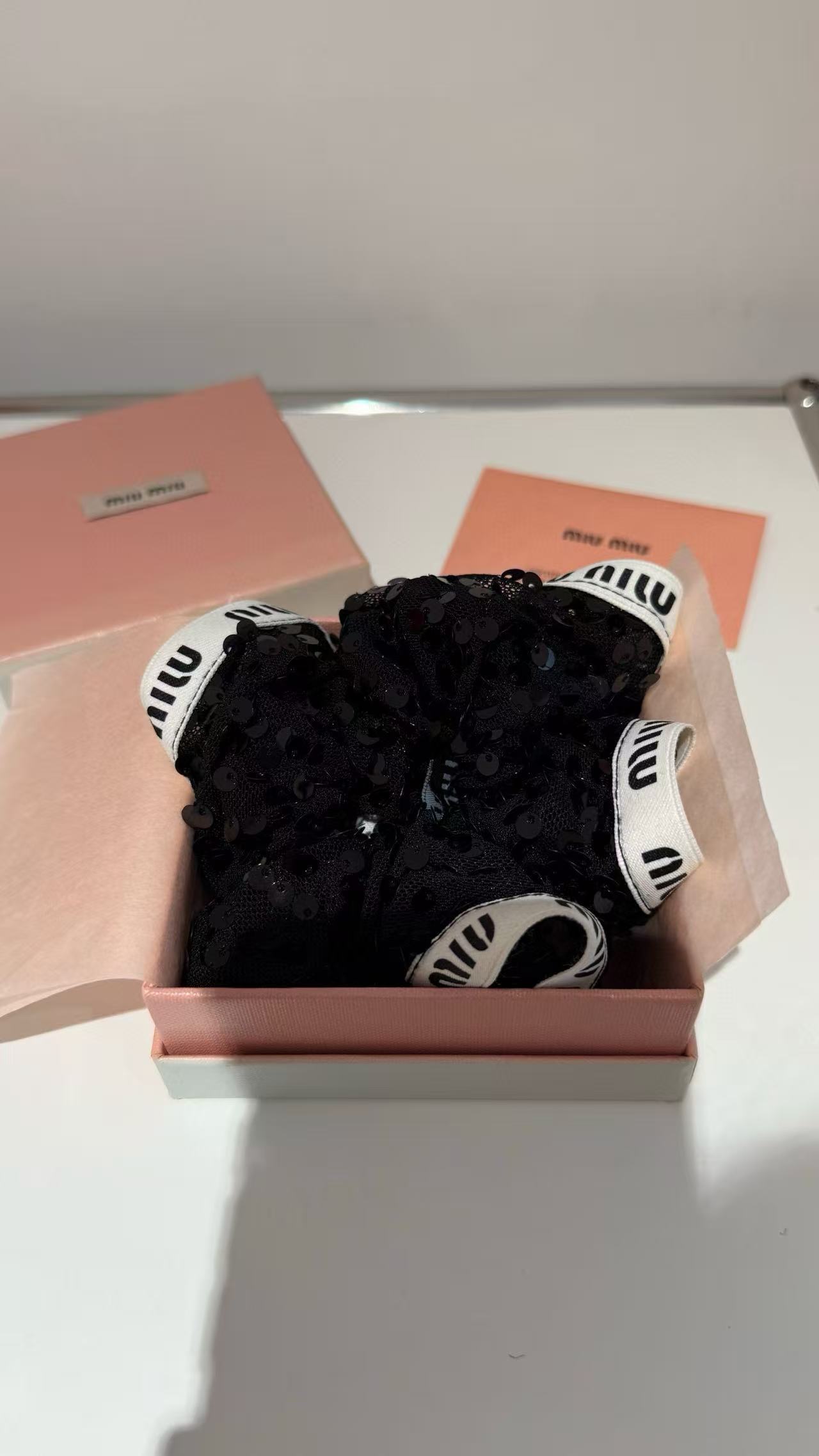 2025早秋 MIU MIU 黑色蕾絲珠片髮圈 精品復刻:法式優雅的時髦單品