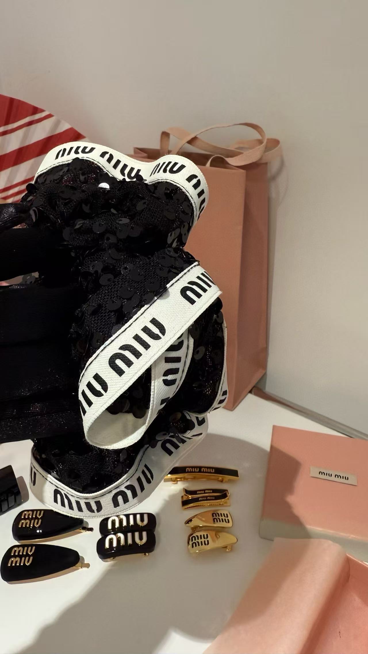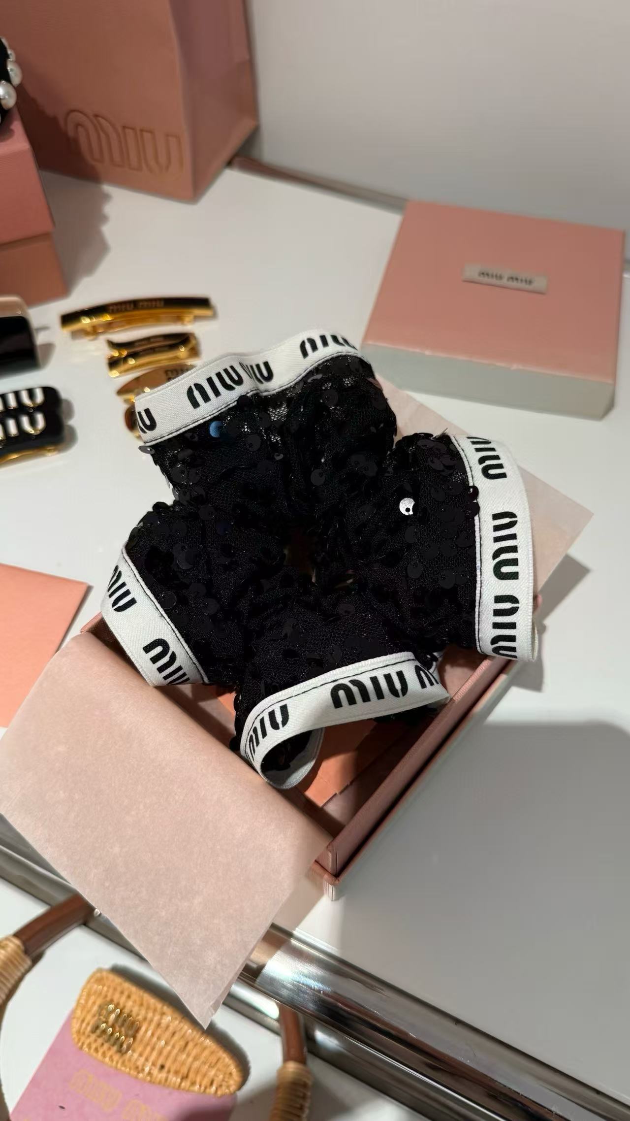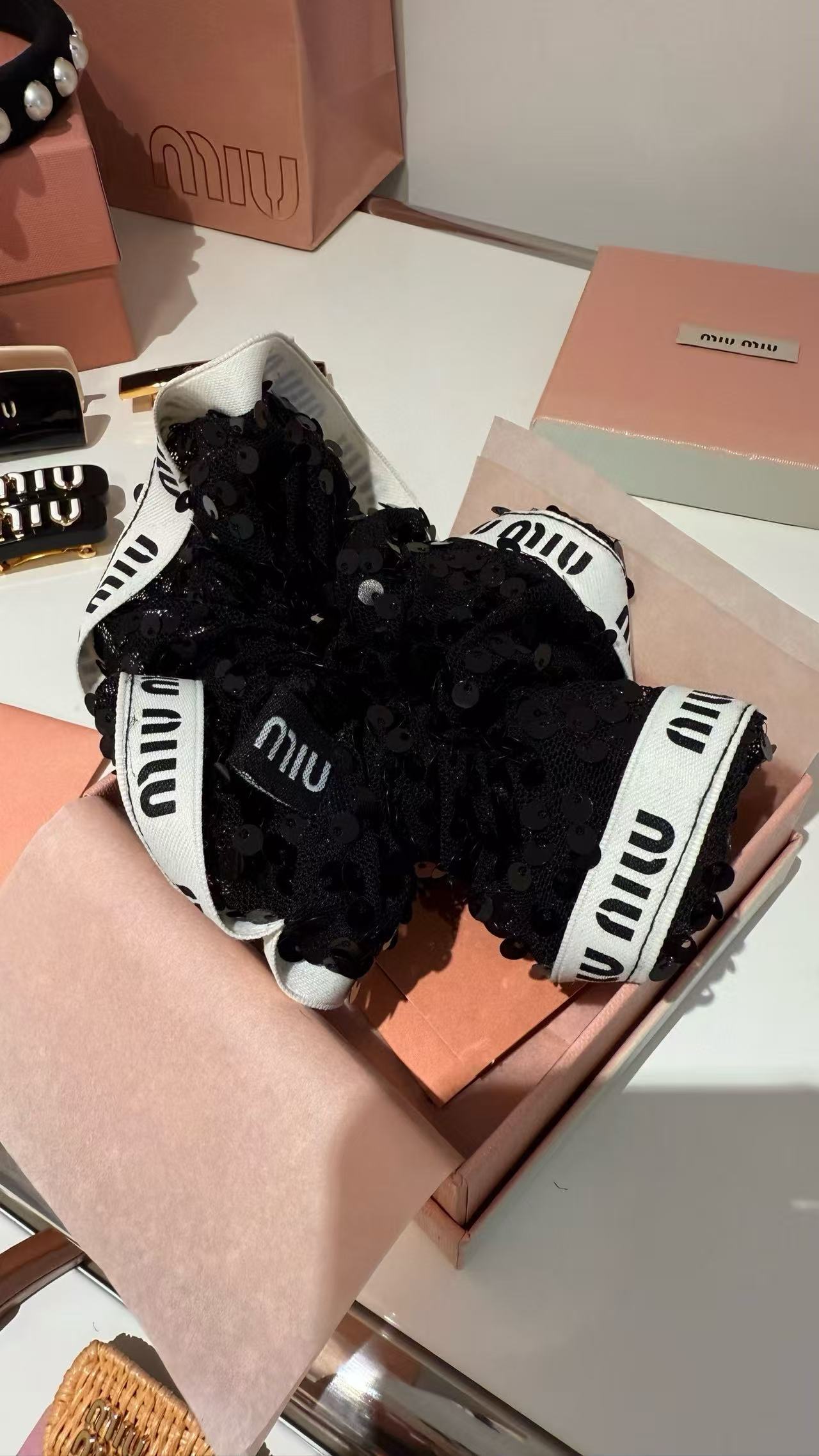 2025早秋 MIU MIU 黑色蕾絲珠片髮圈 精品復刻:法式優雅的時髦單品