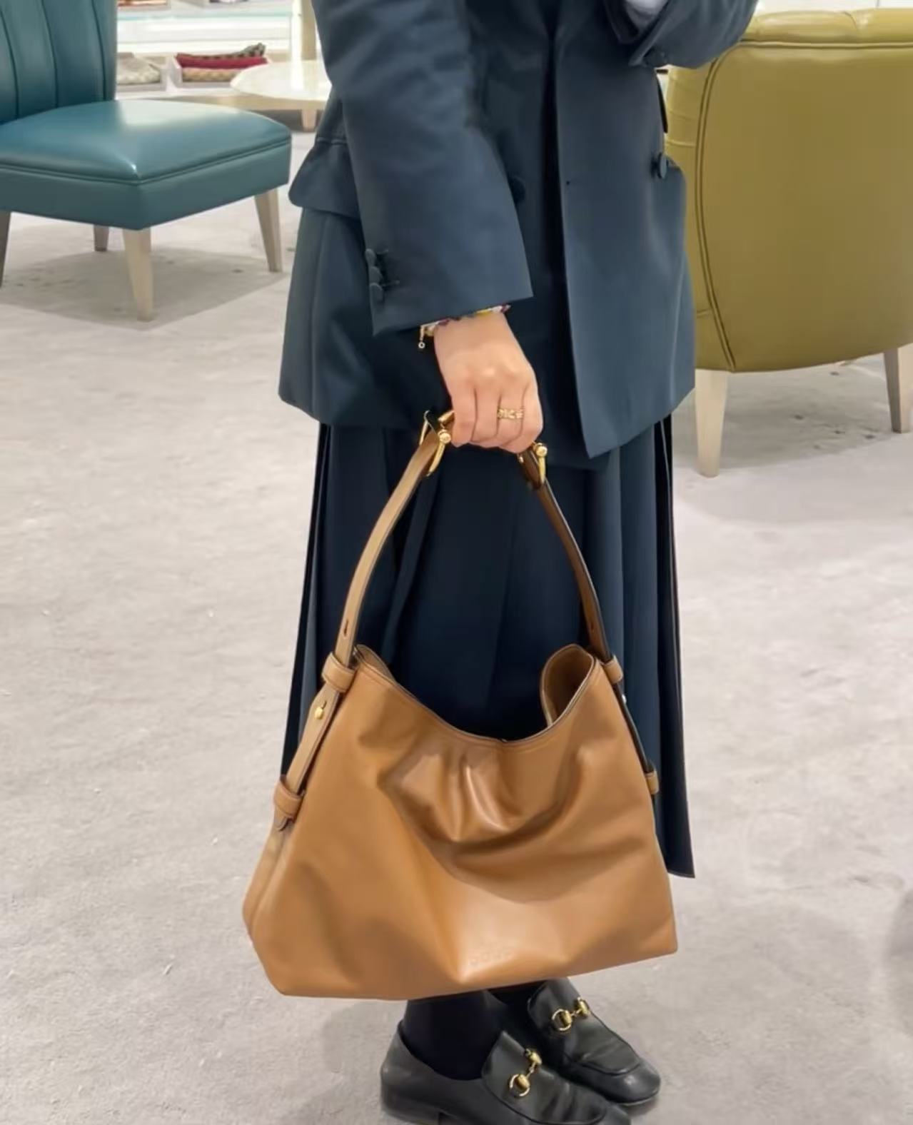 金色調的金屬配件增添奢華氣場,標誌性的馬銜扣肩帶設計,優雅中帶點精緻俐落感,無論通勤、約會還是旅行,都能輕鬆駕馭。