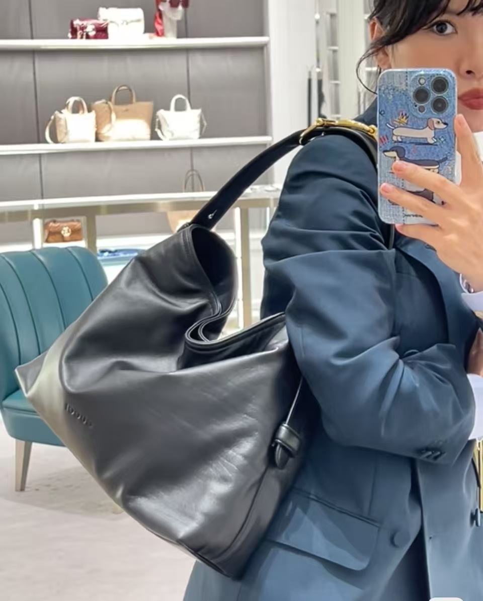包身的比例設計十分得宜,35cm 的寬度不僅能輕鬆容納日常必需品,搭配立體結構線條,讓包型始終挺括不塌。