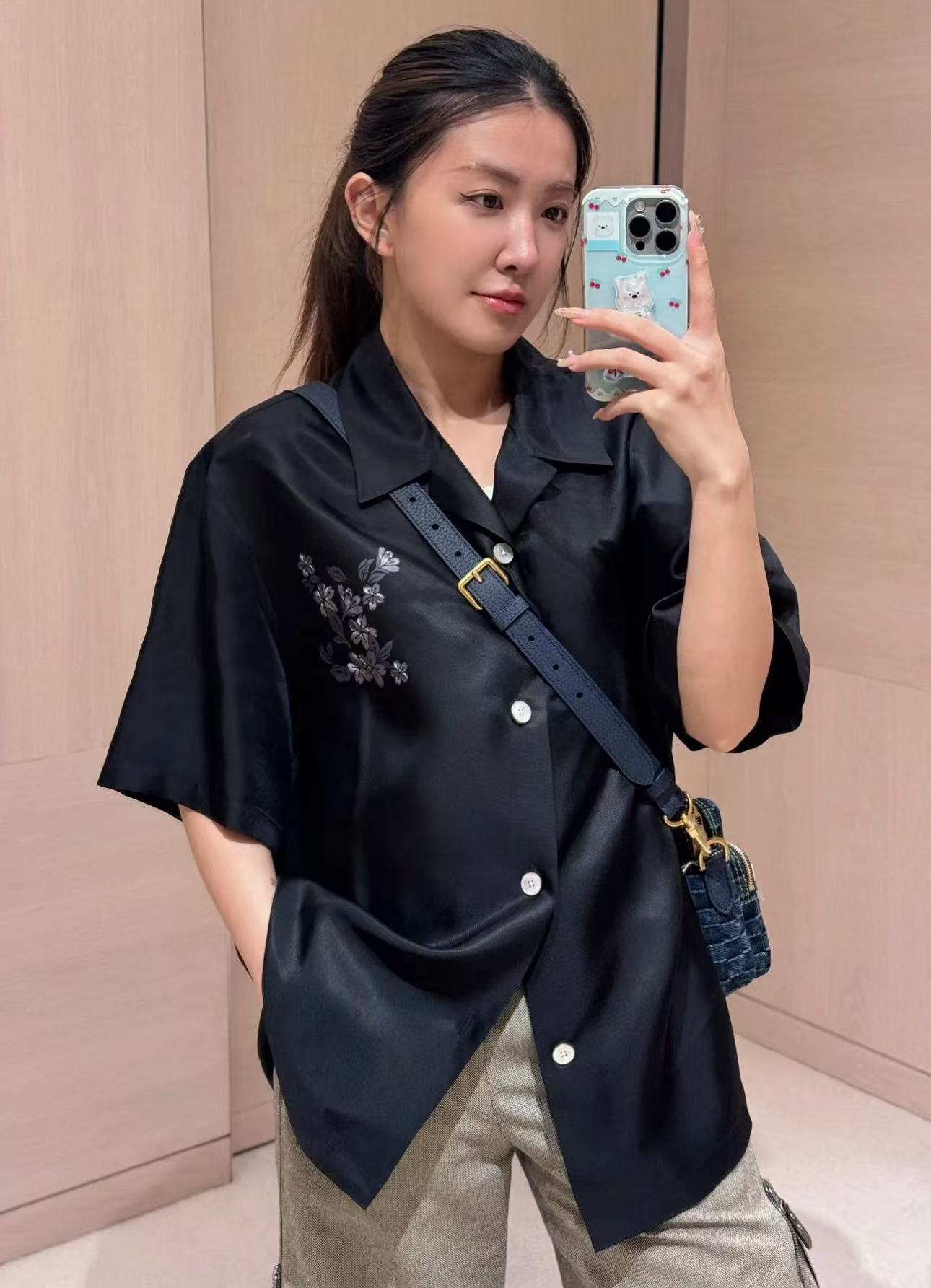 這件襯衫的材質真的非常講究!它使用了天絲雙面斜紋緞布料,並使用了獨家訂製的無矽油半漂底布,不僅摸起來柔軟又滑順,穿在身上還非常舒服。最棒的是,它還採用了酸性分散數碼雙面印花工藝,讓花朵印花有顏色漸變過渡,而且色彩顆粒感清晰,完全不糊化!