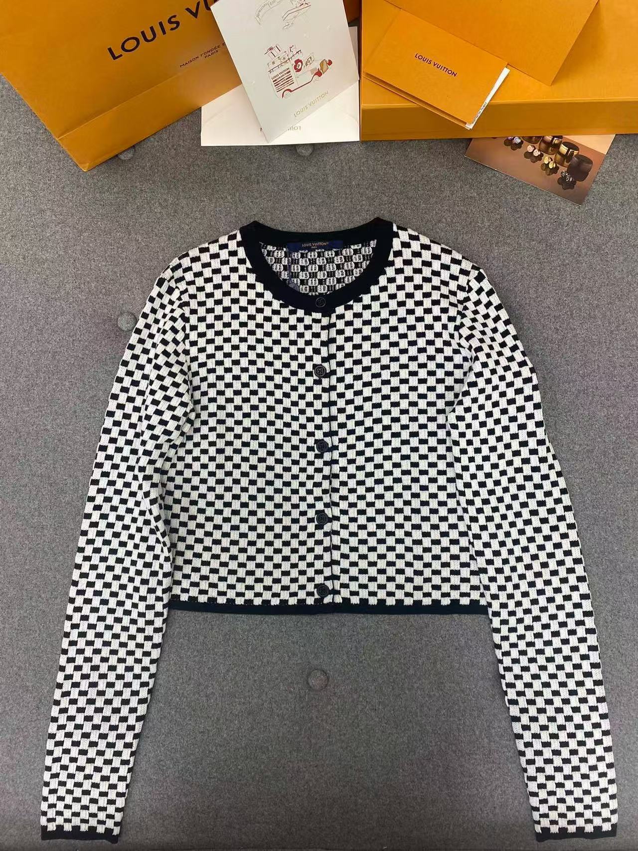 雙十一重磅福利款-Louis Vuitton 格子短款針織開衫 高仿 精品