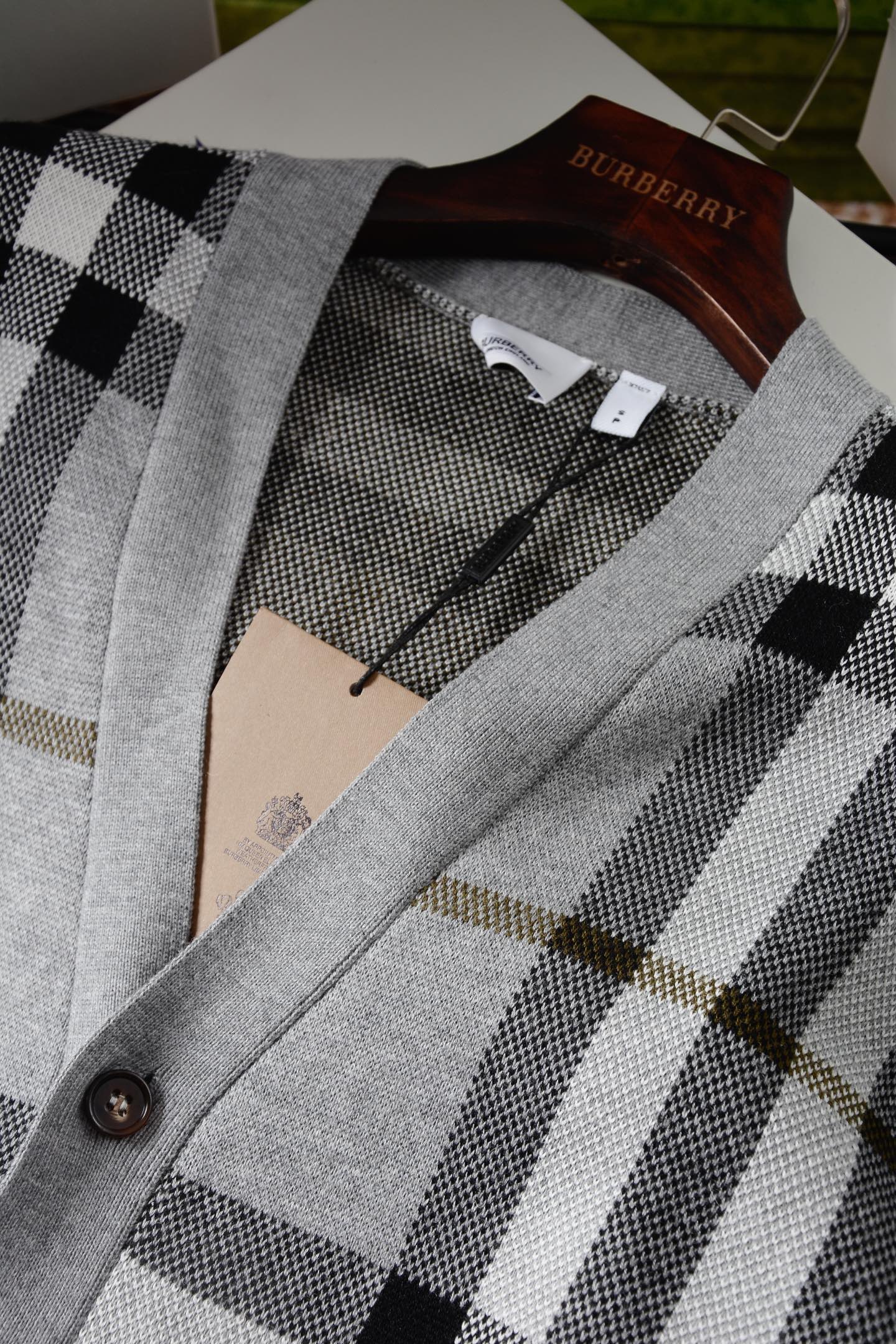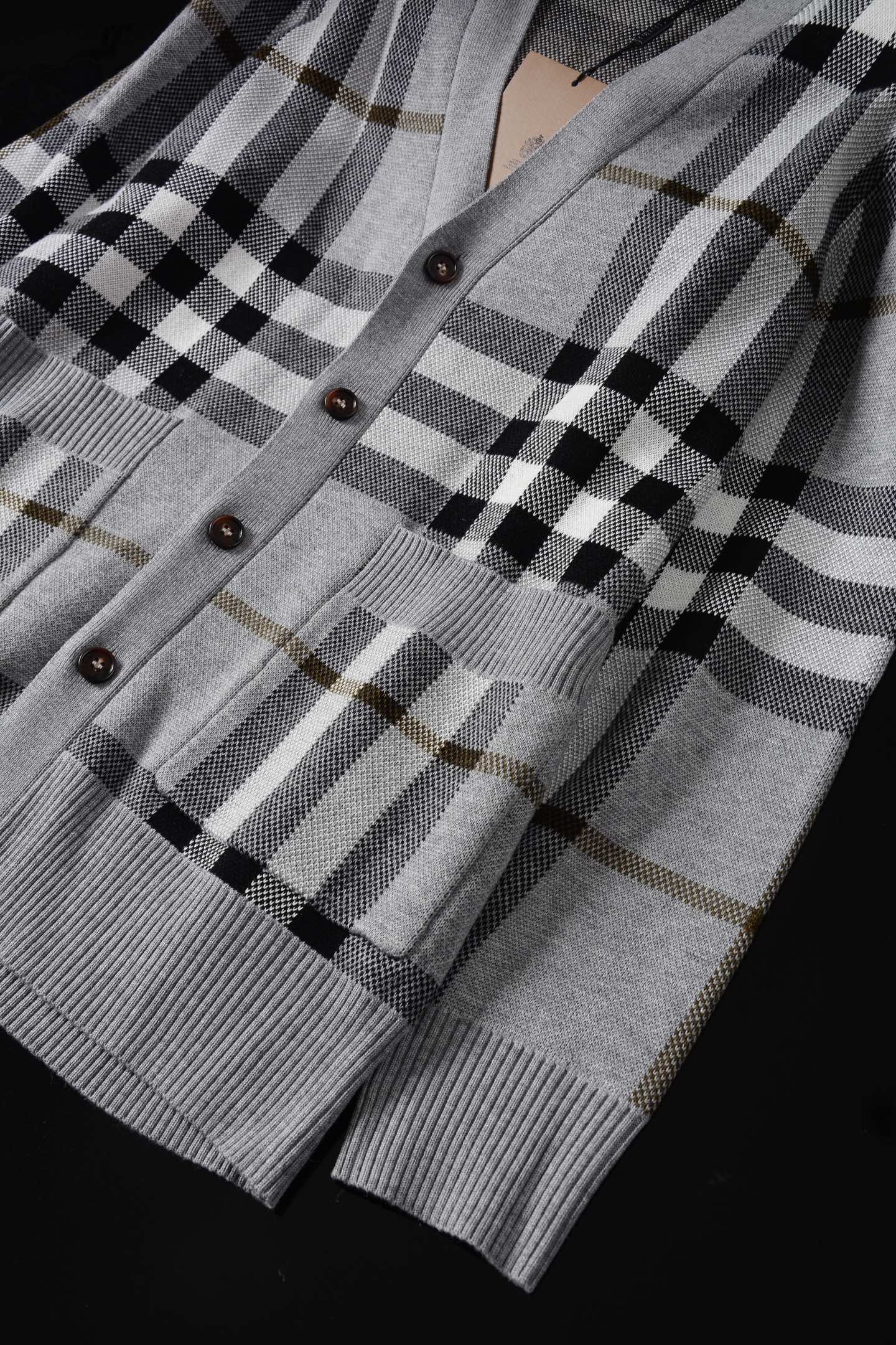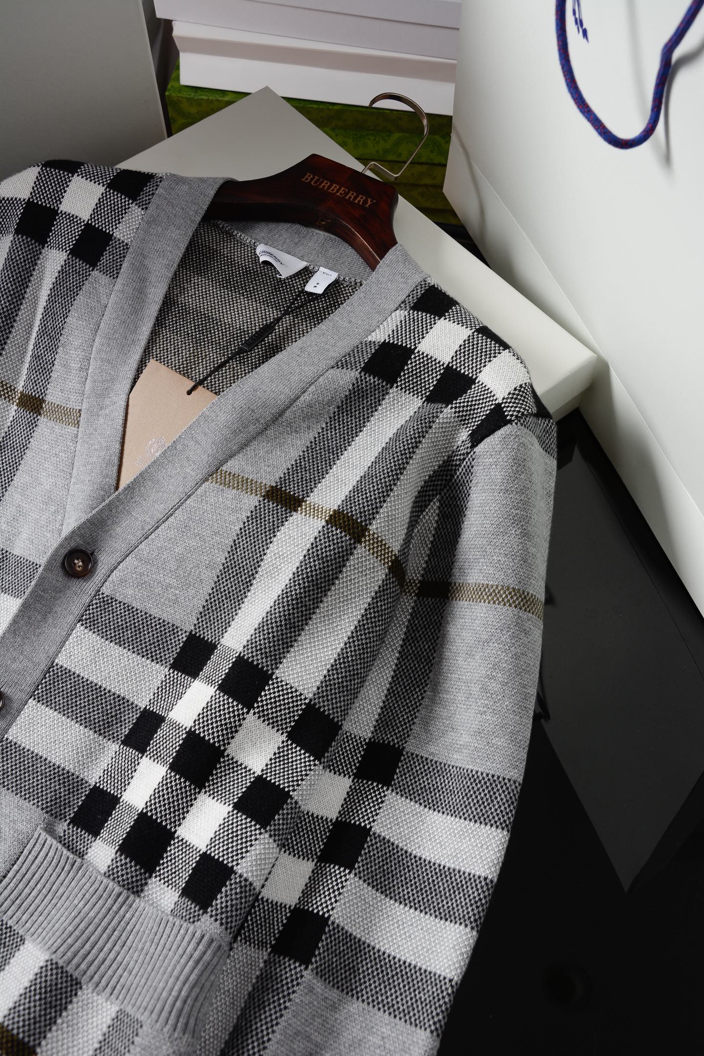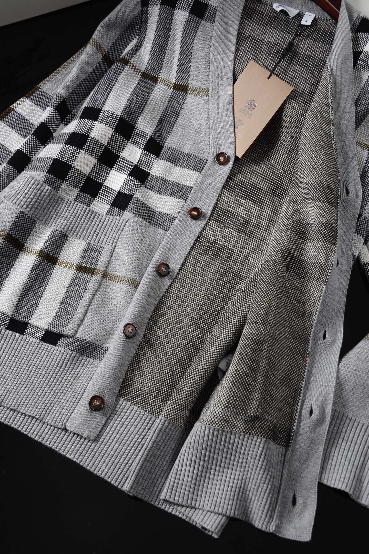 2025秋冬新品 Burberry 灰色格紋羊毛混紡提花開衫 精品 高仿
